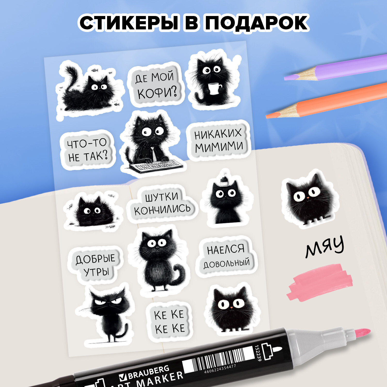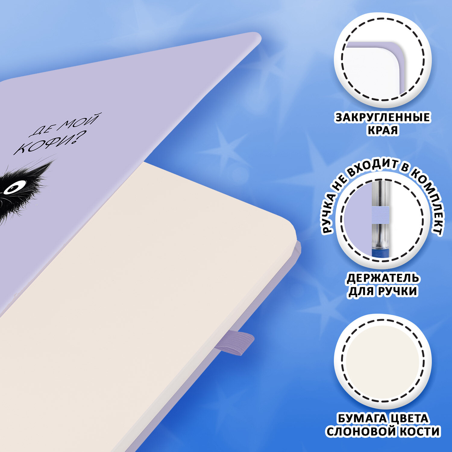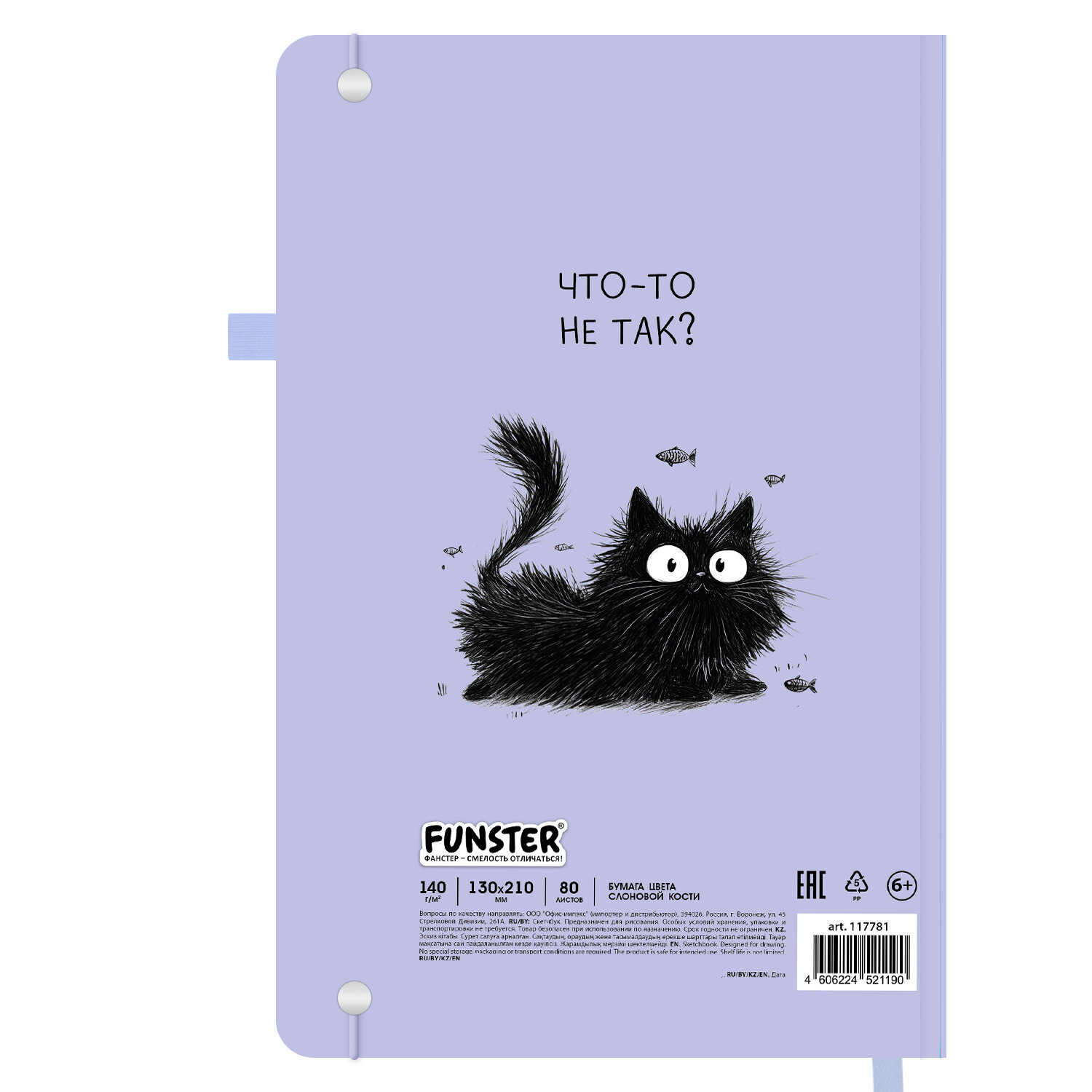 Скетчбук, слоновая кость 140 г/м2, 130х210 мм, 80 л., софт-тач, резинка, наклейки, FUNSTER (ФАНСТЕР), "Pet" Код товара: 117781 387,57 ₽ Купить Производитель:FUNSTER Скетчбук FUNSTER подходит для эскизов, графики, набросков, каллиграфии, леттеринга, скетчинга и ведения записей. Это компактный скетчбук с жесткой обложкой, покрытой матовой пленкой soft-touch. Внутренний блок – 80 листов специальной художественной тонированной бумаги цвета слоновой кости плотностью 140 г/м2. Подходит для работы с широким спектром графических материалов (ручки, карандаши, линеры). Благодаря компактному формату его можно носить с собой, а жесткая обложка станет верным подспорьем для рисования на весу. Дополнением является закладка-ляссе, с помощью которой при необходимости можно быстро открыть скетчбук на нужной странице, и держатель для письменных принадлежностей. Эластичная резинка надежно сбережет листы от замятия и случайного раскрытия. Скетчбук станет прекрасным выбором для любителей и профессионалов, студентов и школьников, художников и дизайнеров. Отличным дополнением к скетчбуку являются наклейки, которые можно разместить как на обложку скетчбука, так и на листы внутреннего блока, сделав свои наброски, рисунки и записи еще красивее и ярче.Производство: КитайТип товара: блокнот/скетчбукСерия: нет серииВид работ: для зарисовок, эскизов, рисованияКоличество листов: 80Формат: А5Ширина: 130 ммДлина: 210 ммДизайн: PetОбложка: твердый переплетВнутренний блок: художественная бумагаЦвет внутреннего блока: слоновая костьПлотность внутреннего блока: 140 г/м2Жесткая подложка: даТип скрепления: книжный переплетБез кислот: даЦвет обложки: сиреневыйИндивидуальная упаковка: даВес: 422 грРазмер упаковки: 2 × 13 × 21 смОбъём: 0.0006 м3Промежуточная упаковка: 36 штТранспортная упаковка: 36 штШтрих-код: 4606224521190