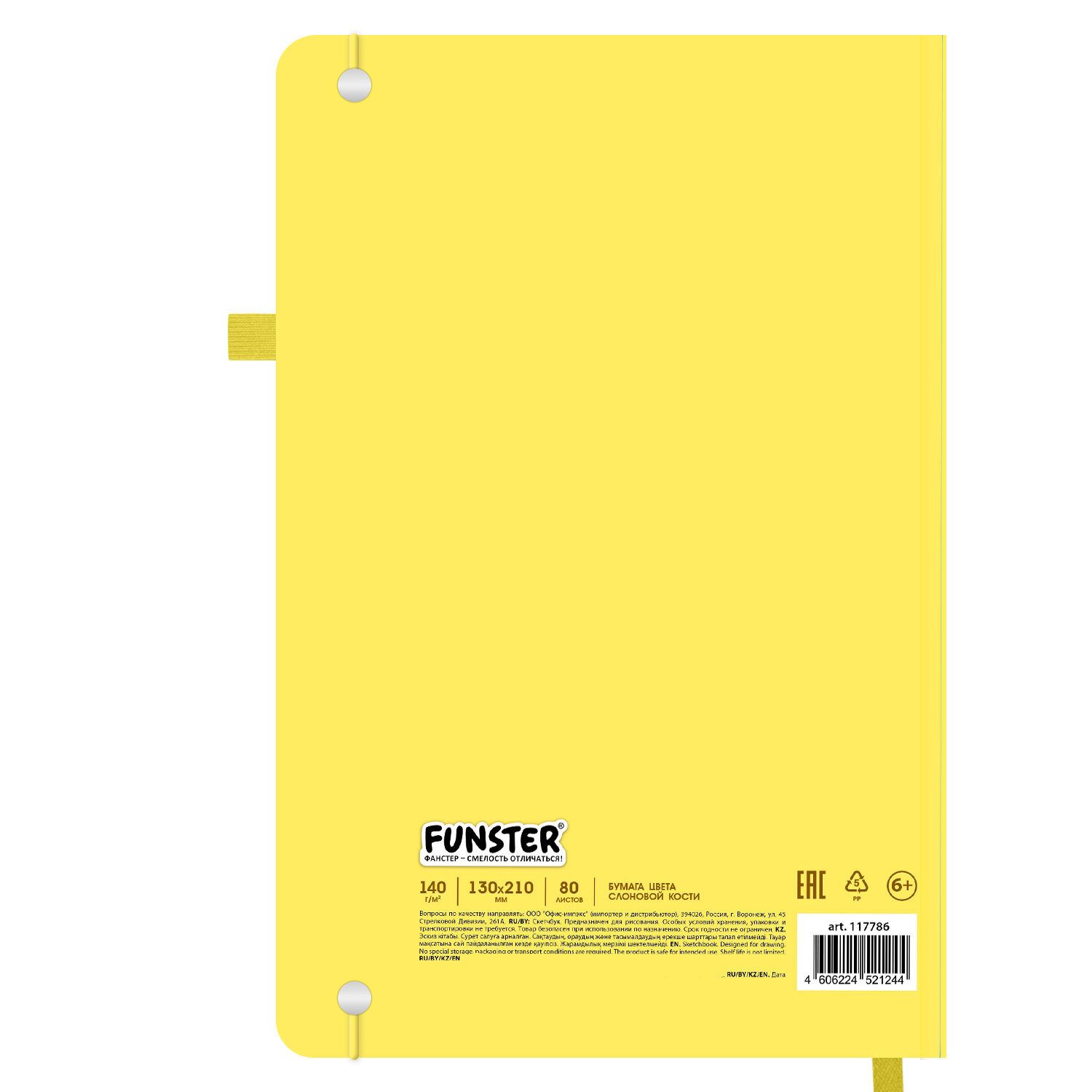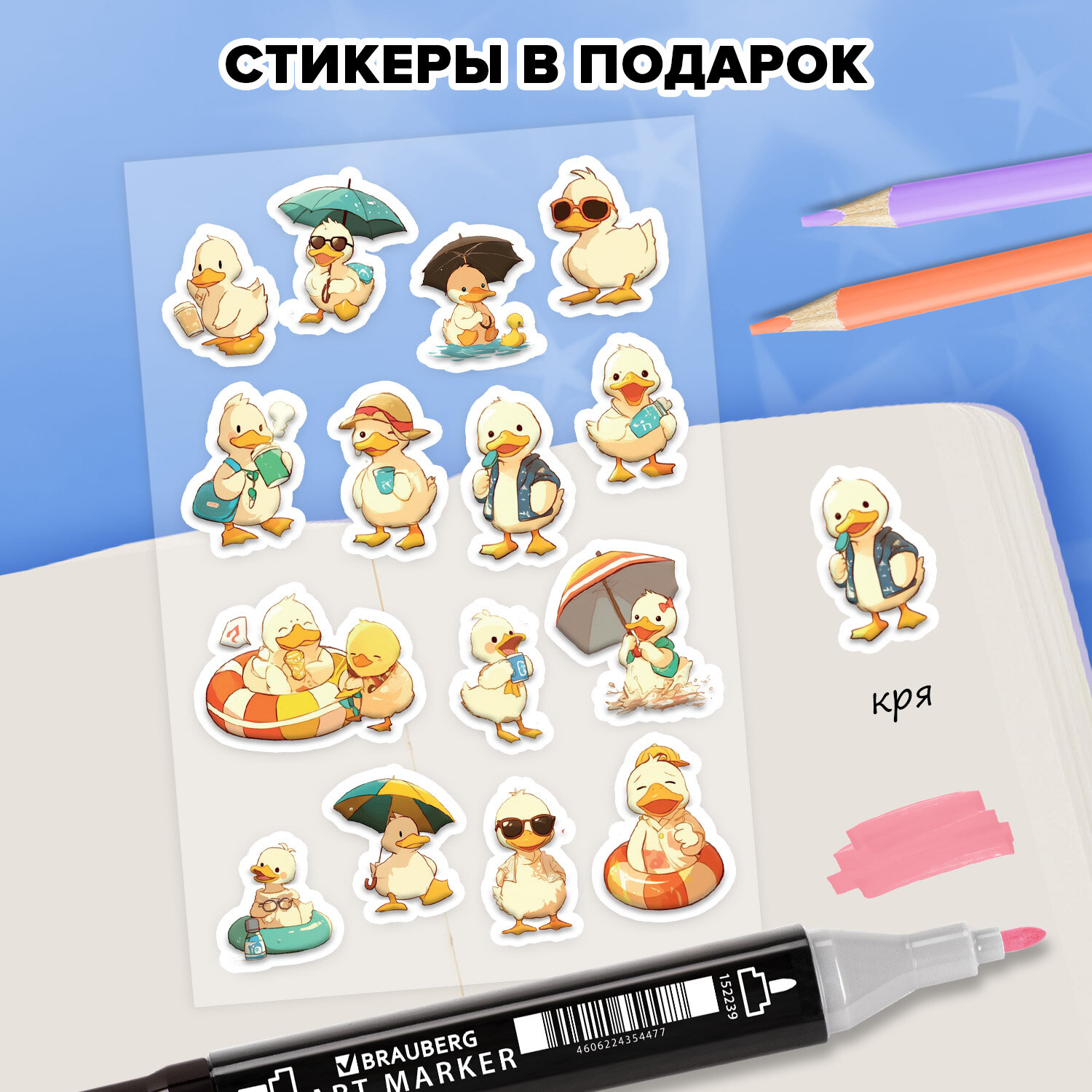 Скетчбук, слоновая кость 140 г/м2, 130х210 мм, 80 л., софт-тач, резинка, наклейки, FUNSTER (ФАНСТЕР), "Duck" Код товара: 117786 387,57 ₽ Купить Производитель:FUNSTER Скетчбук FUNSTER подходит для эскизов, графики, набросков, каллиграфии, леттеринга, скетчинга и ведения записей. Это компактный скетчбук с жесткой обложкой, покрытой матовой пленкой soft-touch. Внутренний блок – 80 листов специальной художественной тонированной бумаги цвета слоновой кости плотностью 140 г/м2. Подходит для работы с широким спектром графических материалов (ручки, карандаши, линеры). Благодаря компактному формату его можно носить с собой, а жесткая обложка станет верным подспорьем для рисования на весу. Дополнением является закладка-ляссе, с помощью которой при необходимости можно быстро открыть скетчбук на нужной странице, и держатель для письменных принадлежностей. Эластичная резинка надежно сбережет листы от замятия и случайного раскрытия. Скетчбук станет прекрасным выбором для любителей и профессионалов, студентов и школьников, художников и дизайнеров. Отличным дополнением к скетчбуку являются наклейки, которые можно разместить как на обложку скетчбука, так и на листы внутреннего блока, сделав свои наброски, рисунки и записи еще красивее и ярче.Производство: КитайТип товара: блокнот/скетчбукСерия: нет серииВид работ: для зарисовок, эскизов, рисованияКоличество листов: 80Формат: А5Ширина: 130 ммДлина: 210 ммДизайн: DuckОбложка: твердый переплетВнутренний блок: художественная бумагаЦвет внутреннего блока: слоновая костьПлотность внутреннего блока: 140 г/м2Жесткая подложка: даТип скрепления: книжный переплетБез кислот: даЦвет обложки: желтыйИндивидуальная упаковка: даВес: 422 грРазмер упаковки: 2 × 13 × 21 смОбъём: 0.0006 м3Промежуточная упаковка: 36 штТранспортная упаковка: 36 штШтрих-код: 4606224521244