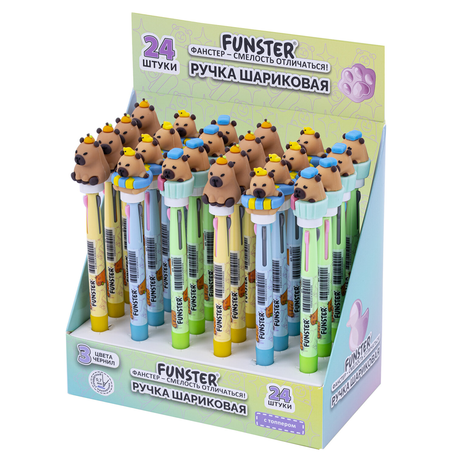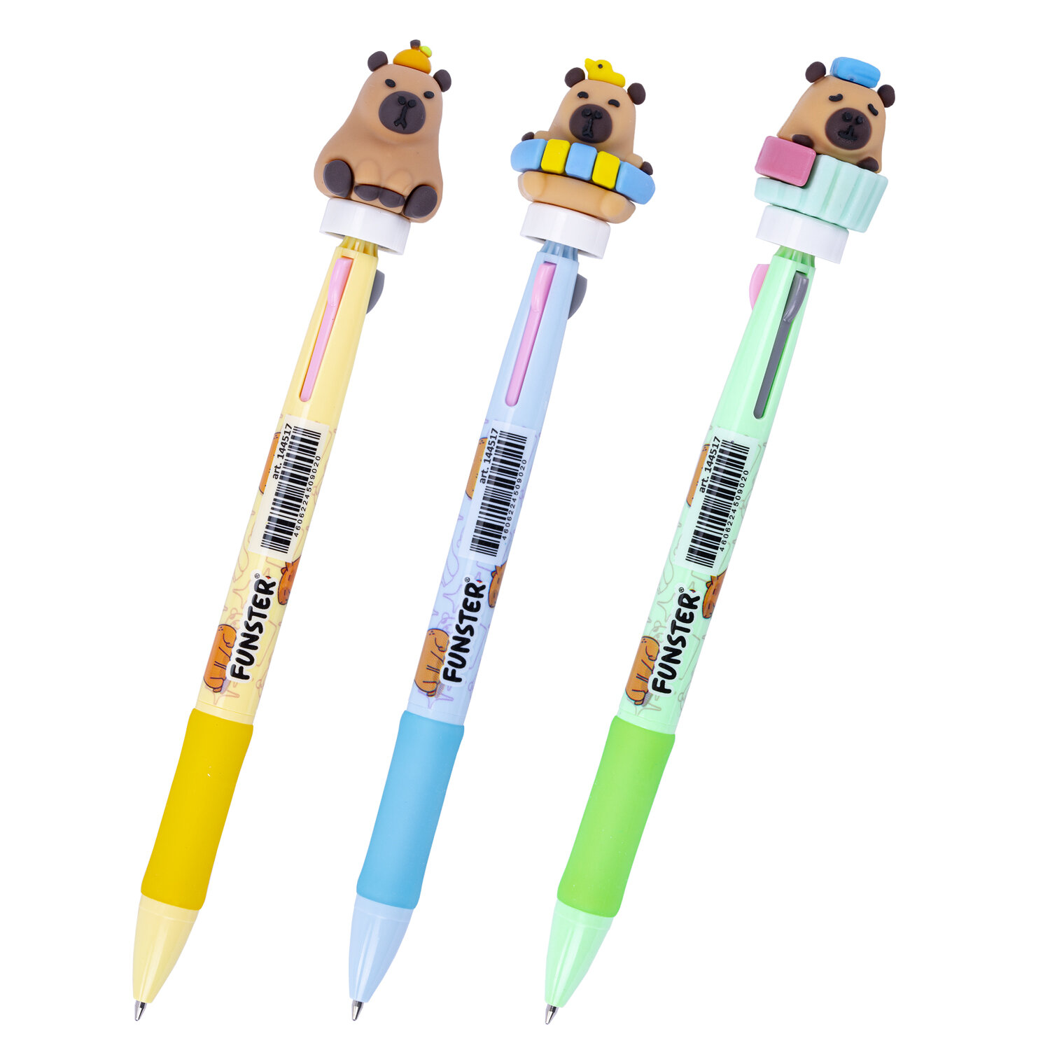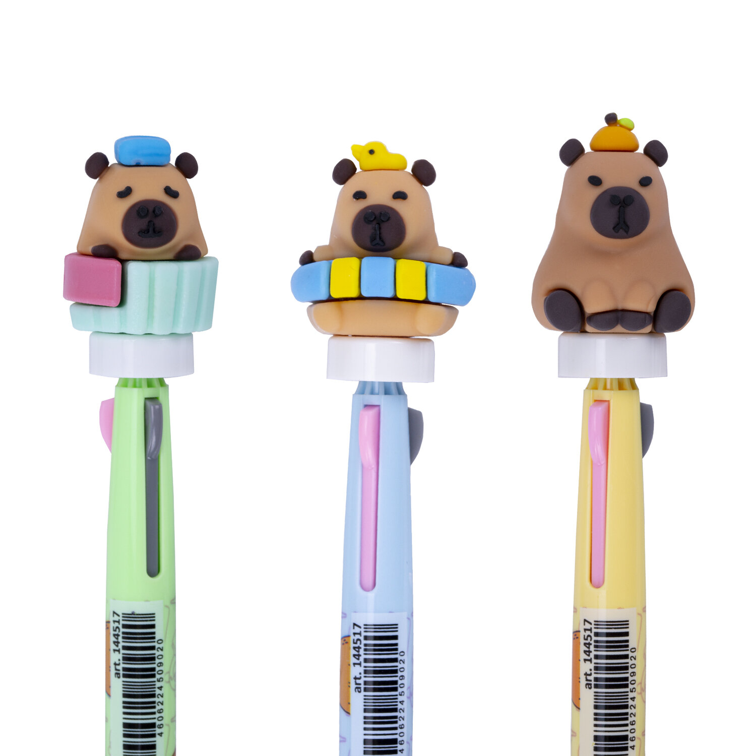 Ручка-спиннер многоцветная с топпером FUNSTER "COOL CAPY", 3 ЦВЕТА, ассорти, пишущий узел 0,7 мм, линия письма 0,35 мм Код товара: 144517 111,23 ₽ Купить Производитель:FUNSTER Многоцветная ручка-спиннер FUNSTER "COOL CAPY" станет не только удобным инструментом для учебы, но и настоящим украшением для школьной сумки или пенала. Варианты расцветки корпуса – мягкие оттенки: светло-зеленый, голубой и светло-жёлтый. Благодаря стандартному наконечнику 0,7 мм ваши дети смогут легко создавать яркие записи в трех насыщенных цветах: синем, красном и черном – идеально для творческих идей, заметок и забавных рисунков. А мягкий грип сделает писание максимально комфортным и приятным, превращая каждый урок или домашнюю работу в увлекательное занятие. Главный бонус – милые вращающиеся фигурки капибар, которые радуют глаз и поднимают настроение. Они станут верными спутниками каждого ребенка, вдохновляя на новые открытия и творческие подвиги!Производство: КитайЦвет чернил: ассортиОдноразовая: даТолщина линии письма: 0.35 ммДиаметр пишущего узла: 0.7 ммФорма наконечника: стандартныйКоличество в комплекте: 1 шт.Эргономичная зона захвата: резиновый держательЦвет корпуса: ассортиДлина письма: 800 мСерия: COOL CAPYДизайн: ассортиФорма корпуса: круглаяПокрытие корпуса: -Для левшей: даУпаковка: картонный дисплейСрок годности: 60 месВес: 28 грРазмер упаковки: 2.5 × 17.6 × 2.6 смОбъём: 0.0002 м3Промежуточная упаковка: 24 штТранспортная упаковка: 576 штШтрих-код: 4606224509020 Сертификат-1.jpg Сертификат-2.jpg