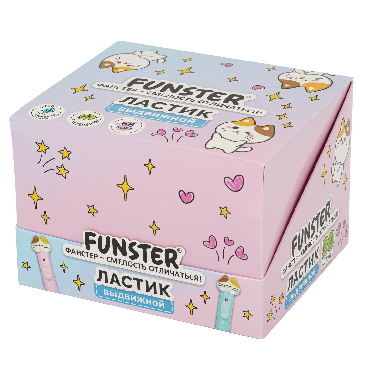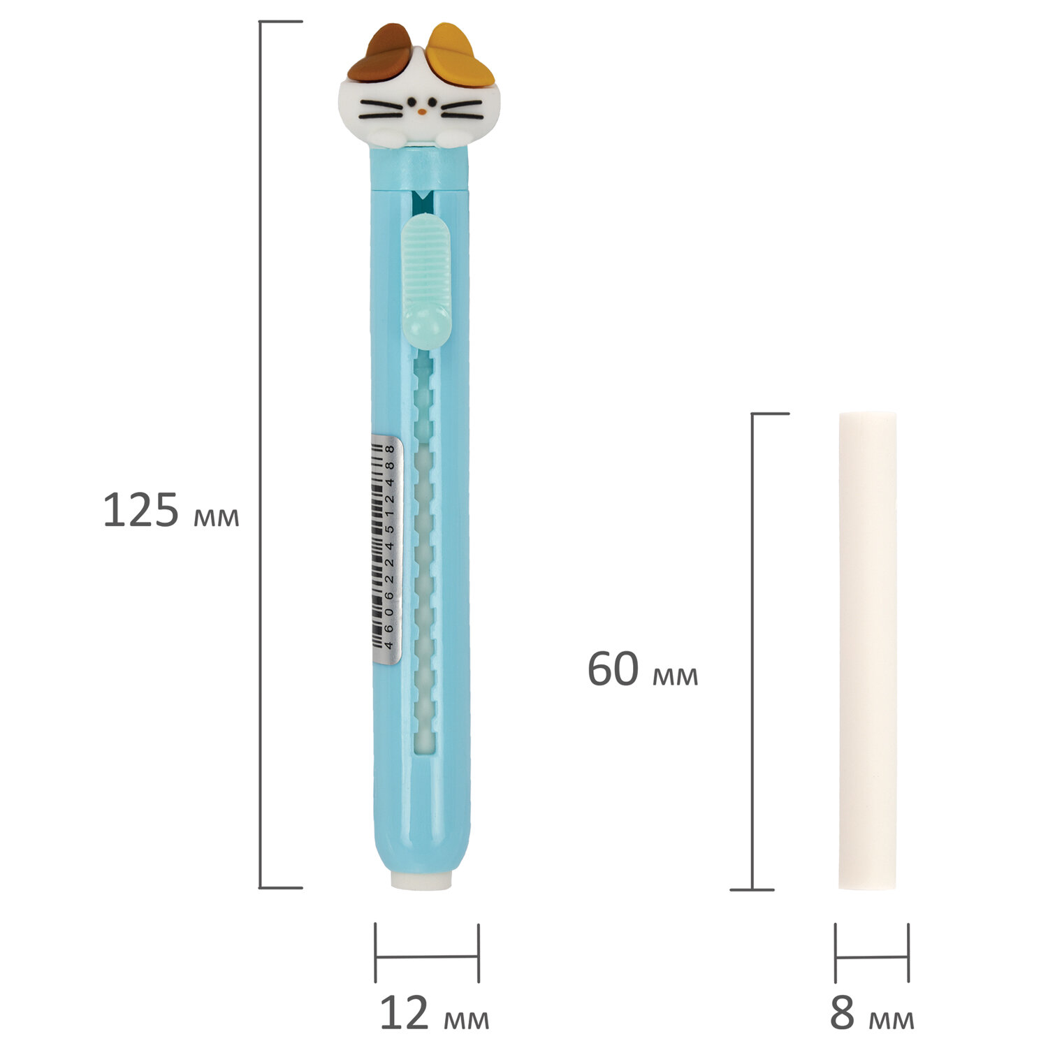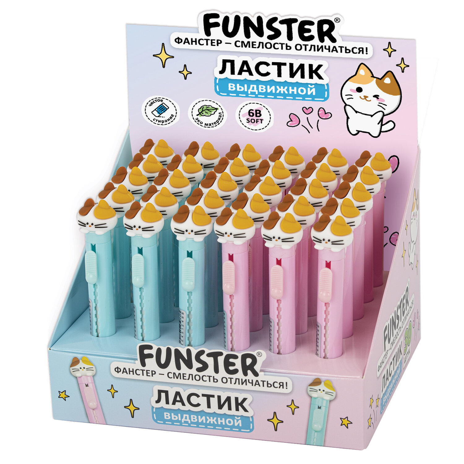 Ластик выдвижной с топпером FUNSTER (ФАНСТЕР) "КОТЁНОК", 125х12х12 мм, пастельные цвета корпуса ассорти Код товара: 274020 100,12 ₽ Купить Производитель:FUNSTER Выдвижной ластик FUNSTER "КОТЕНОК" – это милый аксессуар, созданный не только для безупречного исправления ошибок, но и для того, чтобы дарить улыбку и вдохновлять каждый день. Ластик выполнен из современного безопасного материла – термопластичного эластомера, обеспечивающего чистое стирание без образования бумажной пыли. Цвет ластика – белый. Удобный выдвижной механизм позволяет нажатием пальца выдвигать и задвигать ластик по мере необходимости и предотвращает его загрязнение и повреждение. Корпус ластика представлен в двух пастельных цветах: розовый и голубой (без возможности выбора). Верхняя часть корпуса украшена несъемной фигуркой котёнка. Размеры ластика – 60x8x8 мм, длина вместе с корпусом – 125x12x12 мм.Производство: КитайКоличество в упаковке: 1 шт.Материал: термопластичный эластомерФорма: фигурнаяСтираемые письменные принадлежности: чернографитные карандашиДержатель: пластиковый футлярЦвет: пастельный ассортиСерия: КОТЁНОКНе оставляет бумажной пыли: даРазмер: 125x12x12 ммУпаковка: дисплейВес: 15 грРазмер упаковки: 1.8 × 10.2 × 2 смОбъём: 0.0001 м3Промежуточная упаковка: 30 штТранспортная упаковка: 360 штШтрих-код: 4606224512488 Файлы Сертификат-1.jpg Сертификат-2.jpg