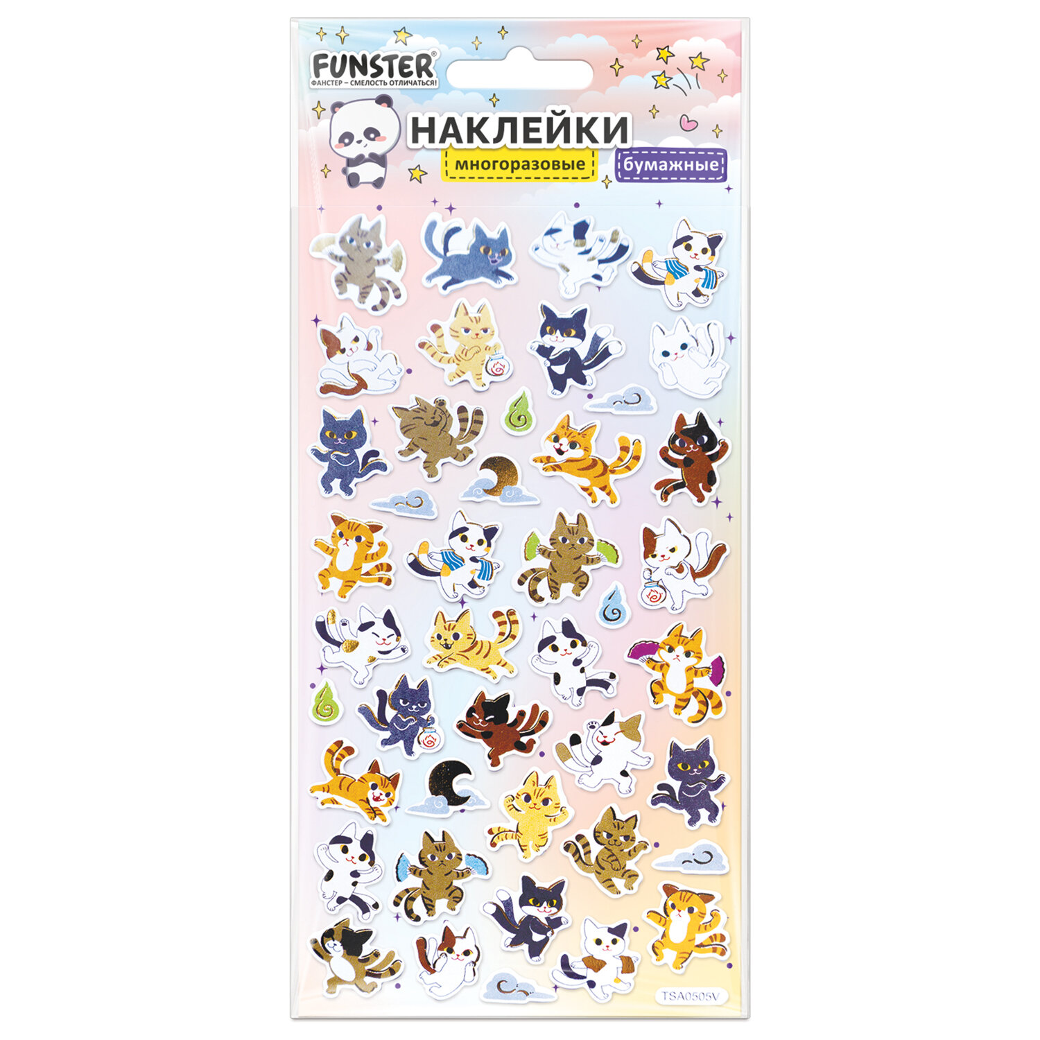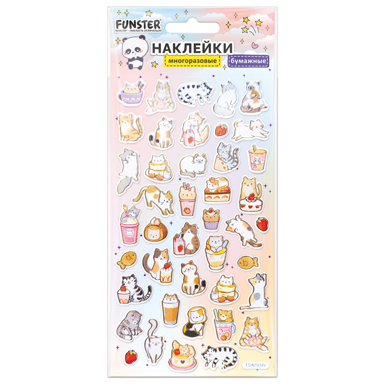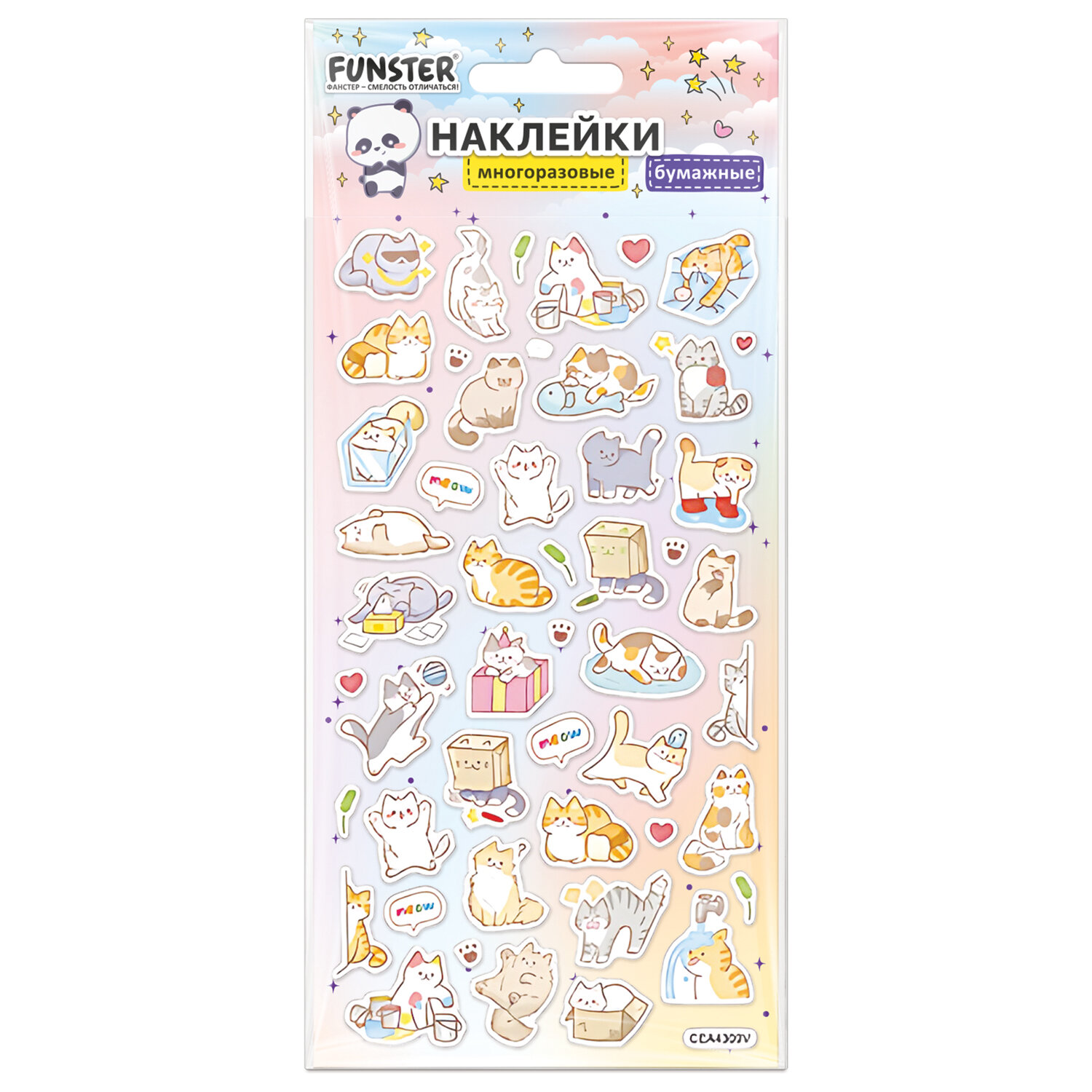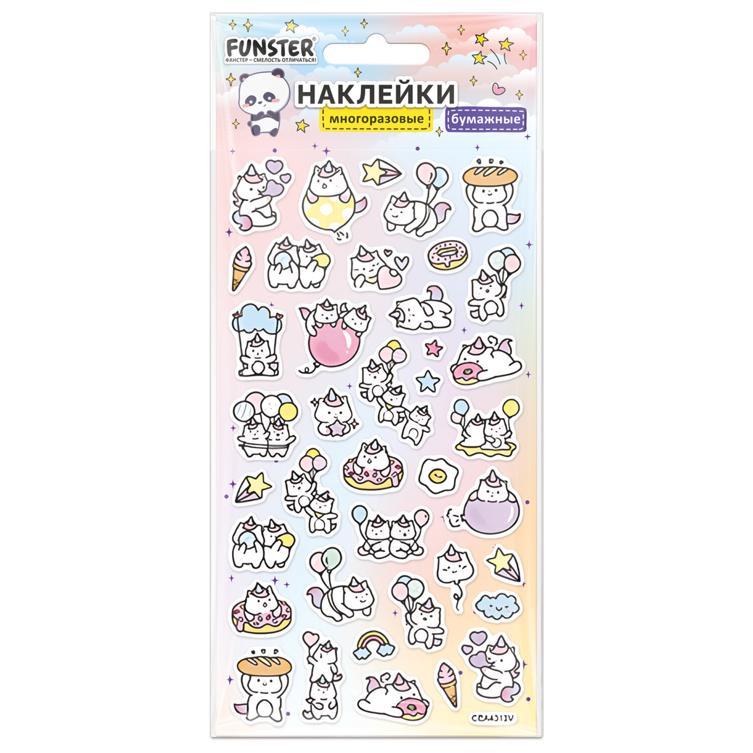 Наклейки бумажные 17,5х9,5 см, ассорти 12 видов, FUNSTER (ФАНСТЕР), 666676 Код товара: 666676 98,81 ₽ Купить Производитель:FUNSTER Декоративные наклейки FUNSTER – идеальный выбор для творчества! Эти очаровательные наклейки в ярких дизайнах ассорти поднимут настроение и добавят красок в повседневность. Превратите обычные вещи в яркие и милые аксессуары с декоративными наклейками! Они легко клеятся на бумагу, картон, пластик, стекло, дерево и другие поверхности. В наборе от 27 до 76 бумажных наклеек с очаровательными дизайнами животных ассорти, которые никого не оставят равнодушными. Высокое качество печати гарантирует, что наклейки долго остаются яркими и радуют глаз!Производство: КитайТип наклеек: бумажныеСерия: АссортиТематика: животныеКоличество наклеек: 76 шт.Тип поверхности наклеивания: любаяДлина листа: 175 ммШирина листа: 95 ммМатериал: бумага самоклеящаяся, полимерыВозрастная группа: от 3 летПол ребенка: универсальныеУпаковка: пакет с европодвесомСрок годности: 60 месВес: 16 грРазмер упаковки: 0.1 × 10 × 21.5 смОбъём: 0.0001 м3Промежуточная упаковка: 24 штТранспортная упаковка: 288 штШтрих-код: 4606224516783 Сертификат-1.jpg Сертификат-2.jpg