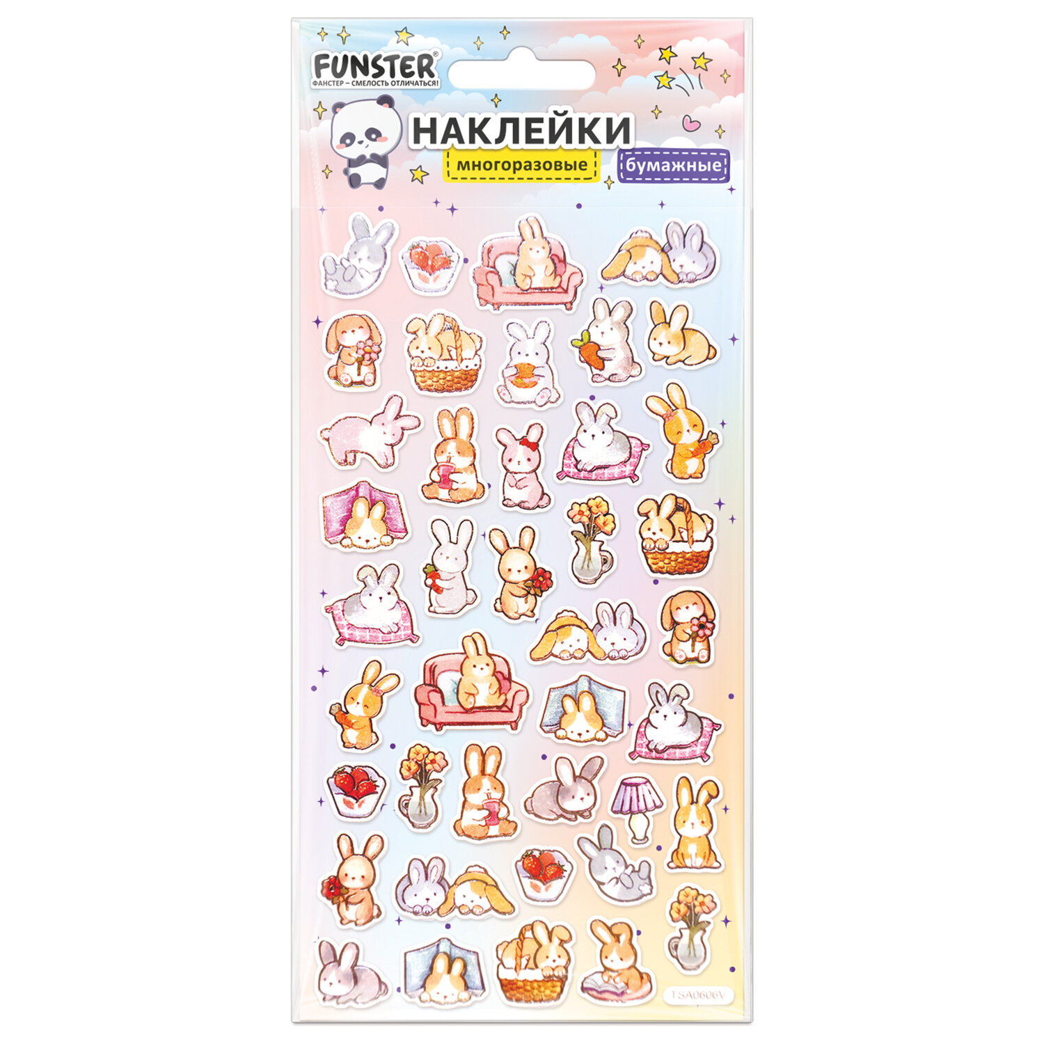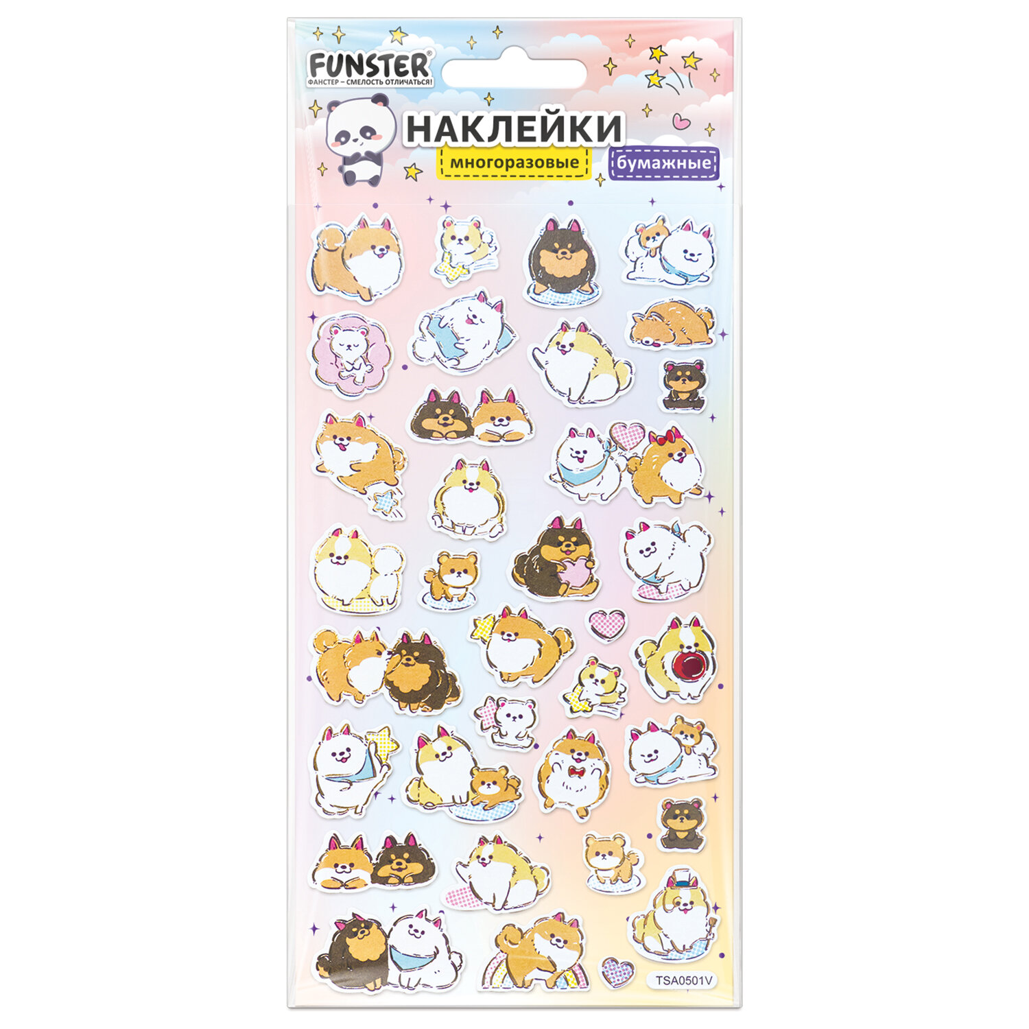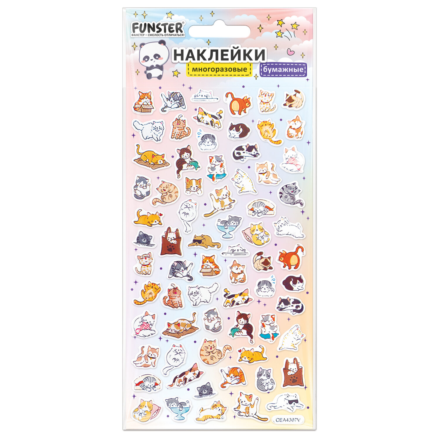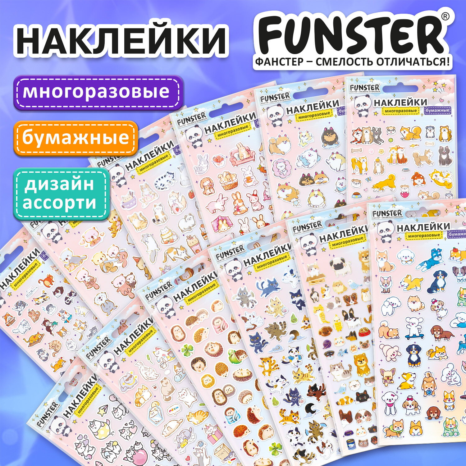 Наклейки бумажные 17,5х9,5 см, ассорти 12 видов, FUNSTER (ФАНСТЕР), 666676 Код товара: 666676 98,81 ₽ Купить Производитель:FUNSTER Декоративные наклейки FUNSTER – идеальный выбор для творчества! Эти очаровательные наклейки в ярких дизайнах ассорти поднимут настроение и добавят красок в повседневность. Превратите обычные вещи в яркие и милые аксессуары с декоративными наклейками! Они легко клеятся на бумагу, картон, пластик, стекло, дерево и другие поверхности. В наборе от 27 до 76 бумажных наклеек с очаровательными дизайнами животных ассорти, которые никого не оставят равнодушными. Высокое качество печати гарантирует, что наклейки долго остаются яркими и радуют глаз!Производство: КитайТип наклеек: бумажныеСерия: АссортиТематика: животныеКоличество наклеек: 76 шт.Тип поверхности наклеивания: любаяДлина листа: 175 ммШирина листа: 95 ммМатериал: бумага самоклеящаяся, полимерыВозрастная группа: от 3 летПол ребенка: универсальныеУпаковка: пакет с европодвесомСрок годности: 60 месВес: 16 грРазмер упаковки: 0.1 × 10 × 21.5 смОбъём: 0.0001 м3Промежуточная упаковка: 24 штТранспортная упаковка: 288 штШтрих-код: 4606224516783 Сертификат-1.jpg Сертификат-2.jpg