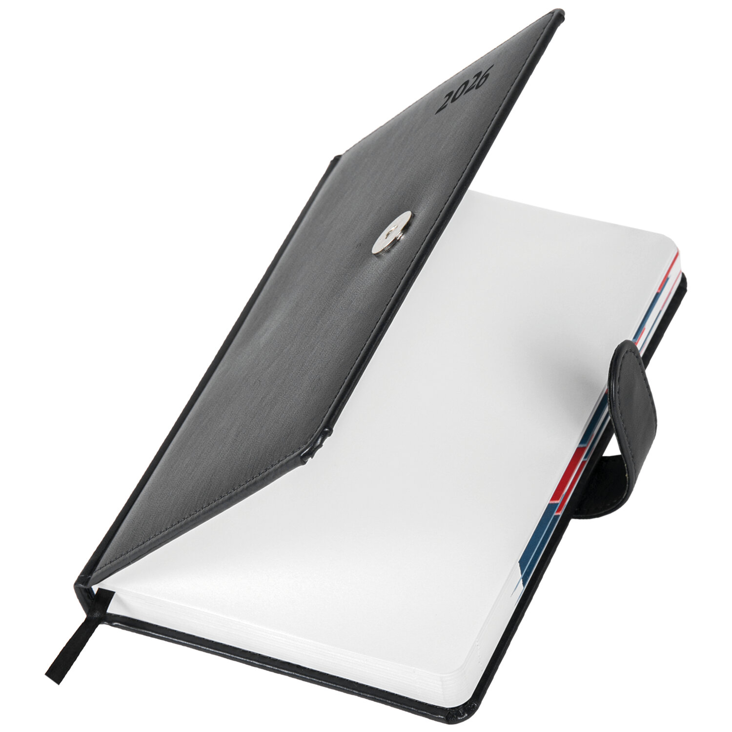 Ежедневник датированный 2026 А5 148х218 мм, GALANT "Ritter", под кожу, черный Код товара: 117491 743,73 ₽ Купить Производитель:GALANT Датированный ежедневник серии "Ritter" от GALANT – надежный спутник делового человека. Внутренний блок включает 168 листов белой бумаги плотностью 70 г/м2. Каждая страничка имеет перфорированный угол. Благодаря стандартному формату А5 (148х218 мм) ежедневник удобно использовать как в офисе, так и на выездных деловых встречах. Твердая обложка черного цвета прошита по периметру и стилизована под гладкую кожу. Обложка фиксируется магнитной застежкой, поэтому ежедневник не откроется в сумке или портфеле и страницы не помнутся. Материал обложки подходит для горячего тиснения. Дополнением является закладка-ляссе, с помощью которой при необходимости можно быстро открыть ежедневник на нужной странице, а также вырубка по месяцам. Ежедневник снабжен обширным справочным материалом. В конце есть 6 страниц для записей и заметок.Производство: КитайТип ежедневника: датированныйФормат: А5Обложка: под гладкую кожуВид обложки: твердаяКоличество листов: 168 шт.Особенности: вырубка блока, закладка-ляссе, перфорация уголков, поролоновая прослойка, прострочка по периметру, скругленные углы, справочная информацияСерия: RitterГод: 2026Тип застежки: магнитная застежкаОсновной цвет обложки: черныйДополнительный цвет обложки: нетЦвет среза: белыйЦвет внутреннего блока: белыйПлотность внутреннего блока: 70 г/м2Высота строки для записи: 4 ммТип крепления: сшивкаПечать блока: 2 краскиПодходит для блинтового тиснения: даПодходит для тиснения фольгой: даПодходит для заливки полимерной смолой: даПодходит для УФ-печати: даПодходит для тампопечати: даДлина: 218 ммШирина: 148 ммТолщина: 20 ммВес: 533 грРазмер упаковки: 2.9 × 21.7 × 15.9 смОбъём: 0.0013 м3Промежуточная упаковка: 15 штТранспортная упаковка: 15 штШтрих-код: 4606224489186 Файлы Сертификат-1.jpg Сертификат-2.jpg Сертификат-3.jpg Сертификат-4.jpg Сертификат-5.jpg Сертификат-6.jpg Сертификат-7.jpg Сертификат-8.jpg Сертификат-9.jpg Сертификат-10.jpg Сертификат-11.jpg Сертификат-12.jpg Сертификат-13.jpg Сертификат-14.jpg Сертификат-15.jpg Сертификат-16.jpg Сертификат-17.jpg Сертификат-18.jpg Сертификат-19.jpg Сертификат-20.jpg Сертификат-21.jpg Сертификат-22.jpg Сертификат-23.jpg Сертификат-24.jpg Сертификат-25.jpg Сертификат-26.jpg