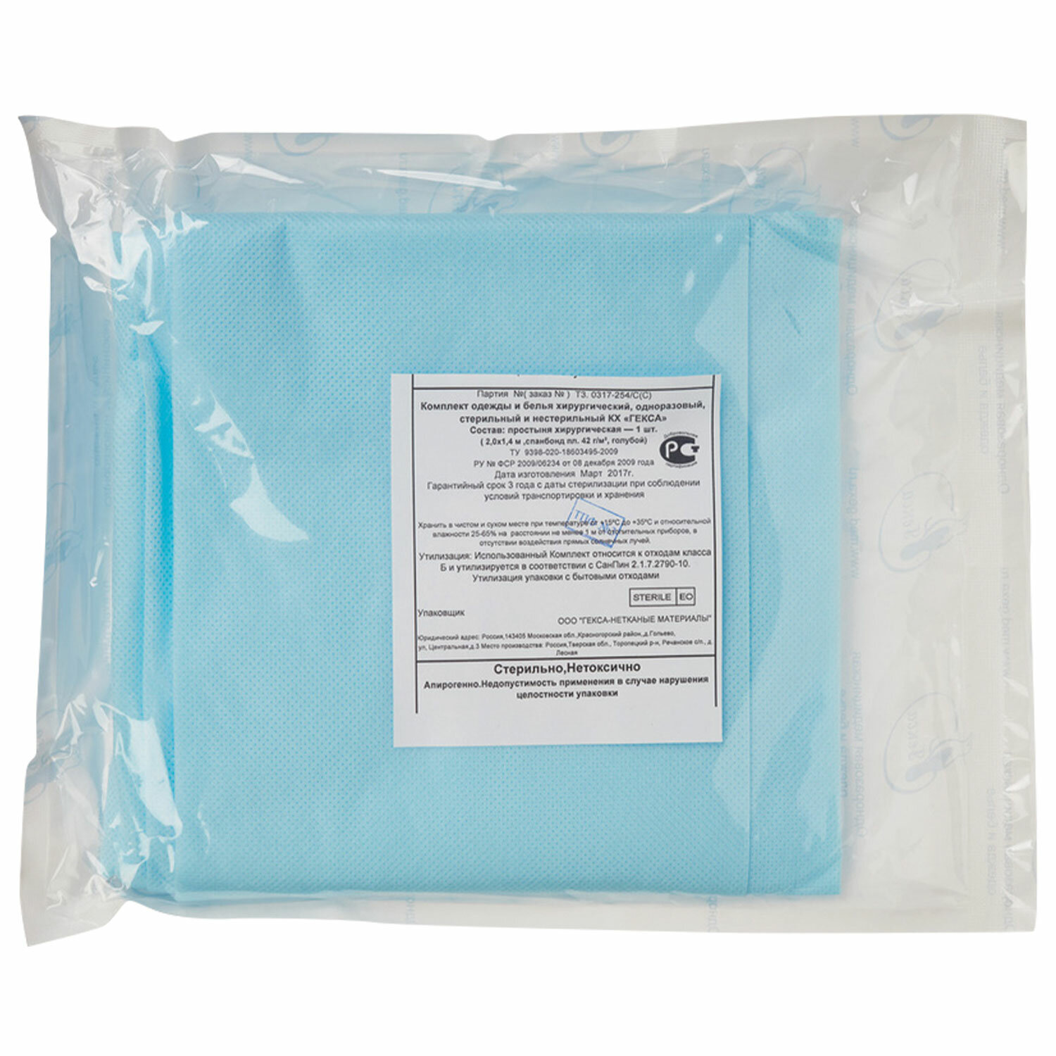 Простыня одноразовая ГЕКСА стерильная, 140х200 см, спанбонд 42 г/м2, голубая Код товара: 630126 61,84 ₽ Купить Производитель:ГЕКСА Стерильная одноразовая простыня из нетканого материала спанбонд в индивидуальной упаковке. ТУ 9398-020-18603495-2009. РУ № ФСР 2009/06234.Производство: РоссияВид товара: простыни форматныеПредназначение: для массажных салонов, для медицинских центров, для салонов красоты, для студий маникюра и педикюраСтерильность: даМатериал основы: спанбонд 42Сложение: форматныеРазмер отдельной простыни: 140х200 смКоличество в упаковке/рулоне: 1 шт.Плотность материала основы: 42 г/м2Наличие РУ: даЦвет: голубойСрок годности: 36 месВес: 144 грРазмер упаковки: 3.5 × 19 × 19 смОбъём: 0.0014 м3Промежуточная упаковка: 40 штТранспортная упаковка: 40 штШтрих-код: 4660125422499 Файлы Сертификат-1.jpg Сертификат-2.jpg