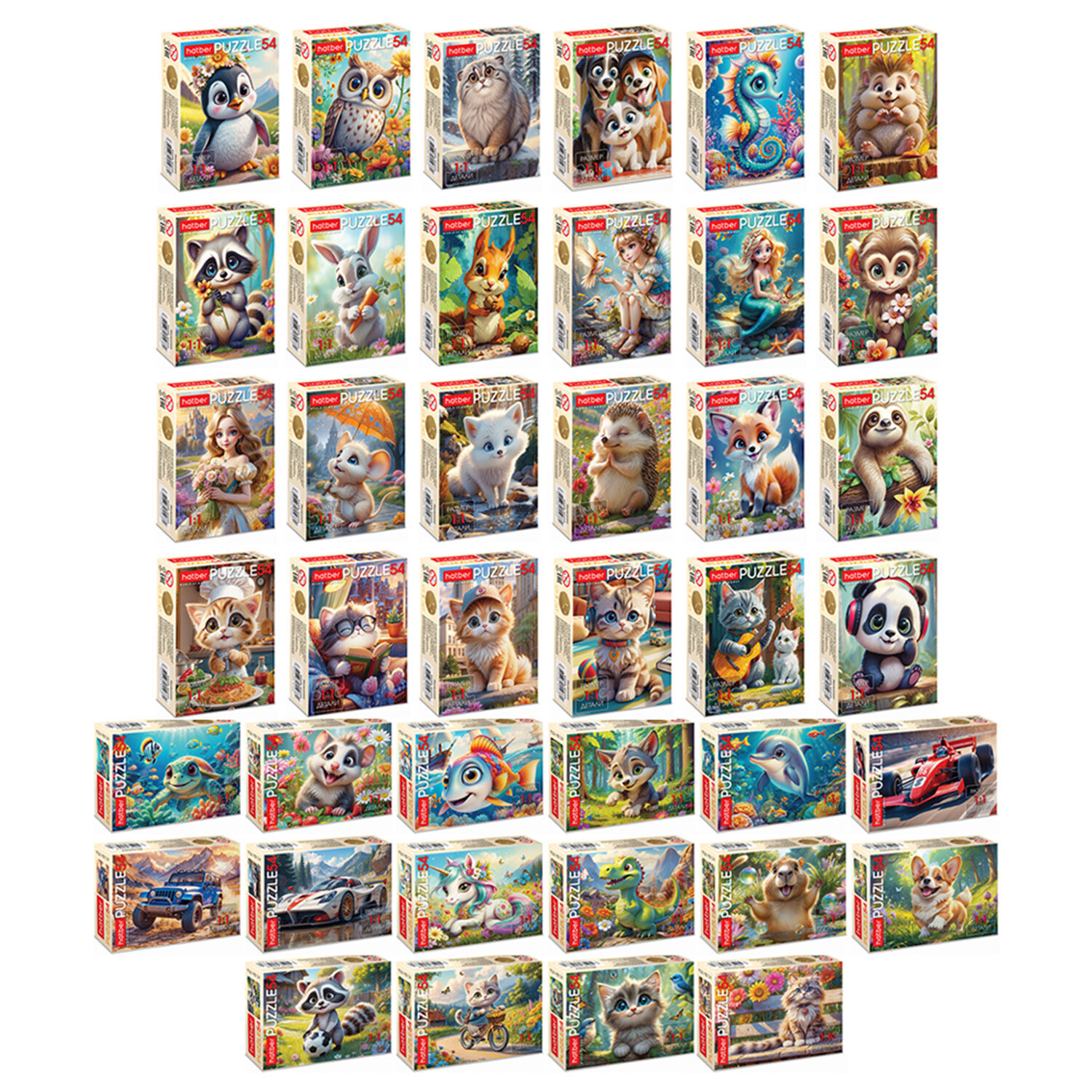 Пазл картонный 54 элемента "ОЧАРОВАТЕЛЬНЫЕ МОРДАШКИ", АССОРТИ, 40 видов, 175х130 мм, HATBER Код товара: 667316 56,1 ₽ Купить Производитель:HATBER Пазлы "ОЧАРОВАТЕЛЬНЫЕ МОРДАШКИ" созданы специально для самых маленьких! Яркие, крупные детали абсолютно безопасны для малышей, а разнообразие картинок-сюжетов не оставит равнодушным ни одного ребенка. Пазл состоит из 54 элементов, размер поля – 175х130 мм. Детали изготовлены из экологически безопасного и не расслаивающегося картона. Предназначен для самых маленьких, отлично помогает в формировании мелкой моторики ребёнка. Персонажи картинки яркие и интересные, хорошо прорисованные. Продукция соответствует стандартам качества. Упаковка – картонная коробка в термоусадочной пленке. Поставляется в нескольких вариантах дизайна.Производство: РоссияКоличество элементов: 54 шт.Форма: фигурнаяОриентация: ассортиШирина: 130 ммДлина: 175 ммПредназначение: универсальныйСерия: Пазл картонныйДизайн: Ассорти 40Материал: картонУпаковка: картонная коробкаВес: 33 грРазмер упаковки: 2.7 × 9.2 × 6.5 смОбъём: 0.0002 м3Промежуточная упаковка: 40 штТранспортная упаковка: 40 штШтрих-код: 4606782621561 Сертификат-1.jpg Сертификат-2.jpg