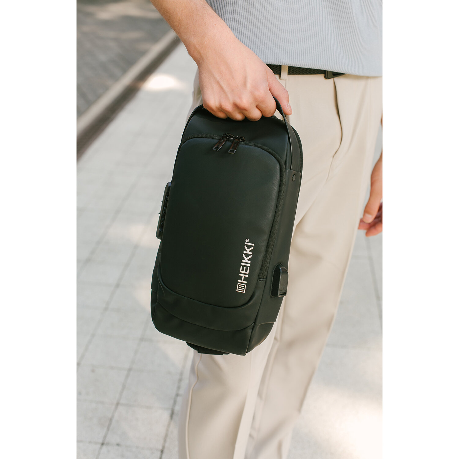Рюкзак однолямочный HEIKKI FEATURE (ХЕЙКИ), кодовый замок, USB-порт, черный, 32x16x6 см Код товара: 273900 1 248,68 ₽ Купить Производитель:HEIKKI Рюкзак HEIKKI FEATURE – это идеальное сочетание стиля, безопасности и функциональности для современных городских жителей. Легкий и компактный, он создан, чтобы сопровождать владельца где угодно – будь то повседневные поездки или дальние путешествия. Рюкзак HEIKKI FEATURE – лёгкий и компактный, идеально подходящий для активных городских жителей. Благодаря малому весу и продуманному дизайну он не создаёт лишней нагрузки и удобно помещается даже в небольших пространствах. Водоотталкивающий материал надежно защищает вещи от дождя и влаги. Основное отделение закрывается на два металлических бегунка с кодовым замком, что обеспечивает высокий уровень безопасности для ваших ценных предметов. Внутри расположены несколько карманов для удобной организации гаджетов, документов и аксессуаров, позволяя поддерживать порядок и быстро находить нужные вещи. Регулируемая мягкая вентиляционная лямка оснащена небольшим карманом для банковской карты, что позволяет хранить важные мелочи под рукой и быстро получить к ним доступ. Рюкзак оборудован двумя удобными ручками: одна для комфортной переноски в руке, другая – для удобного подвешивания на крючок. Встроенный USB-порт даёт возможность заряжать гаджеты, не доставая пауэрбанк из рюкзака. Особое внимание в дизайне уделено элементам безопасности. Светоотражающая линия на лямке и светоотражающий логотип на передней части рюкзака значительно повышают вашу заметность в темное время суток, делая передвижение более безопасным при плохом освещении. Рюкзак упакован в плотный ПЭТ-пакет для сохранности при хранении и транспортировке. Продуманный баланс стиля, защиты и удобства делает HEIKKI FEATURE отличным выбором для повседневных поездок и путешествий.Производство: КитайПол: унисексСерия: FEATUREОбъем: 4 лКоличество отделений: 1Регулируемые лямки: даКоличество карманов: 6 шт.Фронтальный карман: даНаличие ручки для переноса: даВентилируемые лямки: даОтверстие для наушников: даМатериал: полиуретанЦвет: черныйДизайн: нетВысота: 32 смШирина: 16 смГлубина: 6 смДлина лямок: 44 смВес: 0.4 кгРазмер упаковки: 5.6 × 43.7 × 25.8 смОбъём: 0.0039 м3Промежуточная упаковка: 15 штТранспортная упаковка: 15 штШтрих-код: 4606224507927 Файлы Сертификат-1.jpg Сертификат-2.jpg Сертификат-3.jpg Сертификат-4.jpg