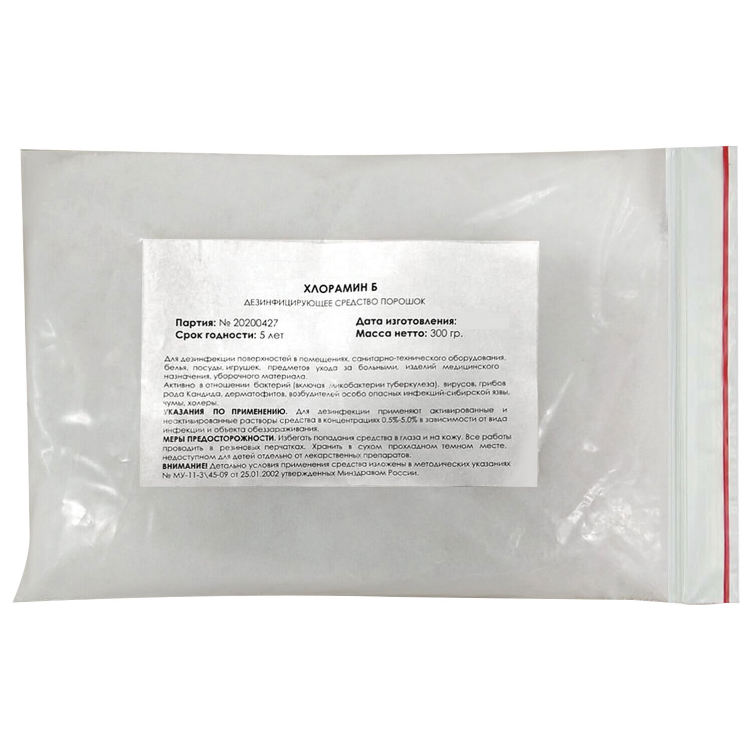 Состав: содержит в качестве действующего вещества натриевую соль хлорамида бензолсульфокислоты (99,9%, но не менее 99,5%). Содержание активного хлора в средстве не менее 25,0%. Растворимость в воде не менее 20 г / 100 мл.