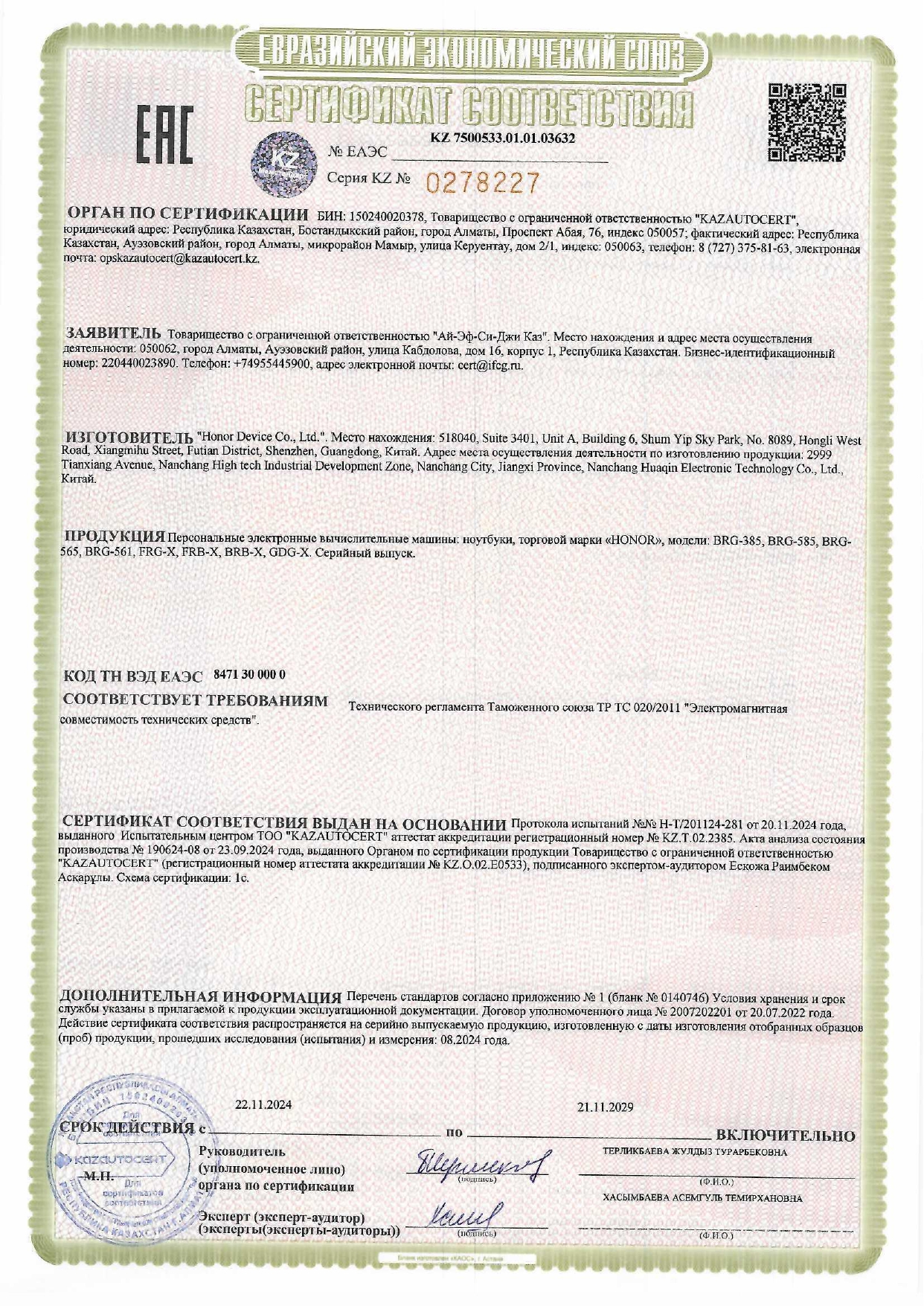 Ноутбук HONOR MagicBook X14 14", Intel Core i5-12450H, 8 Гб, SSD 512 Гб, No OS, серый Код товара: 355099 62 814,87 ₽ Купить Производитель:HONOR Ноутбук HONOR станет отличным выбором для студентов, фрилансеров и профессионалов, которым важна мобильность и высокая производительность. Благодаря легкому весу и тонкому дизайну, он легко помещается в рюкзак или сумку. Невероятно быстрый и производительный процессор Intel Core i5-12450H мощностью 8 ядер / 12 потоков способен справиться с любыми рабочими задачами, будь то создание презентаций, редактирование изображений или просмотр онлайн-курсов. Эксклюзивный Full HD+ (1920x1200 пикселей) экран с соотношением сторон 16:10 дарит детализированное изображение и широкие углы обзора, делая визуализацию ещё приятнее и продуктивнее. Благодаря эффективному управлению питанием аккумулятор емкостью 42 Вт·ч способен поддерживать вашу активность до 10 часов непрерывной работы, позволяя забыть о зарядке на целый рабочий день. Комплектуется быстрым твердотельным накопителем NVMe PCIe M.2 SSD объемом 512 ГБ, обеспечивающим молниеносную загрузку приложений и мгновенную передачу данных. А наличие 8 ГБ оперативной памяти (LPDDR4X SDRAM) позволяет комфортно работать в многозадачном режиме. Интеллектуальная комбинация порта USB Type-C и классического USB-A открывает максимум возможностей для удобной зарядки, передачи данных и подключения периферийных устройств. Легкая и прочная алюминиевая крышка обеспечивает превосходную защиту устройства и удобство транспортировки, а компактные габариты позволяют носить ноутбук с собой повсюду. Высококачественный материал корпуса, точный механизм раскрытия крышки и оптимизированная система вентиляции продлевают срок службы устройства и обеспечивают стабильность работы даже при высоких нагрузках. Серый матовый оттенок и минималистичный дизайн привлекают взгляды окружающих и придают владельцу престиж и индивидуальность. Вся информация на сайте о товарах носит справочный характер и не является публичной офертой в соответствии с пунктом 2 статьи 437 ГК РФ. Производитель оставляет за собой право изменять характеристики товара, его внешний вид и комплектность без предварительного уведомления продавца.Производство: КитайДиагональ экрана: 14 "Разрешение экрана: 1920x1200 пикселейПоверхность экрана: матоваяОперационная система: без операционной системыПроцессор: IntelМодель процессора: Core i5-12450HЧисло ядер процессора: 8 шт.Максимальная частота процессора: 4.4 ГГцБазовая частота процессора: 2 ГГцТип оперативной памяти: LPDDR4Размер оперативной памяти: 8 ГБТип накопителя: SSDОбъем жесткого диска (HDD): 0 ГБОбъем твердотельного накопителя (SSD): 512 ГБТип видеокарты: встроеннаяПроизводитель видеочипа: IntelМодель видеокарты: Intel UHD GraphicsРазмер видеопамяти: 0 МБСкорость сетевого адаптера: 0 Мбит/сБеспроводные подключения: BlueTooth, Wi-FiВстроенные динамики и микрофон: даВстроенная веб-камера: даРазъем RJ-45: 0 шт.Разъем USB 2.0: 0 шт.Разъем USB 3.0: 2 шт.Разъем USB Type-C: 1 шт.Разъем VGA (D-Sub): 0 шт.Разъем HDMI: 1 шт.Разъем DisplayPort: 0 шт.Разъем для наушников/микрофона: даТип аккумулятора : li-polЗапасаемая энергия: 42 Вт/чВремя автономной работы: 8.5 чМатериал корпуса: алюминийЦвет корпуса: серыйВысота: 1.95 смШирина: 22.91 смГлубина: 31.31 смВес: 1.43 кгСерия: MagicBookРазмер упаковки: 28 × 47 × 7 смОбъём: 0.0092 м3Промежуточная упаковка: 1 штТранспортная упаковка: 1 штШтрих-код: 6936520860951 Файлы Сертификат-1.jpg Сертификат-2.j