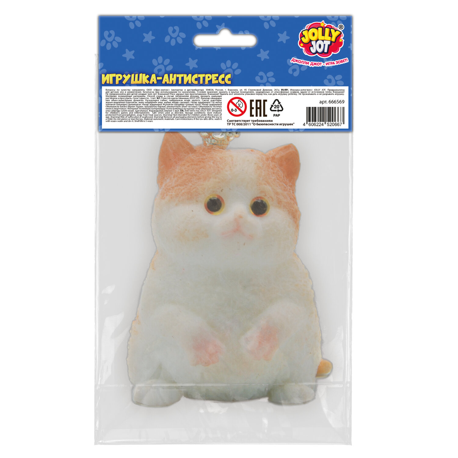 Игрушка-антистресс "Котик малый", 9 см, ассорти, 2 цвета, дисплей, JOLLY JOT (ДЖОЛЛИ ДЖОТ) Код товара: 666569 215,71 ₽ Купить Производитель:JOLLY JOT Игрушка-антистресс "Котик малый" – это очаровательная игрушка. Она создана для развлечения и расслабления! Изготовлена из пластичного и безопасного материала. Быстро восстанавливает первоначальную форму. Игрушка-антистресс "Котик малый" – это отличный помощник в борьбе со стрессом. Размером 9 см, этот милый котик удобно лежит в руке, его приятно мять и сжимать. Котик изготовлен из мягкого материала, он быстро восстанавливает форму. Приятные цвета и уютный дизайн поднимают настроение, а текстильные шарики добавляют тактильных ощущений во время игры. Эта игрушка подходит для детей и взрослых. Игрушка-антистресс "Котик малый" – это замечательный способ расслабиться в любой обстановке.Производство: КитайТип товара: игрушки-антистресс животныеНазначение: повышает чувствительность пальцев, помогает сосредоточиться, развивает моторику, способствует релаксации, устраняет волнениеСерия: животныеВозраст ребенка от: 3 летЦвет: ассортиСюжет: КотикМатериал: Полимерный материалВысота: 9 смШирина: 6 смУпаковка: пакетВес: 120 гСрок годности: 60 месРазмер упаковки: 5.3 × 12.8 × 8.6 смОбъём: 0.0006 м3Промежуточная упаковка: 12 штТранспортная упаковка: 120 штШтрих-код: 4606224520667 Файлы Сертификат-1.jpg Сертификат-2.jpg Сертификат-3.jpg Сертификат-4.jpg