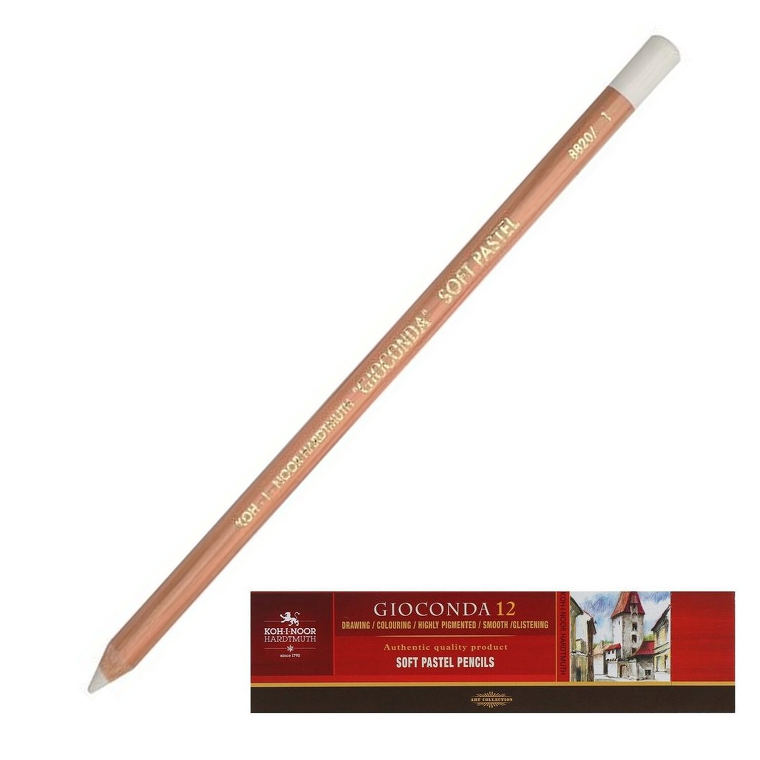 Карандаш пастельный художественный KOH-I-NOOR "Gioconda", 1 шт., титановый белый Код товара: 182180 139,63 ₽ Купить Производитель:KOH-I-NOOR Профессиональная пастель KOH-I-NOOR GIOCONDA в форме карандаша: деревянное основание позволяет сохранять руки в чистоте в процессе работы. С помощью пастельного карандаша проще прорисовывать мелкие детали, линии и узоры. Высококачественные пигменты обеспечивают высокую светостойкость, укрывистость и смешиваемость на различных типах бумаги. Отлично смешивается с классической пастелью. Для наилучшего результата рекомендуется использовать бумагу для пастели или другую плотную бумагу с шероховатой поверхностью.Производство: ЧехияКоличество цветов в наборе: 1 шт.Серия: GiocondaТвердость: мягкаяФорма корпуса: круглаяОсобенности: легко затачиваются, пастельныеЦвет: белыйДиаметр корпуса: 7.5 ммДиаметр грифеля: 4.2 ммДлина корпуса: 175 смУпаковка: картонная коробкаВес: 6 грРазмер упаковки: 0.7 × 17.7 × 0.7 смПромежуточная упаковка: 12 штТранспортная упаковка: 12 штШтрих-код: 8593539111481 Файлы Сертификат-1.jpg Сертификат-2.jpg Сертификат-3.jpg