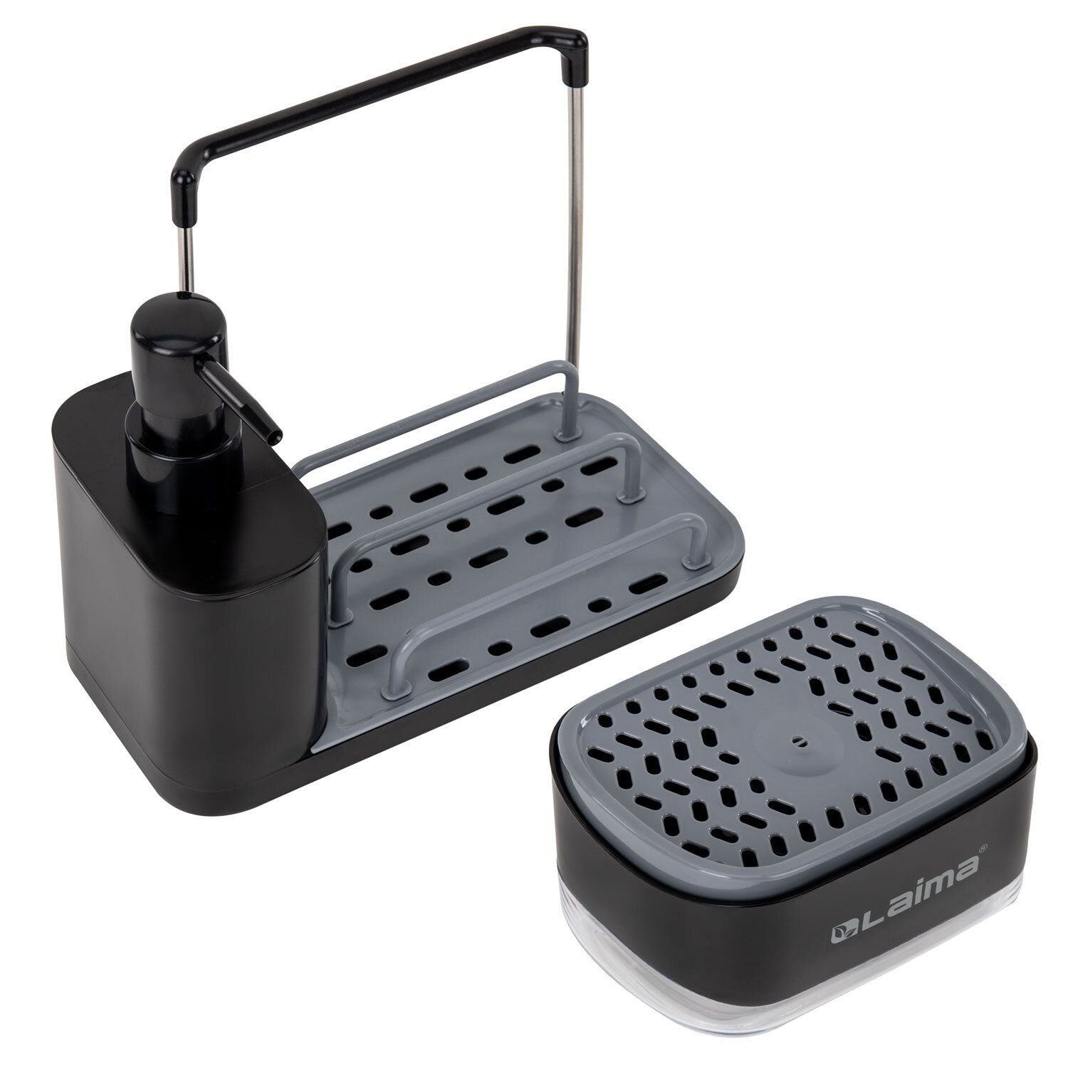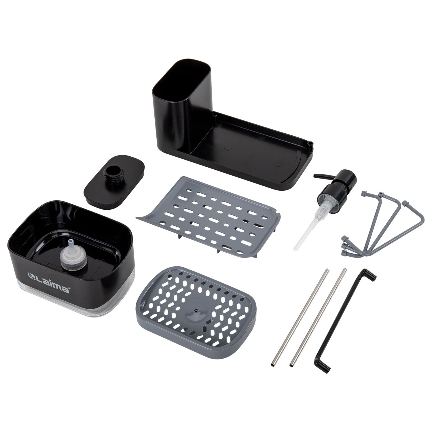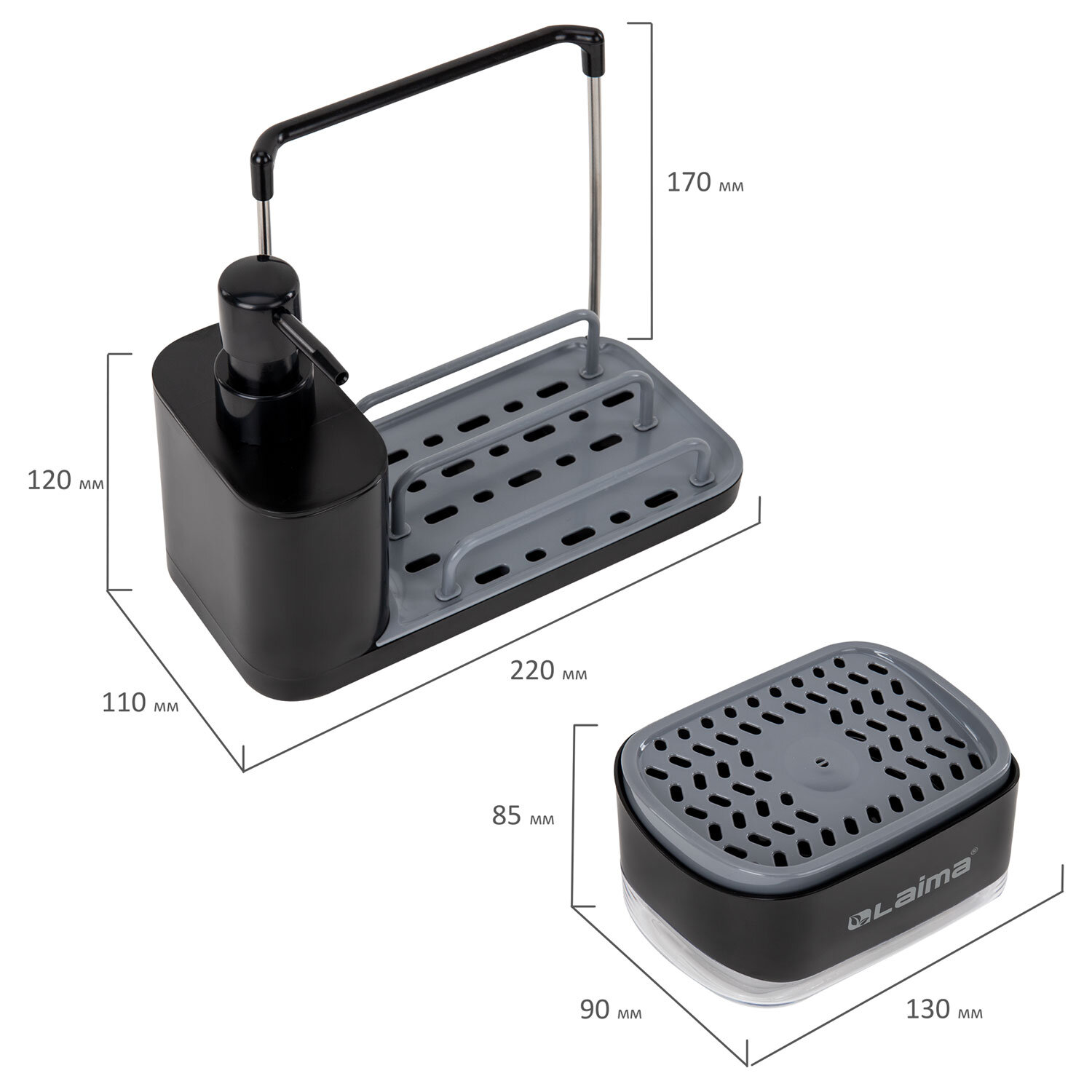 Диспенсер/дозатор DUET+ для мыла и моющего средства + губка, с держателем для тряпки, ЧЕРНЫЙ, 11х22х12 см, LAIMA HOME Код товара: 700046 554,87 ₽ Купить Производитель:LAIMA Диспенсер для жидкого мыла и моющего средства LAIMA HOME – идеальное решение для вашей кухни или ванной комнаты. Устройство оснащено держателями для тряпки и губок. Теперь поддерживать чистоту стало проще, чем когда-либо. Экономичный расход, удобство использования и современный дизайн делают диспенсер для жидкого мыла и моющего средства LAIMA HOME незаменимым помощником в повседневной жизни. Диспенсер выполнен в виде двух емкостей для моющих средств из прочного пластика с помпами из полипропилена и полистирола, резиновые вставки на основании предотвращают скольжение. Также диспенсер оснащен держателями для тряпки и губок из нержавеющей стали. Моющее средство подается при нажатии на лоток для губки. В комплекте с диспенсером идет полиуретановая губка. • Основные характеристики: - размеры: 22х11х12 см; - вместимость контейнера для моющего средства: 350 мл; - вместимость контейнера для жидкого мыла: 370 мл; - цвет: черный. • Основные преимущества: - губка в комплекте; - идеально подходит для тех, кто ценит порядок, чистоту и комфорт; - универсален в применении – можно использовать на кухне и в ванной; - экономит расход моющего средства.Производство: КитайОбъем: 0.72 лТип диспенсера: помповыйСерия: DUETНазначение: моющее средствоУправление: механическоеКомплектующие: губкаМатериал корпуса: ударопрочный полистиролЦвет: черный/серыйШирина: 220 ммВысота: 120 ммГлубина: 110 ммВес: 499 грРазмер упаковки: 10.9 × 22.5 × 13.3 смОбъём: 0.0038 м3Промежуточная упаковка: 30 штТранспортная упаковка: 30 штШтрих-код: 4606224464855 Сертификат-1.jpg Сертификат-2.jpg Сертификат-3.jpg