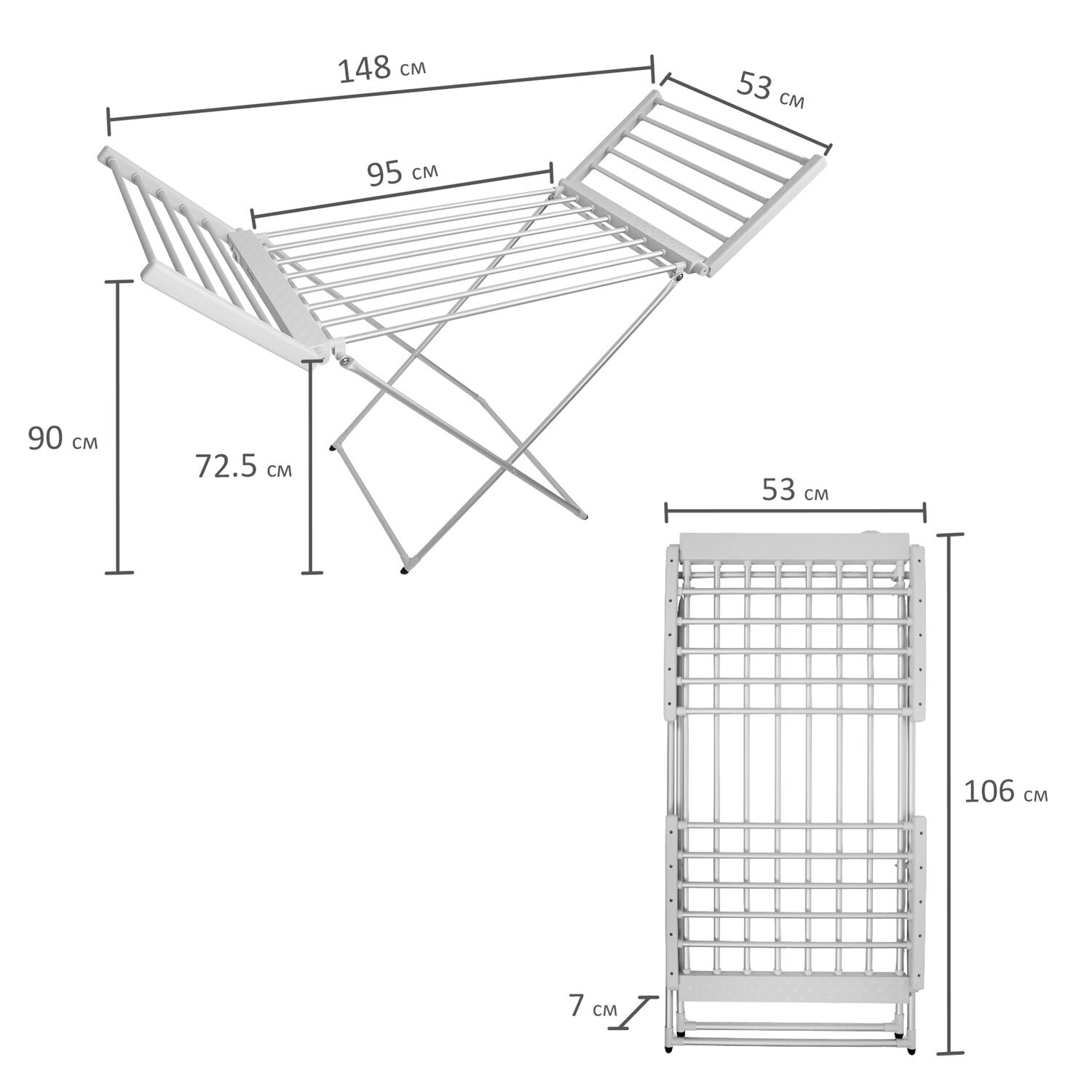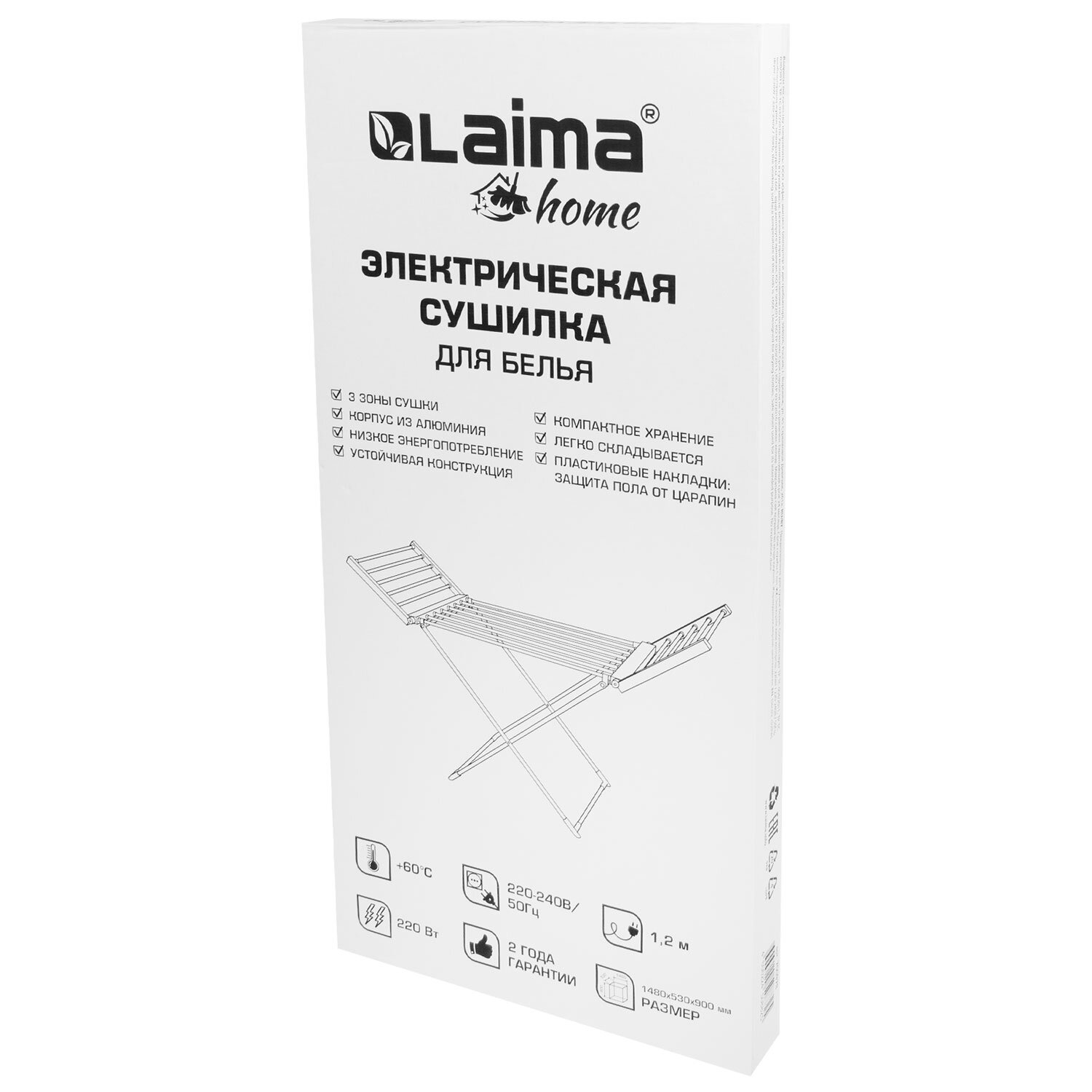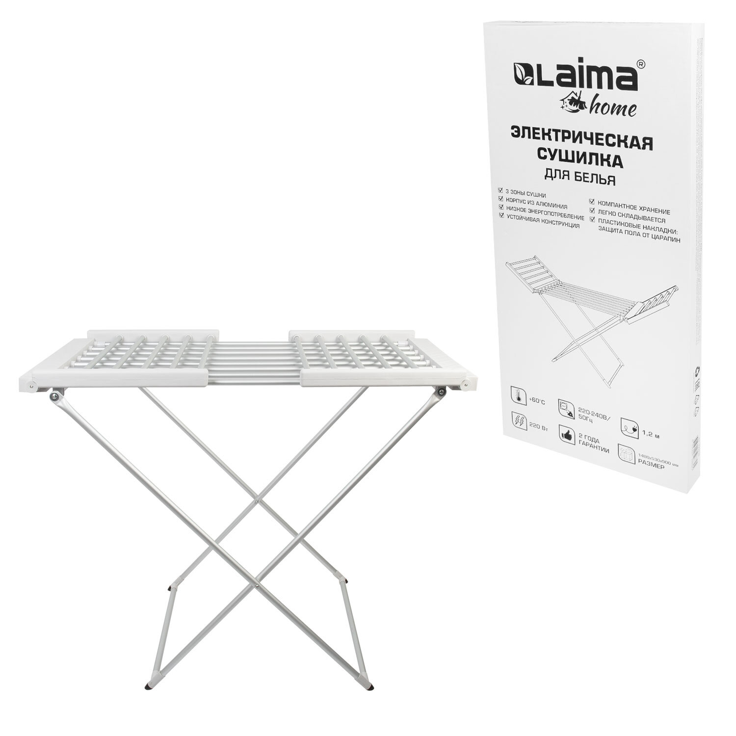 Сушилка для белья напольная, электрическая, раскладная, алюминиевая, три зоны сушки, нагрев 60 °С, LAIMA HOME Код товара: 700978 4 723,6 ₽ Купить Производитель:LAIMA Напольная электрическая сушилка для белья LAIMA HOME – ваш идеальный помощник в уходе за одеждой. Забудьте о долгом ожидании, пока ваши вещи высохнут на воздухе! Раскладная электрическая напольная сушилка для белья LAIMA HOME с нагревом 60 °C станет незаменимым атрибутом в вашем доме, обеспечивая быструю, эффективную и бережную сушку одежды в любое время года. Раскладная конструкция позволяет легко хранить сушилку, когда она не используется, а также быстро разложить ее в нужный момент. Три зоны для сушки позволяют одновременно сушить большое количество белья, включая крупные вещи, такие как простыни, пододеяльники и полотенца. Резиновые вставки на ножках обеспечивают устойчивость сушилки и предотвращают скольжение. • Технические характеристики: - Мощность – 220 Вт; - Напряжение – 220–240 В; - Частота – 50 Гц; - Вес сушилки – 2,4 кг; - Максимальная нагрузка – 10 кг; - Длина сетевого шнура – 120 см.Производство: КитайТип товара: сушилка для белья электрическаяМаксимальная нагрузка: 10 кгПолезная длина сушки: 11.5 мШирина: 148 смВысота: 90 смГлубина: 53 смОсобенности: легко складывается, удобно транспортировать, удобно хранитьСерия: HomeМатериал: алюминийВес: 3,44 кгРазмер упаковки: 7 × 109 × 53.5 смОбъём: 0.047 м3Промежуточная упаковка: 5 штТранспортная упаковка: 5 штШтрих-код: 4606224508825 Файлы Сертификат-1.jpg Сертификат-2.jpg Сертификат-3.jpg Сертификат-4.jpg Сертификат-5.jpg Сертификат-6.jpg Сертификат-7.jpg