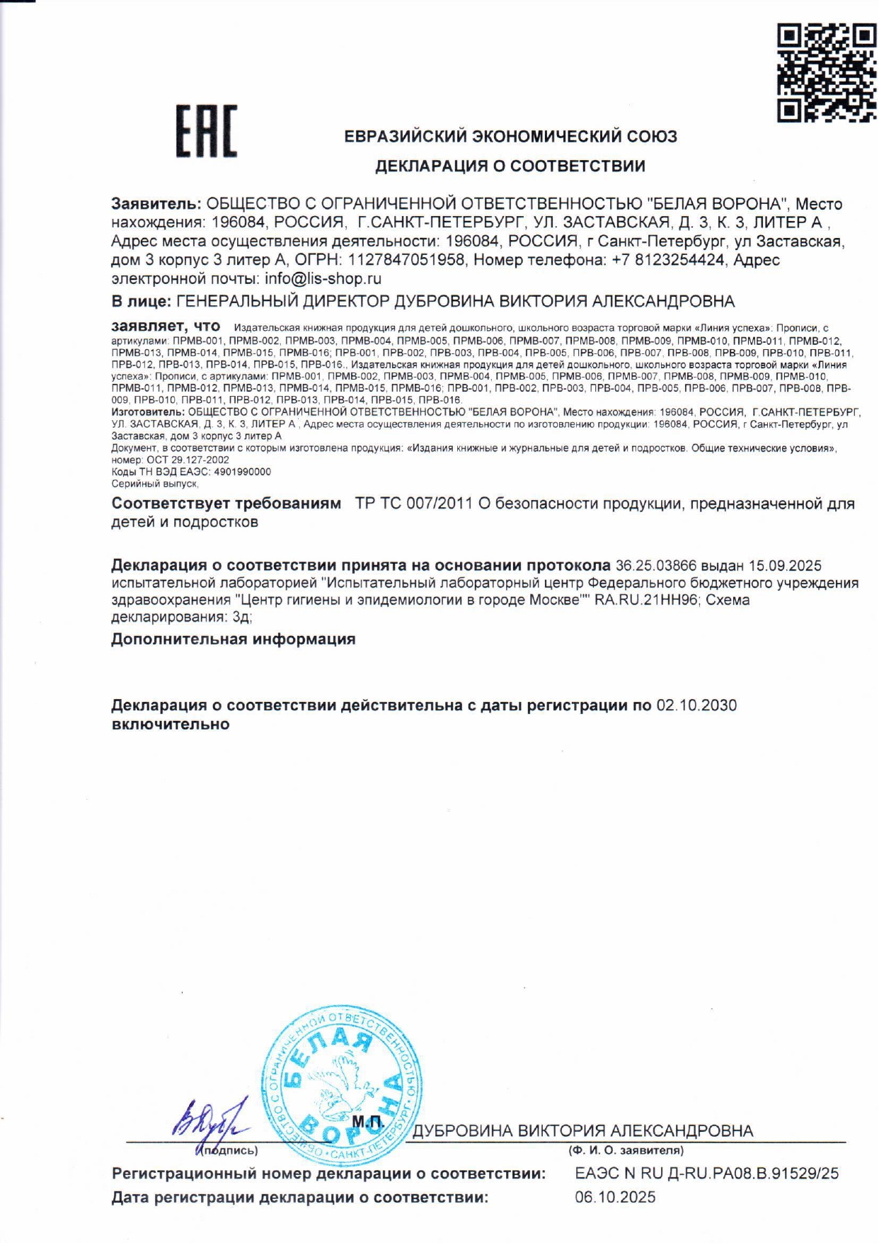 Прописи детские по ФГОС, А5, 16 страниц, 14х20 см, АССОРТИ, ЛиС Код товара: 691189 29,88 ₽ Купить Производитель:Линия успеха Познакомьте ребенка с миром букв и цифр через игру – прописи превратят обучение в веселое приключение для маленьких пальчиков! Яркие страницы увлекут ребёнка и помогут развить мелкую моторику, подготавливая руку к письму. Крупные четкие символы и постепенно усложняющиеся задания создают эффект игры, где каждая новая страница – это достижение, а каждая правильно выведенная линия – маленькая победа. Специально разработанные упражнения тренируют не только мелкую моторику, но и внимание, помогая легко запоминать очертания букв и цифр.Производство: РоссияИздательство: Белая ВоронаАвтор: -Серия: ПрописиТематика: ассортиГод издания: -Формат: А5Количество страниц: 16Тип обложки: скрепкаЯзык издания: русскийВозрастное ограничение: 3+Вес: 26 грРазмер упаковки: 0.1 × 20.2 × 14.3 смОбъём: 0.0001 м3Промежуточная упаковка: 48 штТранспортная упаковка: 96 штШтрих-код: 9785001646150 Сертификат-1.jpg Сертификат-2.jpg Сертификат-3.jpg