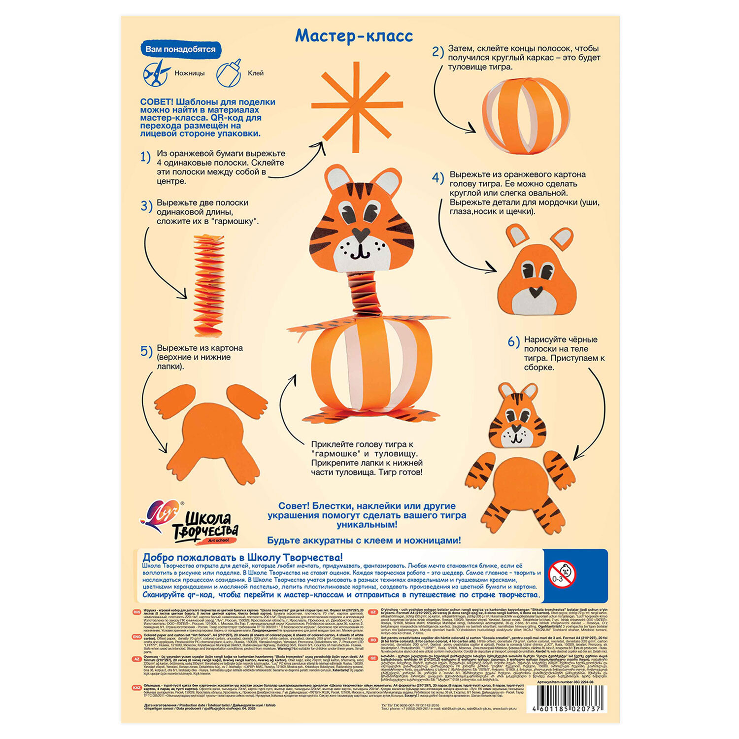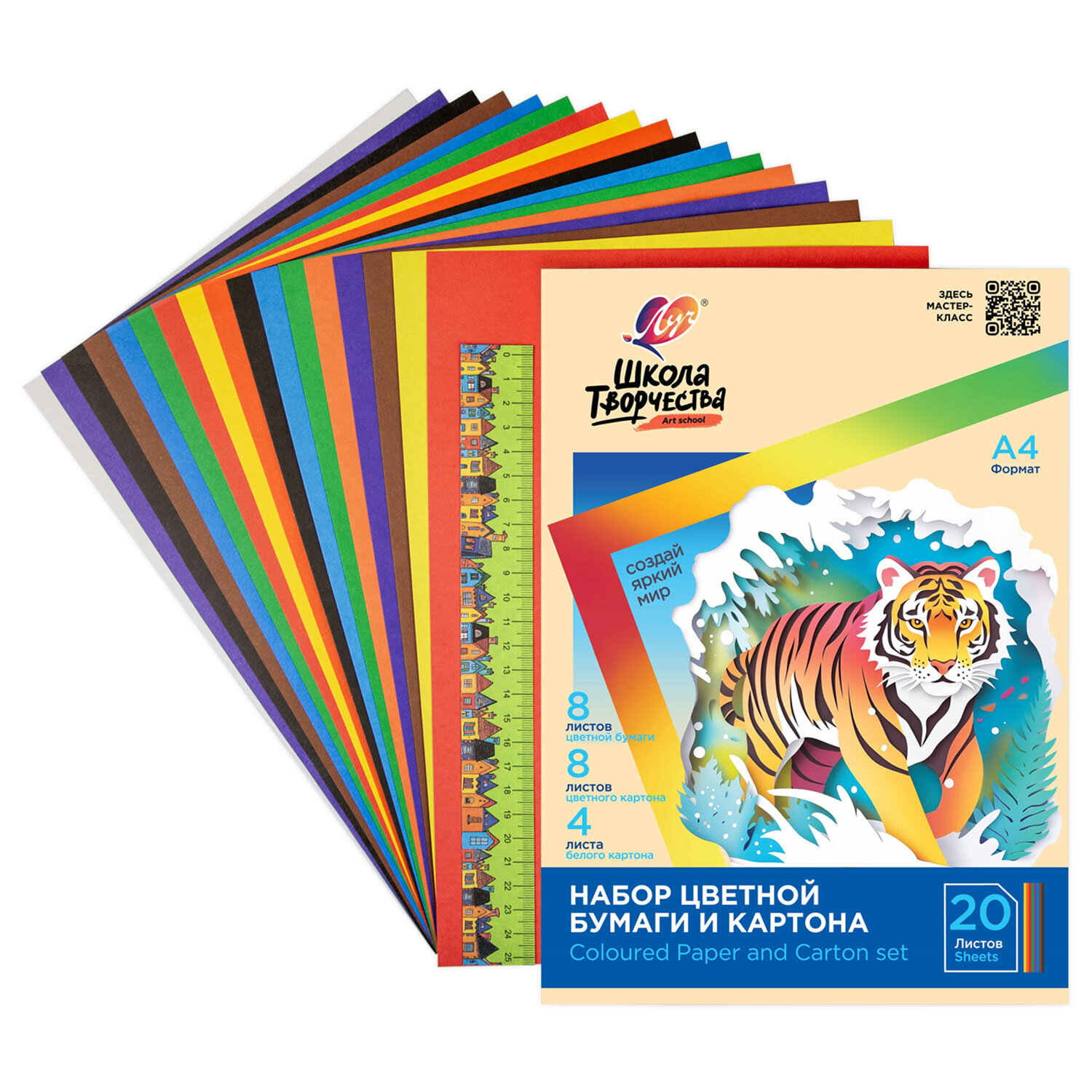 Набор картона и бумаги А4 немелованный (белый4л,цветной8л,офсет8л),Луч"Школа творчества" Код товара: 118761 190 ₽ Купить Производитель:ЛУЧ Набор цветной бумаги и картона Луч «Школа творчества» для создания аппликаций, декоративных бумажных украшений, коллажей, объемных поделок. Набор универсален, т.к. содержит в себе три материала: цветную бумагу, цветной и белый картон. Набор цветной бумаги и картона Луч «Школа творчества» для создания аппликаций, декоративных бумажных украшений, коллажей, объемных поделок. Набор универсален, т.к. содержит в себе три материала: цветную бумагу, цветной и белый картон. Большой выбор материалов предоставляет широкое поле для творческих решений. Процесс создания поделок способствует развитию творческих способностей, фантазии, пространственного мышления и развивает мелкую моторику.Производство: РоссияФормат: А4Количество листов бумаги: 8Количество листов картона: 12Плотность бумаги: 70 г/м2Количество цветов бумаги: 8Количество цветов картона: 9Тип товара: набор цветной бумаги и картонаВнутренний блок: немелованный картон, офсетная бумагаПлотность картона: 200 г/м2Тип крепления: в папкеДлина: 210 ммШирина: 297 ммУпаковка: папкаВес: 231 грРазмер упаковки: 0.7 × 30.1 × 21.1 смОбъём: 0.0004 м3Промежуточная упаковка: 30 штТранспортная упаковка: 30 штШтрих-код: 4601185020737