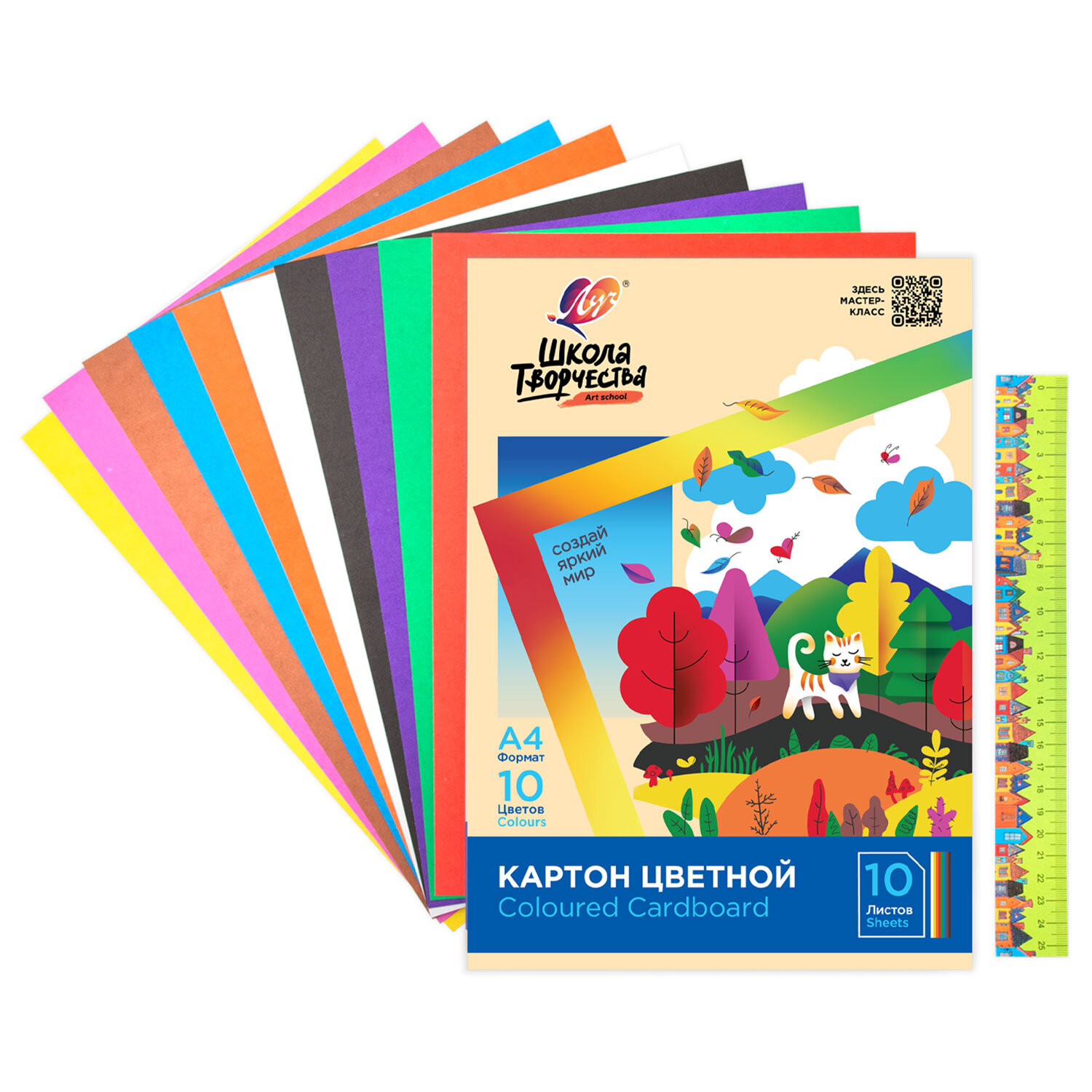 Картон цветной А4 немелованный, 10 л. 10 цв., в папке, ЛУЧ "Школа творчества", 210х297мм Код товара: 118767 133 ₽ Купить Производитель:ЛУЧ Набор цветного картона Луч "Школа творчества" предназначен для детского творчества, моделирования. Может использоваться в дошкольных и школьных учреждениях на уроках труда и технологии. Набор цветного картона "Школа творчества" предназначен для детского творчества, моделирования. В наборе 10 листов цветного немелованного картона. Может использоваться в дошкольных и школьных учреждениях на уроках труда и технологии.Производство: РоссияФормат: А4Количество листов: 10Количество цветов: 10Тип картона: немелованныйПлотность картона: 220 г/м2Тип товара: картон цветной немелованныйДлина: 210 ммШирина: 297 ммУпаковка: папкаВес: 176 грРазмер упаковки: 0.4 × 30.2 × 21.3 смОбъём: 0.0003 м3Промежуточная упаковка: 45 штТранспортная упаковка: 45 штШтрих-код: 4601185015610