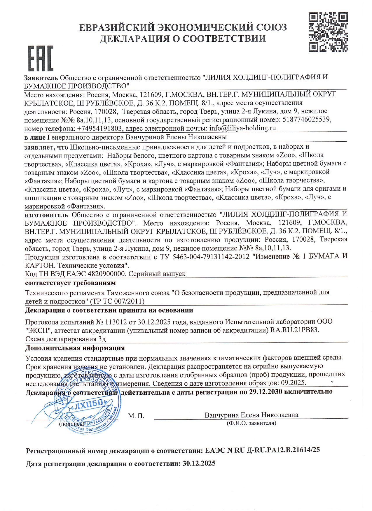 Картон цветной А4 немелованный, 16 л., 8 цветов, в папке, ЛУЧ "Школа творчества", 210х297 мм Код товара: 118768 166 ₽ Купить Производитель:ЛУЧ Набор цветного картона ЛУЧ "Школа творчества" предназначен для детского творчества, моделирования. В наборе 16 листов цветного немелованного картона. Рекомендован для использования в дошкольных и школьных учреждениях на уроках труда и технологии.Производство: РоссияФормат: А4Количество листов: 16Количество цветов: 8Тип картона: немелованныйПлотность картона: 220 г/м2Тип товара: картон цветнойДлина: 210 ммШирина: 297 ммУпаковка: папкаВес: 261 грРазмер упаковки: 0.7 × 30.3 × 21.3 смОбъём: 0.0005 м3Промежуточная упаковка: 30 штТранспортная упаковка: 30 штШтрих-код: 4601185015603 Файлы Сертификат-1.jpg Сертификат-2.jpg Сертификат-3.jpg