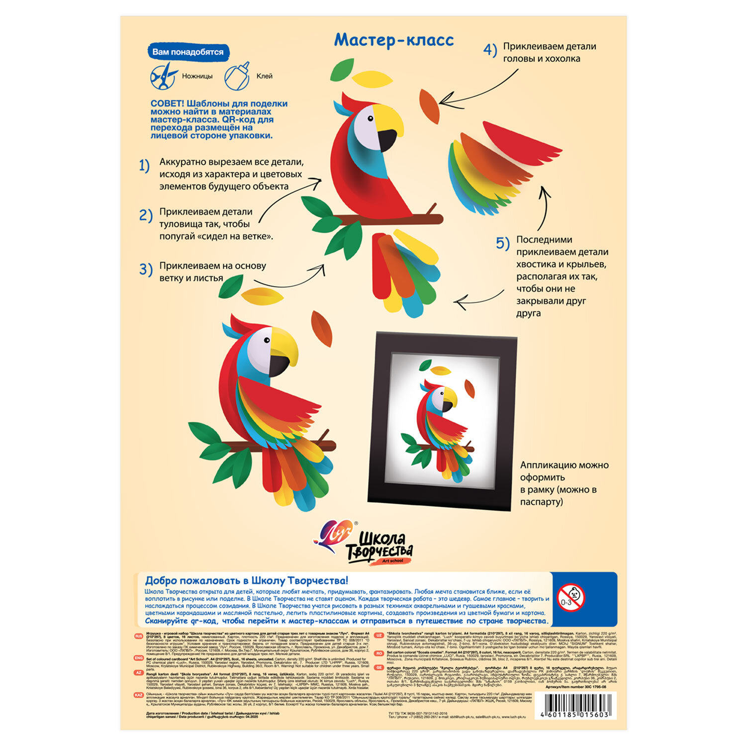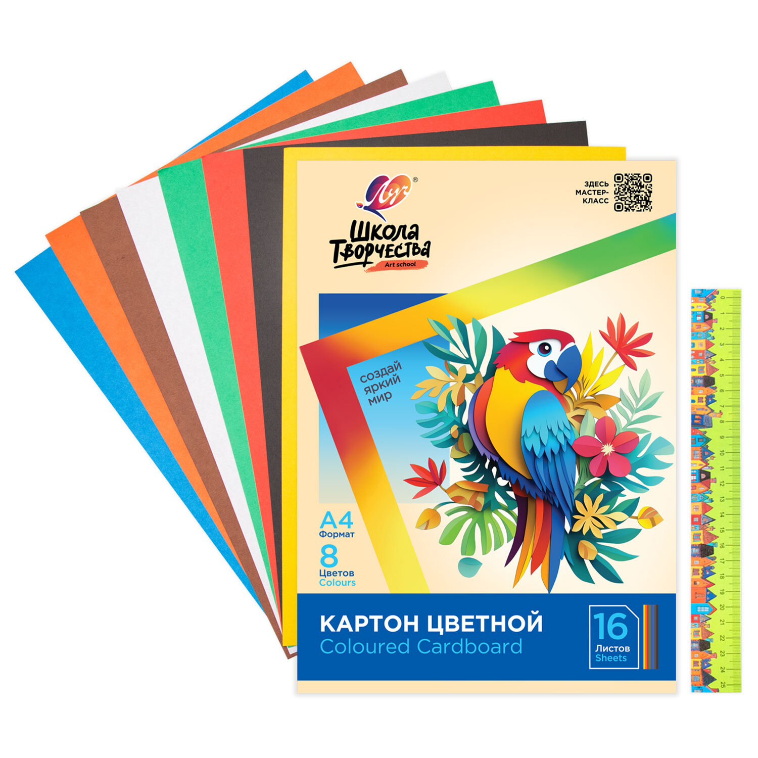 Картон цветной А4 немелованный, 16 л. 8 цв., в папке, ЛУЧ "Школа творчества", 210х297мм Код товара: 118768 166 ₽ Купить Производитель:ЛУЧ Набор цветного картона Луч "Школа творчества" предназначен для детского творчества, моделирования. Может использоваться в дошкольных и школьных учреждениях на уроках труда и технологии. Набор цветного картона "Школа творчества" предназначен для детского творчества, моделирования. В наборе 16 листов цветного немелованного картона. Может использоваться в дошкольных и школьных учреждениях на уроках труда и технологии.Производство: РоссияФормат: А4Количество листов: 16Количество цветов: 8Тип картона: немелованныйПлотность картона: 220 г/м2Тип товара: картон цветной немелованныйДлина: 210 ммШирина: 297 ммУпаковка: папкаВес: 250 грРазмер упаковки: 0.5 × 21.2 × 30.1 смОбъём: 0.0004 м3Промежуточная упаковка: 30 штТранспортная упаковка: 30 штШтрих-код: 4601185015603