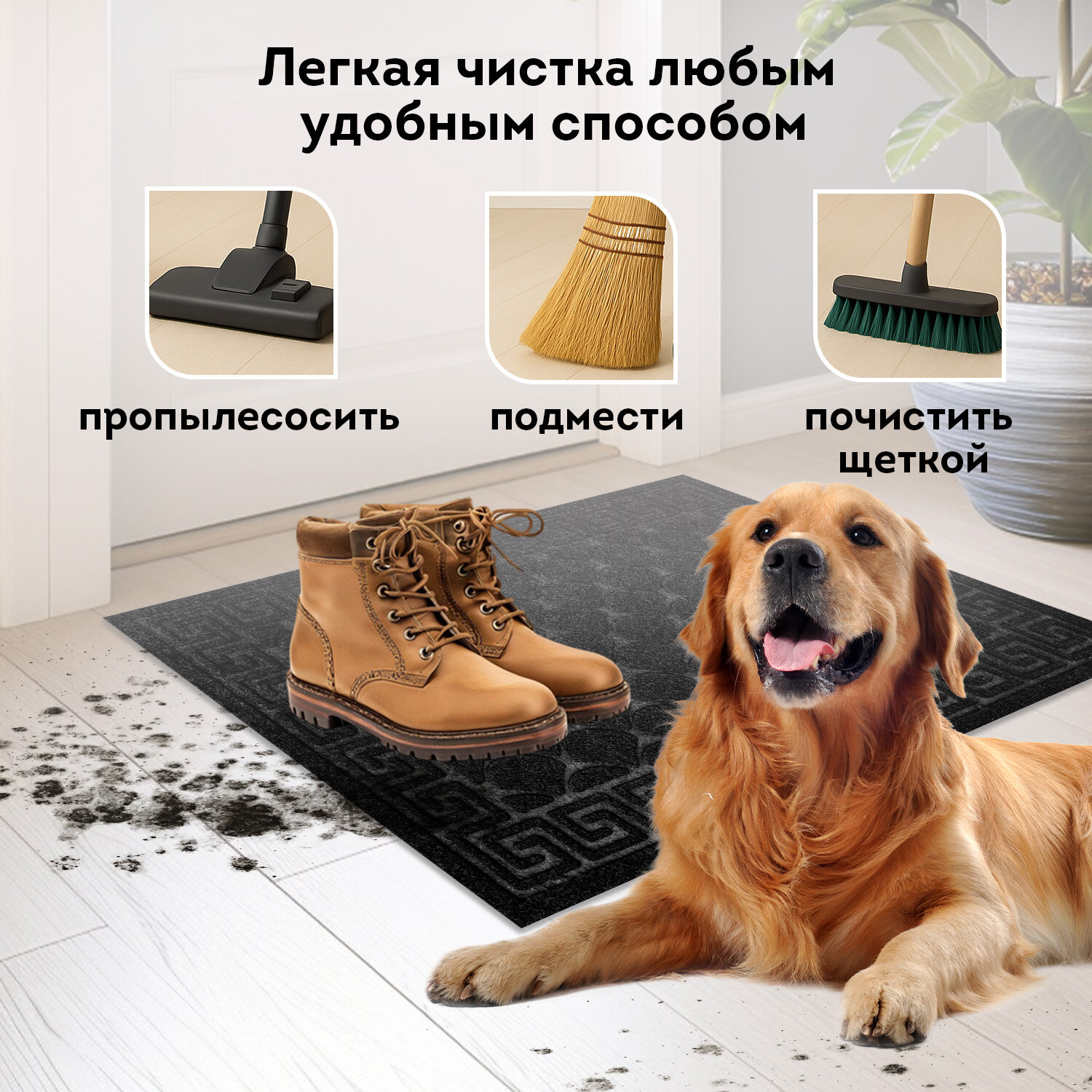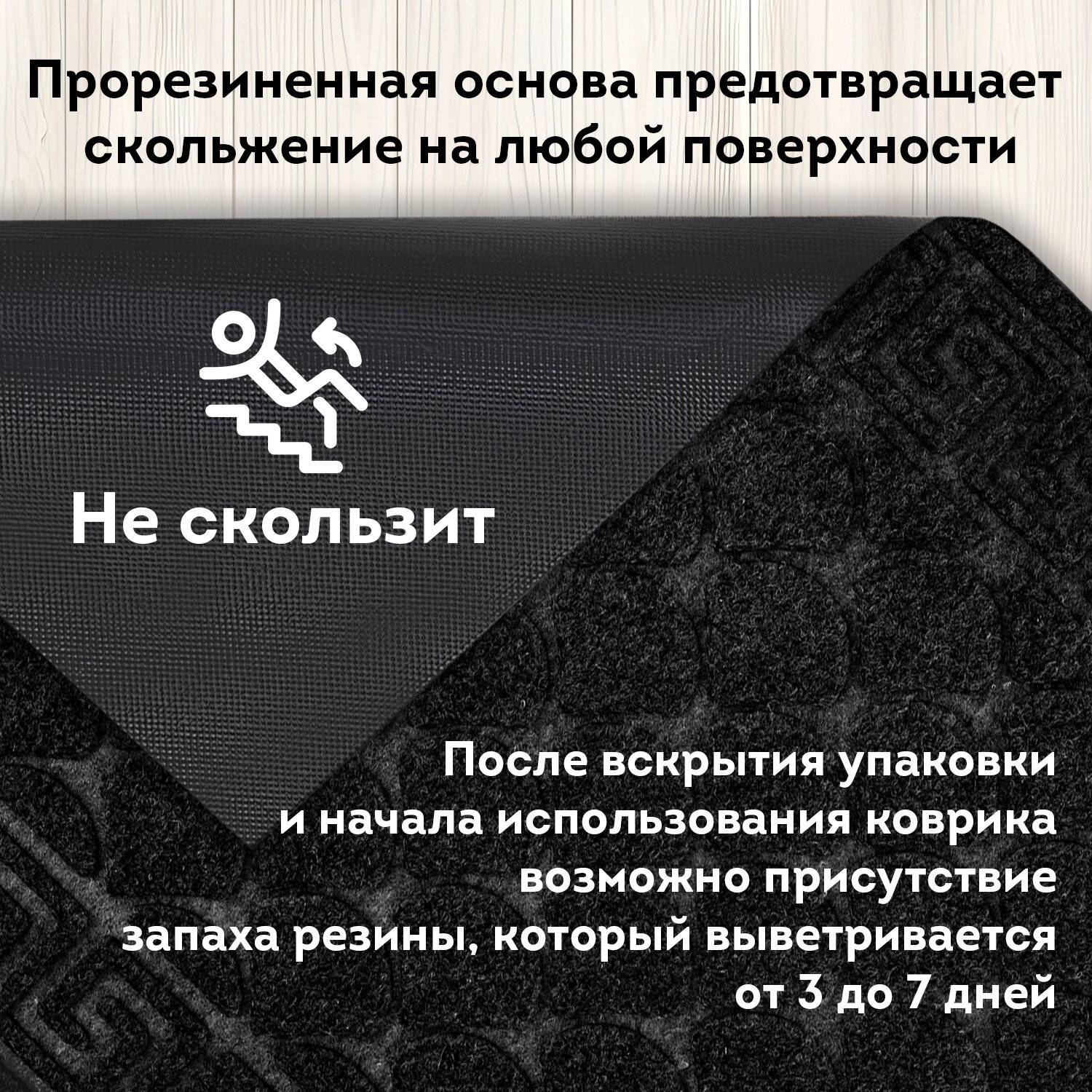 Коврик придверный 40х60 см, ЧЕРНЫЙ, грязезащитный, 430 г/м2, фактурный рисунок ЧЕШУЙКИ, ЛЮБАША Код товара: 701057 315,69 ₽ Купить Производитель:ЛЮБАША Коврик влаго-грязезащитный ЛЮБАША – практичное и эффективное решение для защиты помещения от грязи и влаги. Предназначен для использования внутри и вне помещений. Коврик влаго-грязезащитный ЛЮБАША – практичное и эффективное решение для защиты помещения от грязи и влаги. Ворс коврика изготовлен из полиэстера, который отлично впитывает влагу и задерживает мелкие частицы грязи с подошв обуви. Коврик имеет прямоугольную форму. ПВХ-основа предотвращает скольжение и обеспечивает устойчивость на полу. Основные преимущества влаговпитывающего коврика: Надежная грязезащита и влаговпитывание, что снижает количество уборок в помещении; Износостойкость и устойчивость к деформациям и перепадам температуры; Простота ухода – коврик можно пылесосить; Безопасность за счет нескользящей основы, особенно актуально в осенне-зимний период. Основные характеристики: Размер – 40х60 см. Толщина – 7 мм. Ворс изготовлен из полиэстера. Коврик выполнен в черном цвете. Фактурный рисунок – чешуйки. Во избежание скольжения рекомендуется укладывать коврик на чистую увлажненную поверхность (пыль и песок повышают вероятность скольжения ковра). Рекомендации, которые на 100% исключат скольжение ковра на любых напольных покрытиях: 1. Применить противоскользящую ленту. Её наклеивают по периметру коврика с обратной (изнаночной) стороны. 2. Использовать силиконовые наклейки. Они крепятся с изнаночной стороны в углы коврика (обычно нужно 4 наклейки на один коврик). 3. Применить резиновый клей. Им промазывают всю поверхность коврика, при этом и коврик, и кафель в момент приклеивания должны быть сухими и чистыми. Или использовать любой двусторонний скотч. 4. Использовать фиксаторы для ковров. Это специально разработанные подушечки, которые можно поместить под углы коврика. Обычно они состоят из двух частей – липкой, которая приклеивается к подложке коврика, и рельефной, которая прижимается к полу. 5. Использовать липучки для ковров. Одну сторону липучки прикрепляют к изнанке ковра, а другую – к полу. При сжатии застёжки-липучки создают прочное соединение, препятствующее скольжению.Производство: РоссияНазначение: влаго-грязезащитныйДлина: 60 смШирина: 40 смТолщина: 7 ммМатериал: ПВХ, полиэстерМатериал ворса: 100% полиэстерМетод производства: вулканизацияДизайн: чешуйкиАнтискользящее основание: даВорсовое покрытие с ребристой текстурой: даЦвет: черныйВес: 446 грРазмер упаковки: 0.5 × 60.1 × 40.3 смОбъём: 0.0015 м3Промежуточная упаковка: 15 штТранспортная упаковка: 15 штШтрих-код: 4606224505954 Сертификат-1.jpg Сертификат-2.jpg Сертификат-3.jpg