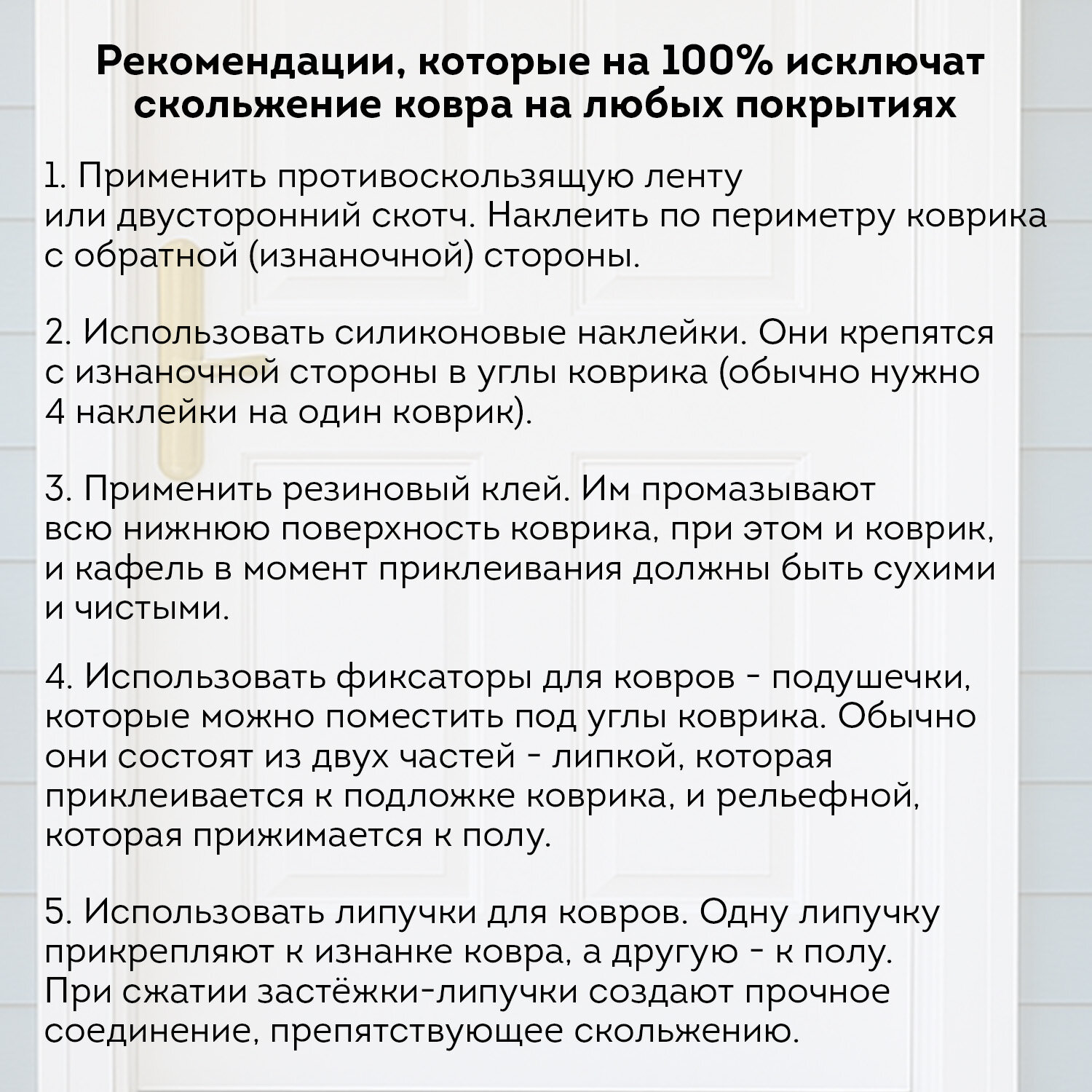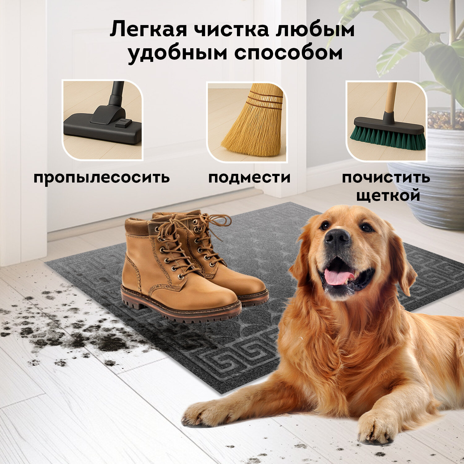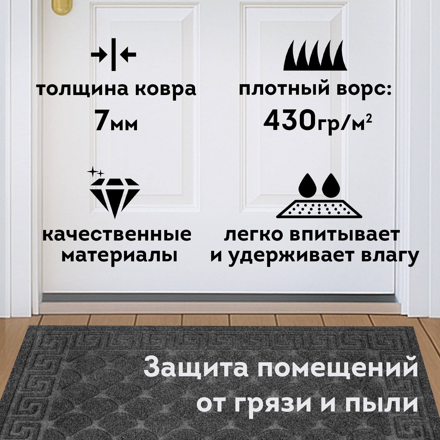 Коврик придверный 40х60 см, СЕРЫЙ, грязезащитный, 430 г/м2, фактурный рисунок ЧЕШУЙКИ, ЛЮБАША Код товара: 701058 315,69 ₽ Купить Производитель:ЛЮБАША Коврик влаго-грязезащитный ЛЮБАША – практичное и эффективное решение для защиты помещения от грязи и влаги. Предназначен для использования внутри и вне помещений. Коврик влаго-грязезащитный ЛЮБАША – практичное и эффективное решение для защиты помещения от грязи и влаги. Ворс коврика изготовлен из полиэстера, который отлично впитывает влагу и задерживает мелкие частицы грязи с подошв обуви. Коврик имеет прямоугольную форму. ПВХ-основа предотвращает скольжение и обеспечивает устойчивость на полу. Основные преимущества влаговпитывающего коврика: Надежная грязезащита и влаговпитывание, что снижает количество уборок в помещении; Износостойкость и устойчивость к деформациям и перепадам температуры; Простота ухода – коврик можно пылесосить; Безопасность за счет нескользящей основы, особенно актуально в осенне-зимний период. Основные характеристики: Размер – 40х60 см. Толщина – 7 мм. Ворс изготовлен из полиэстера. Коврик выполнен в сером цвете. Фактурный рисунок – чешуйки. Во избежание скольжения рекомендуется укладывать коврик на чистую увлажненную поверхность (пыль и песок повышают вероятность скольжения ковра). Рекомендации, которые на 100% исключат скольжение ковра на любых напольных покрытиях: 1. Применить противоскользящую ленту. Её наклеивают по периметру коврика с обратной (изнаночной) стороны. 2. Использовать силиконовые наклейки. Они крепятся с изнаночной стороны в углы коврика (обычно нужно 4 наклейки на один коврик). 3. Применить резиновый клей. Им промазывают всю поверхность коврика, при этом и коврик, и кафель в момент приклеивания должны быть сухими и чистыми. Или использовать любой двусторонний скотч. 4. Использовать фиксаторы для ковров. Это специально разработанные подушечки, которые можно поместить под углы коврика. Обычно они состоят из двух частей – липкой, которая приклеивается к подложке коврика, и рельефной, которая прижимается к полу. 5. Использовать липучки для ковров. Одну сторону липучки прикрепляют к изнанке ковра, а другую – к полу. При сжатии застёжки-липучки создают прочное соединение, препятствующее скольжению.Производство: РоссияНазначение: влаго-грязезащитныйДлина: 60 смШирина: 40 смТолщина: 7 ммМатериал: ПВХ, полиэстерМатериал ворса: 100% полиэстерМетод производства: вулканизацияДизайн: чешуйкиАнтискользящее основание: даВорсовое покрытие с ребристой текстурой: даЦвет: серыйВес: 474 грРазмер упаковки: 0.5 × 60.2 × 40.4 смОбъём: 0.0015 м3Промежуточная упаковка: 15 штТранспортная упаковка: 15 штШтрих-код: 4606224505961 Сертификат-1.jpg Сертификат-2.jpg Сертификат-3.jpg