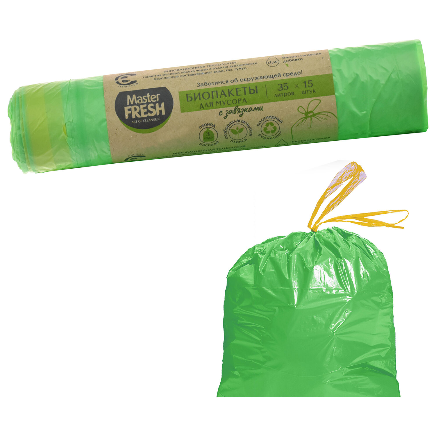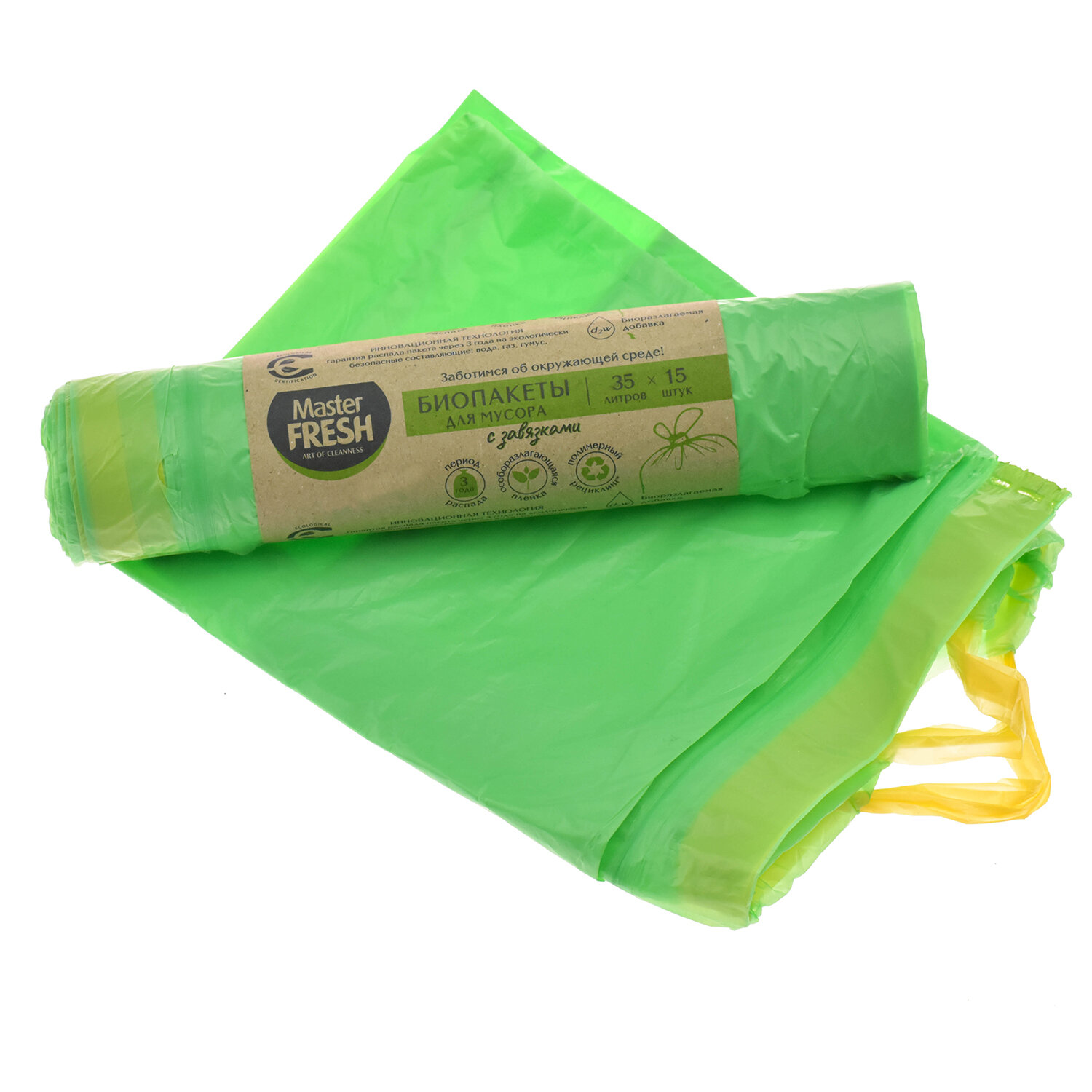Мешки для мусора 35л с завязками, биоразлагаемые салатовые, 14 мкм, 15шт, Master FRES Код товара: 703058 143,03 ₽ Купить Производитель:Master FRESH Производство: РоссияОбъем: 35 лЦвет: салатовыйПрочность: 14Количество в комплекте: 15 шт.Толщина полиэтилена: 14 мкмБиоразлагаемые: даНаличие ручек/завязок: даТип упаковки: рулонШирина: 20 смДлина: 5 смВес: 134 грРазмер упаковки: 5 × 20 × 5 смОбъём: 0.0004 м3Промежуточная упаковка: 25 штТранспортная упаковка: 25 штШтрих-код: 4620739976153 Файлы