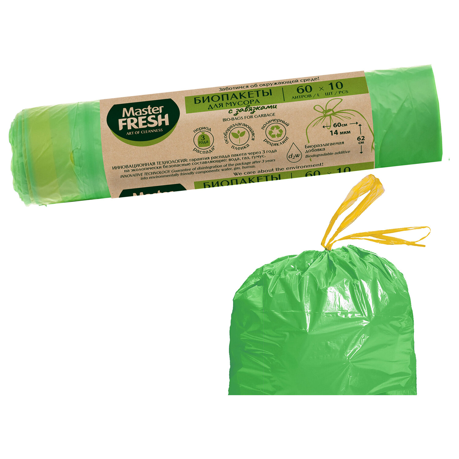 Мешки для мусора 60л с завязками, биоразлагаемые салатовые, 14 мкм, 10шт, Master FRES Код товара: 703059 127,87 ₽ Купить Производитель:Master FRESH Производство: РоссияОбъем: 60 лЦвет: салатовыйПрочность: 14Количество в комплекте: 10 шт.Толщина полиэтилена: 14 мкмБиоразлагаемые: даНаличие ручек/завязок: даШирина: 62 смДлина: 60 смВес: 124 грРазмер упаковки: 4 × 21 × 4 смОбъём: 0.0005 м3Промежуточная упаковка: 25 штТранспортная упаковка: 25 штШтрих-код: 4620739980204 Файлы