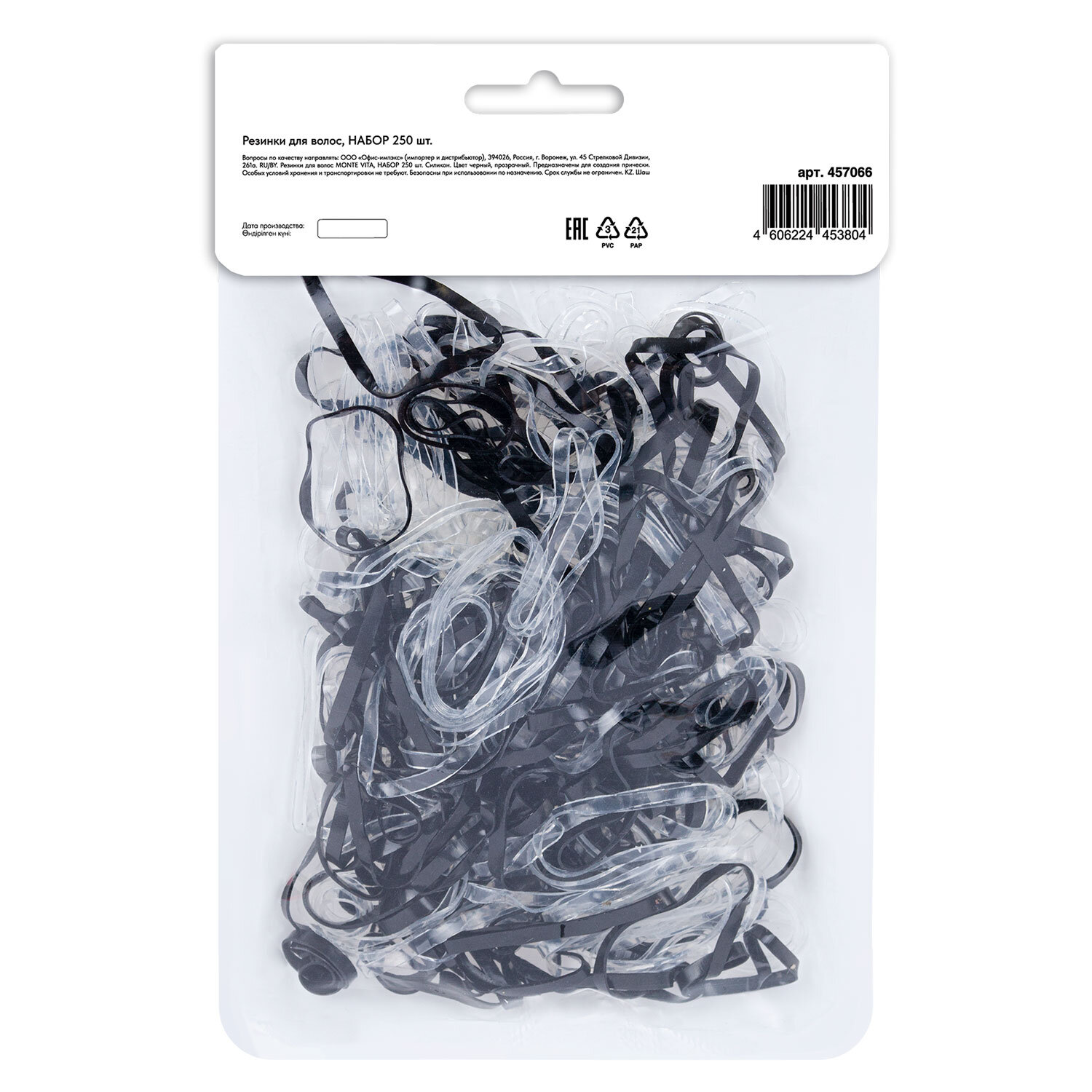 Резинки для волос НАБОР 250 шт., силиконовые, большие, чёрный, прозрачный, MONTE VITA (МОНТЕ ВИТА), 457066 Код товара: 457066 86,8 ₽ Купить Производитель:MONTE VITA Резинки для волос MONTE VITA – идеальное решение для создания прически. Резинки помогают поддерживать волосы в аккуратном состоянии, придают прическе законченный вид. 250 прочных силиконовых резинок в базовых цветах – универсальное решение для дома, салонов и путешествий. Крупный размер (2 см) выдерживает густые волосы. Черные и прозрачные резинки остаются незаметными, сохраняя аккуратность укладки. Резинки обеспечивают надежную фиксацию, удобно снимаются, не цепляют и не рвут волосы.Производство: КитайТип товара: резинка для волосТип резинки: миниЦвет: ассортиДекор: нетНабор: даКоличество в наборе: 250 шт.Размер: 2 смМатериал: силиконСерия: -Упаковка: пакет с картонным европодвесомВес: 20 грРазмер упаковки: 2.3 × 8.8 × 8.5 смОбъём: 0.0001 м3Промежуточная упаковка: 12 штТранспортная упаковка: 240 штШтрих-код: 4606224453804 Файлы Сертификат-1.jpg Сертификат-2.jpg Сертификат-3.jpg Сертификат-4.jpg