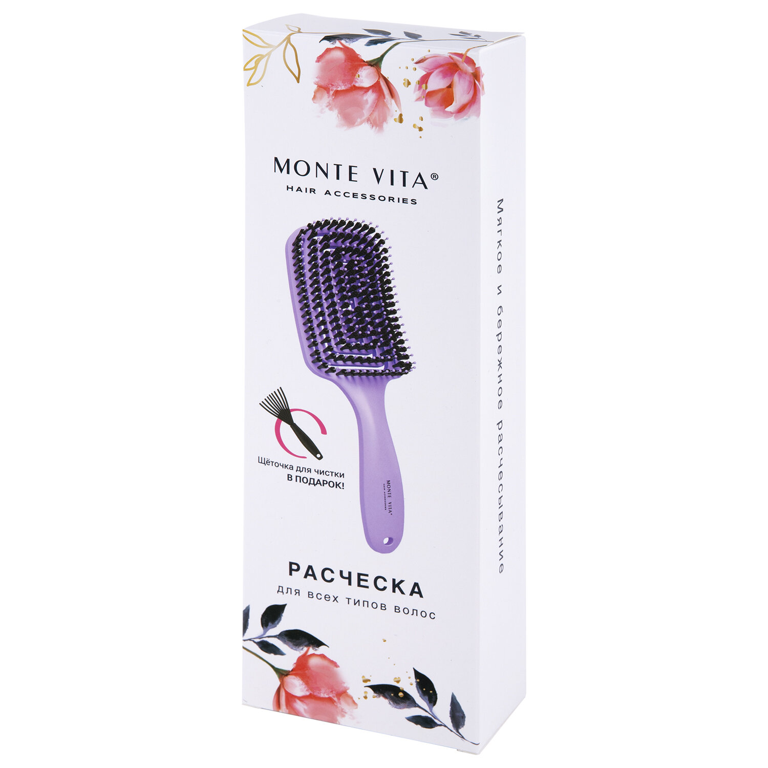 Расческа для волос массажная, 24x7,5 см, с натуральной щетиной + щетка для чистки В ПОДАРОК, MONTE VITA (МОНТЕ ВИТА), 457432 Код товара: 457432 420,54 ₽ Купить Производитель:MONTE VITA Расческа MONTE VITA – это не просто аксессуар, а незаменимый инструмент для ухода за волосами. Применяется для массажа головы, расчесывания волос, создания прически. Эффективный набор для комплексного ухода и здоровья волос. Массажная расческа с натуральной щетиной кабана и инновационным подвижным корпусом. Изогнутая форма идеально адаптируется к изгибам головы, обеспечивая глубокий точечный массаж. Продувная конструкция равномерно распределяет потоки горячего воздуха во время сушки, что предотвращает перегрев и защищает структуру волос. Комбинация жестких натуральных и мягких синтетических щетинок придаёт волосам естественный блеск и защищает их, а также деликатно распутывает и фиксирует укладку. Расческа уменьшает ломкость, снимает статическое электричество и дарит ощущение комфорта при каждом использовании. Щеточка для чистки предназначена для тщательного удаления волос и загрязнений, она позволяет сохранять гигиену и продлевая срок службы расчески. Идеальный выбор для бережного и ежедневного ухода за волосами любого типа. В наборе: • Расческа – 1 шт. • Щеточка – 1 шт.Производство: КитайТип расчески: массажнаяНазначение: массаж, разглаживание, распутывание волосМатериал: ABS-пластик/щетинаЦвет: фиолетовыйНабор: даСостав набора: массажная расческа + щетка для чисткиРазмер: 24х7,5 смСерия: РасческиУпаковка: картонная коробкаВес: 113 грРазмер упаковки: 4.7 × 24.2 × 7.9 смОбъём: 0.0012 м3Промежуточная упаковка: 48 штТранспортная упаковка: 48 штШтрих-код: 4606224470443 Файлы Сертификат-1.jpg Сертификат-2.jpg Сертификат-3.jpg Сертификат-4.jpg
