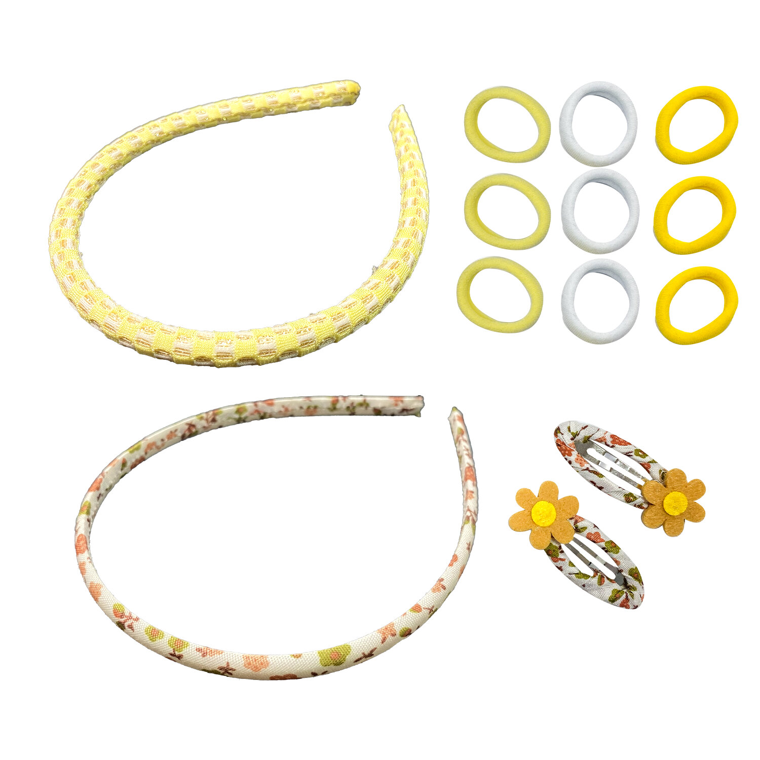 Резинки для волос (9 шт) с ободками (2 шт) и заколками (2 шт), НАБОР, MONTE VITA Код товара: 458856 141,81 ₽ Купить Производитель:MONTE VITA Набор аксессуаров для волос — элегантный набор заколок, резинок, крабов и ободков для безупречного образа. Это больше, чем аксессуары: шанс раскрыть индивидуальность и подчеркнуть стиль для любого повода — от будней до праздников. Набор аксессуаров для волос (резинки 9 шт, заколки 2 шт и ободок 2 шт), выполненный в ярком желтом цвете с цветочным принтом - отличное решение для как для повседневных ношения, так и для особых случаев. Мягкие ободки с цветочным принтом не только обеспечат комфортное ношение на весь день и позволят прическе выглядеть аккуратно и опрятно, но и освежат ваш образ, а резинки и заколки с декором в виде цветка позволят дополнить лук.Производство: КитайТип товара: набор аксессуаров для волосКоличество в наборе: 13 шт.Цвет: разноцветныйМатериал: полиэстер/металл/спандекс/ABS-пластикКомплектация: заколка 2 шт., ободок 2 шт., резинка 9 шт.Декор: цветокУпаковка: картонная карточка в пакете с европодвесомВес: 33 грРазмер упаковки: 1.5 × 13 × 19 смОбъём: 0.0005 м3Промежуточная упаковка: 12 штТранспортная упаковка: 144 штШтрих-код: 4606224541693 Файлы