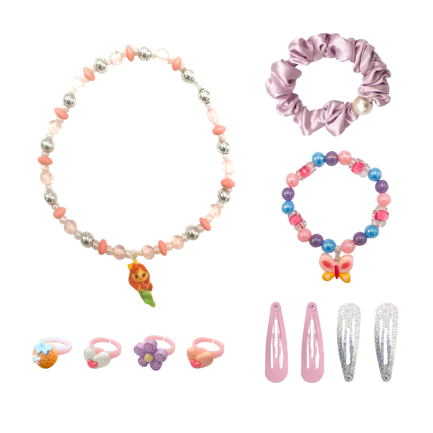 Резинка для волос (скранч) с заколками, ожерельем, колечками и браслетом, НАБОР, MONTE VITA Код товара: 458861 320,54 ₽ Купить Производитель:MONTE VITA Набор аксессуаров для волос — элегантный набор заколок, резинок, крабов и ободков для безупречного образа. Это больше, чем аксессуары: шанс раскрыть индивидуальность и подчеркнуть стиль для любого повода — от будней до праздников. Нежный набор аксессуаров (резинка скранч 1 шт, колечки 4 шт, заколки 4 шт, ожерелье 1 шт, браслет 1 шт) - это идеальный набор для стильных и практичных образов как для повседневного ношения, так и для создания сказочного вечернего образа. Мягкая резинка скранч с декором в виде жемчуга - универсальный аксессуар для создания объемных пучков и свободных хвостов, который не травмирует волосы. Заколки клик-клак позволят надежно зафиксировать непослушные локоны и создавать экспериментировать с прическами каждый день. Браслет, ожерелье и колечки с разным декором служат милым дополнением к образу.Производство: КитайТип товара: набор аксессуаров для волосКоличество в наборе: 11 шт.Цвет: разноцветныйМатериал: ABS-пластик/металл/полиэстерКомплектация: браслет 1 шт., заколка 4 шт., кольцо 4 шт., ожерелье 1 шт., резинка 1 шт.Упаковка: картонная карточка в пакете с европодвесомВес: 171 грРазмер упаковки: 2 × 6.5 × 17 смОбъём: 0.0007 м3Промежуточная упаковка: 6 штТранспортная упаковка: 72 штШтрих-код: 4606224541747 Файлы