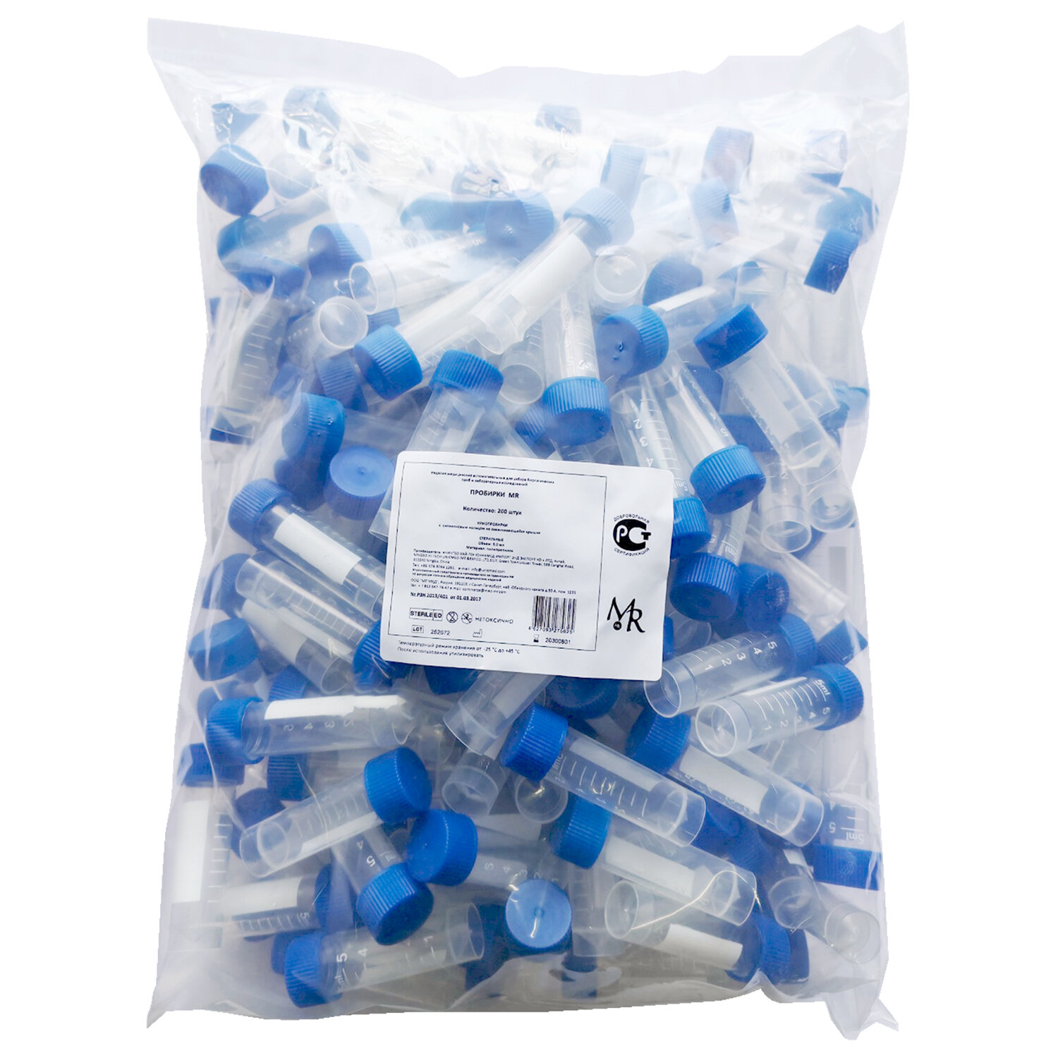 Криопробирка (пробирка лабораторная) 5 мл, стерильная, КОМПЛЕКТ 200 шт., MR MED Код товара: 631564 2 972,14 ₽ Купить Производитель:MR MED Пробирка лабораторная изготовлена из модифицированного полипропилена. На пробирку нанесена градуировка. Имеется окошко для записи. Имеют уплотнительное силиконовое кольцо. Стерилизованы оксидом этилена. Объем: 5 мл.Производство: КитайТип товара: криопробиркаКоличество в комплекте: 200 шт.Объем: 5 млСтерильный: даГрадуировка: даСрок годности: 60 месВес: 761 грРазмер упаковки: 8.4 × 31.1 × 23.5 смОбъём: 0.006 м3Промежуточная упаковка: 10 штТранспортная упаковка: 10 штШтрих-код: 4627093275625 Файлы Сертификат-1.jpg Сертификат-2.jpg Сертификат-3.jpg