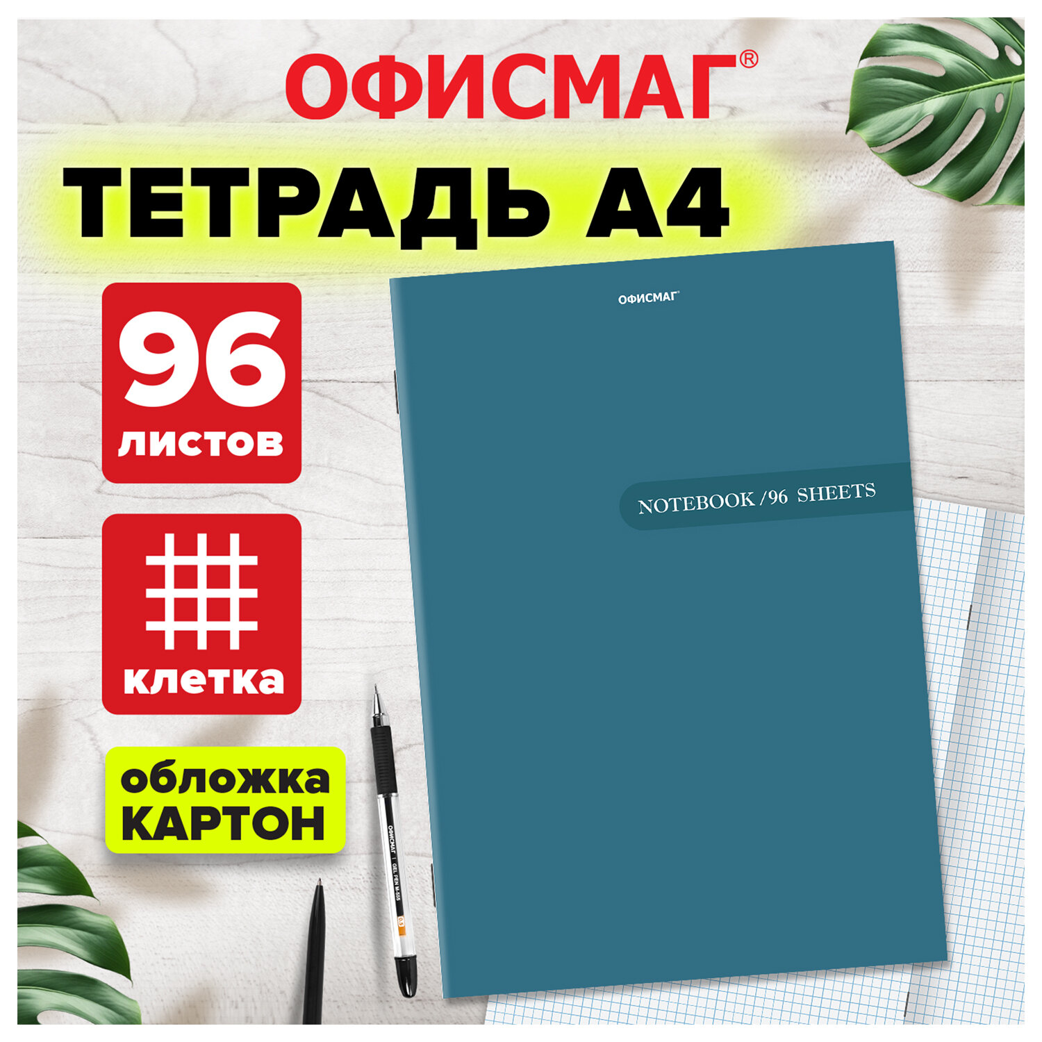 Тетрадь А4, 96 л., ОФИСМАГ скоба, клетка, обложка картон, СИНЯЯ Код товара: 405637 118,27 ₽ Купить Производитель:ОФИСМАГ Тетрадь ОФИСМАГ идеальна для школьников средних и старших классов, студентов и офисных сотрудников. Внутренний блок содержит 96 листов офсетной бумаги плотностью 65 г/м2. Обложка изготовлена из мелованного картона. Линовка - клетка. Скрепка надежно скрепляет листы между собой. Белизна - 100%. Формат А4.Производство: РоссияКоличество листов: 96Тип скрепления: скобаМатериал обложки: мелованный картонЛиновка блока: клеткаЦвет бумаги блока: белыйСерия: картонДизайн: СИНЯЯФормат: А4Плотность внутреннего блока: 65 г/м2Белизна: 100 %Однотонный дизайн обложки: даКоличество дизайнов в минимальной упаковке: 1 шт.Количество дизайнов в транспортной упаковке: 1 шт.Длина: 290 ммШирина: 205 ммВес: 410 грРазмер упаковки: 1 × 20.5 × 27.5 смОбъём: 0.0007 м3Промежуточная упаковка: 5 штТранспортная упаковка: 30 штШтрих-код: 4606224543741