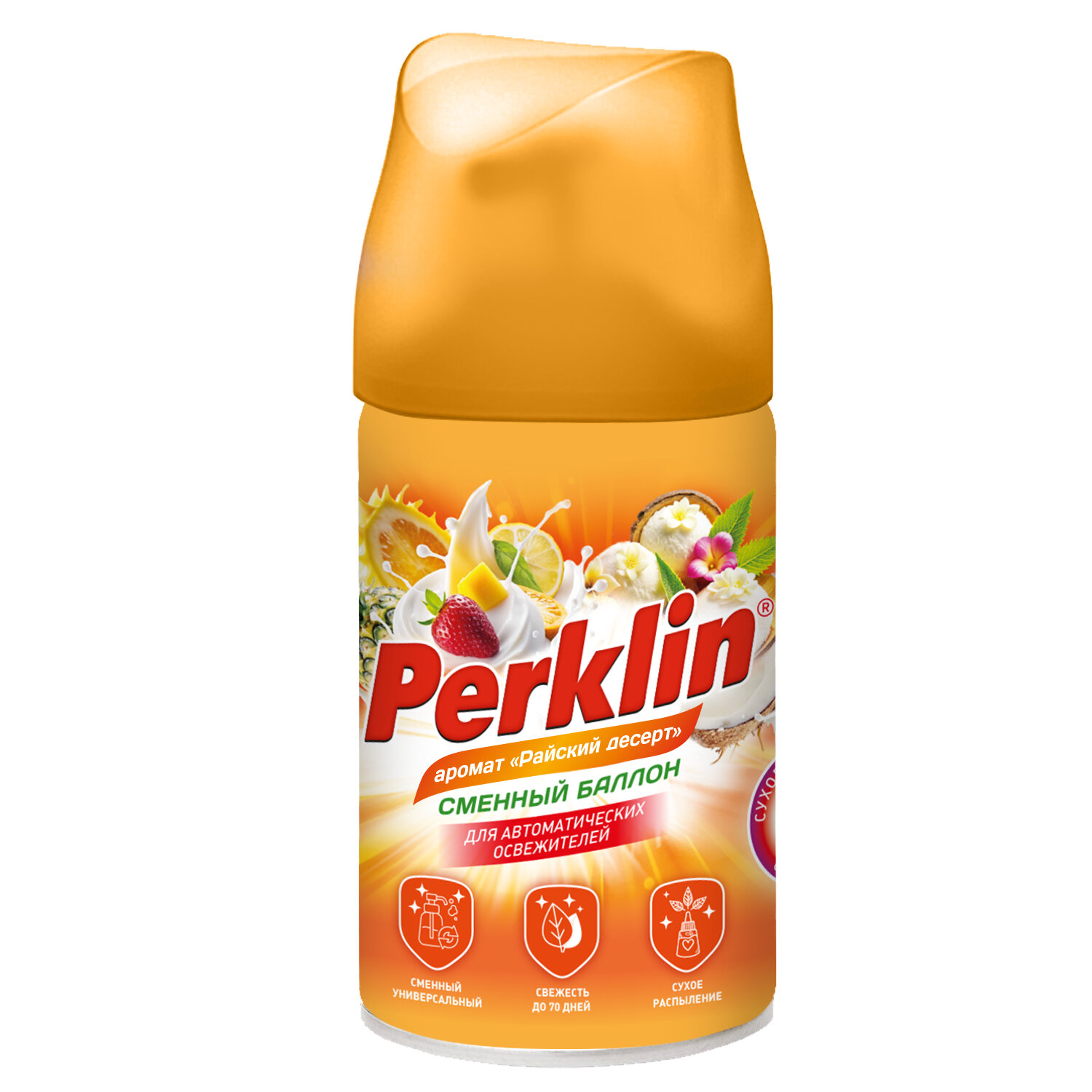 Сменный баллон 250мл PERKLIN "Райский десерт", для автоматических освежителей, универсальный Код товара: 609801 139,94 ₽ Купить Производитель:PERKLIN Сменный баллон PERKLIN мгновенно убирает неприятные запахи, наполняя комнату стойкой свежестью. Его приятный аромат будет долго сохраняться в воздухе, создавая комфортную атмосферу в любом помещении. Формула сухого распыления делает аромат более стойким и не оставляет брызг и пятен на полу и мебели, которые могут возникнуть при использовании аэрозолей, помогает быстро избавиться от неприятных запахов. Специальная конструкция распылителя обеспечивает более длительное использование освежителя. Баллон разработан специально для автоматических диспенсеров ведущих брендов, совместим с большинством автоматических распылителей, а также может применяться для распыления вручную. Состав: > 30% этиловый спирт денатурированный, > 15%, но < 30% пропан, > 5%, но < 15% бутан, < 5% ароматическая отдушка.Производство: КитайДиспенсерная система: AIRWICK, GLADEОбъем картриджа: 250 млСерия: REFILL PERKLINСухое распыление: даОтдушка: райский десертСрок годности: 48 месВес: 210 грРазмер упаковки: 15 × 6.5 × 6.5 смОбъём: 0.0008 м3Промежуточная упаковка: 12 штТранспортная упаковка: 48 штШтрих-код: 4606224460277