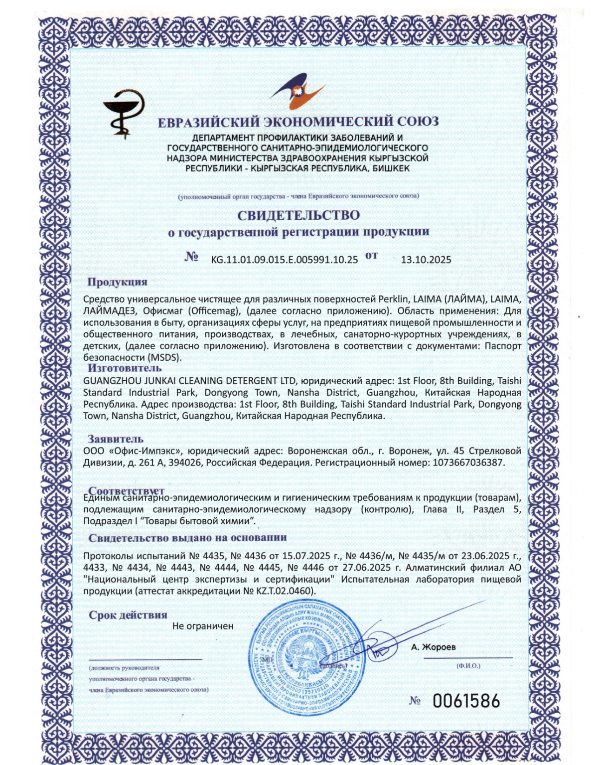 Гель для очистки от плесени и грибка, шпатель и перчатки в комплекте, PERKLIN (ПЕРКЛИН), 180 мл Код товара: 609989 312,82 ₽ Купить Производитель:PERKLIN Гель для очистки от плесени и грибка PERKLIN – это высокоэффективное средство, которое проникает глубоко в структуру материала и удаляет плесень "под корень". Благодаря активному составу, гель для очистки от плесени и грибка PERKLIN обеспечивает мощное дезинфицирующее действие даже в самых труднодоступных зонах с повышенной влажностью: в ванных комнатах, душевых кабинах, стыках плитки и других сложных участках. Средство одинаково хорошо справляется с плесенью как на вертикальных стенах, так и на горизонтальных поверхностях. Оно эффективно очищает уплотнительные резинки стиральных и посудомоечных машин, оконные уплотнители, межплиточные швы, а также силиконовый герметик вокруг сантехники и в душевых кабинах. Безопасность и деликатное действие: гель для очистки от плесени и грибка PERKLIN активно реагирует исключительно на органические загрязнения, не повреждая и не разъедая силиконовые и резиновые уплотнители. Удобство применения: удобный наконечник-аппликатор позволяет точечно наносить средство на проблемные участки. Гель полностью готов к использованию и не требует предварительного разведения. Тягучая гелевая формула не капает с вертикальных поверхностей и не течет по обоям. Гель для очистки от плесени и грибка PERKLIN идеален для швов, стыков и углов. Отбеливание и дезинфекция: средство не просто маскирует черноту, а полностью уничтожает споры грибка и возвращает поверхностям первоначальную белизну. Гель для очистки от плесени и грибка PERKLIN эффективно подавляет рост бактерий, надежно защищая поверхность. Гель предназначен для удаления плесени и грибка с поверхности уплотнителей стиральных и посудомоечных машин, холодильников, окон, раковин и туалета, гемертизированных стыков и т.д. Способ применения: 1. Насухо протрите обрабатываемую поверхность. 2. Выдавите гель и распределите по обрабатываемой поверхности толщиной 5–8 мм. 3. Накройте нанесенный гель пленкой; это предотвратит испарение действующего вещества. 4. Оставьте на 4–8 часов. Время работы средства зависит от глубины проникновения плесени в уплотнитель и степени загрязнения. 5. Смойте остатки геля. Если желаемый результат не достигнут с первого раза, нанесите гель повторно. Состав: > 30% вода, < 15% гипохлорид натрия, < 5% гидроксид натрия, < 5% загуститель.Производство: КитайФорма выпуска: гельОбъем/вес: 180 мл/гЭффект от использования: удаление плесениОтдушка: нетСодержит: щелочьОбласть применения: бытовое использование, государственные учреждения, пищевая промышленность, предприятия общественного питания, санаторно-курортные учреждения, сфера услуг, торговые учреждения, учреждения образования (школьные, дошкольные, средние, высшие)Дозатор: нетpH: 12Серия: Гель от плесени PerklinУпаковка: коробкаСрок годности: 48 месВес: 240 грРазмер упаковки: 5.1 × 18.4 × 6.9 смОбъём: 0.0008 м3Промежуточная упаковка: 48 штТранспортная упаковка: 48 штШтрих-код: 4606224461083 Файлы Сертификат-1.jpg Сертификат-2.jpg Сертификат-3.jpg Сертификат-4.jpg Сертификат-5.jpg Сертификат-6.jpg Сертификат-7.jpg Сертификат-8.jpg Сертификат-9.jpg Сертификат-10.jpg Сертификат-11.jpg Сертификат-12.jpg Сертификат-13.jpg Сертификат-14.jpg Сертификат-15.jpg Сертификат-16.jpg Сертификат-17.jpg Сертификат-18.jpg Сертификат-19.jpg Сертификат-20.jpg 