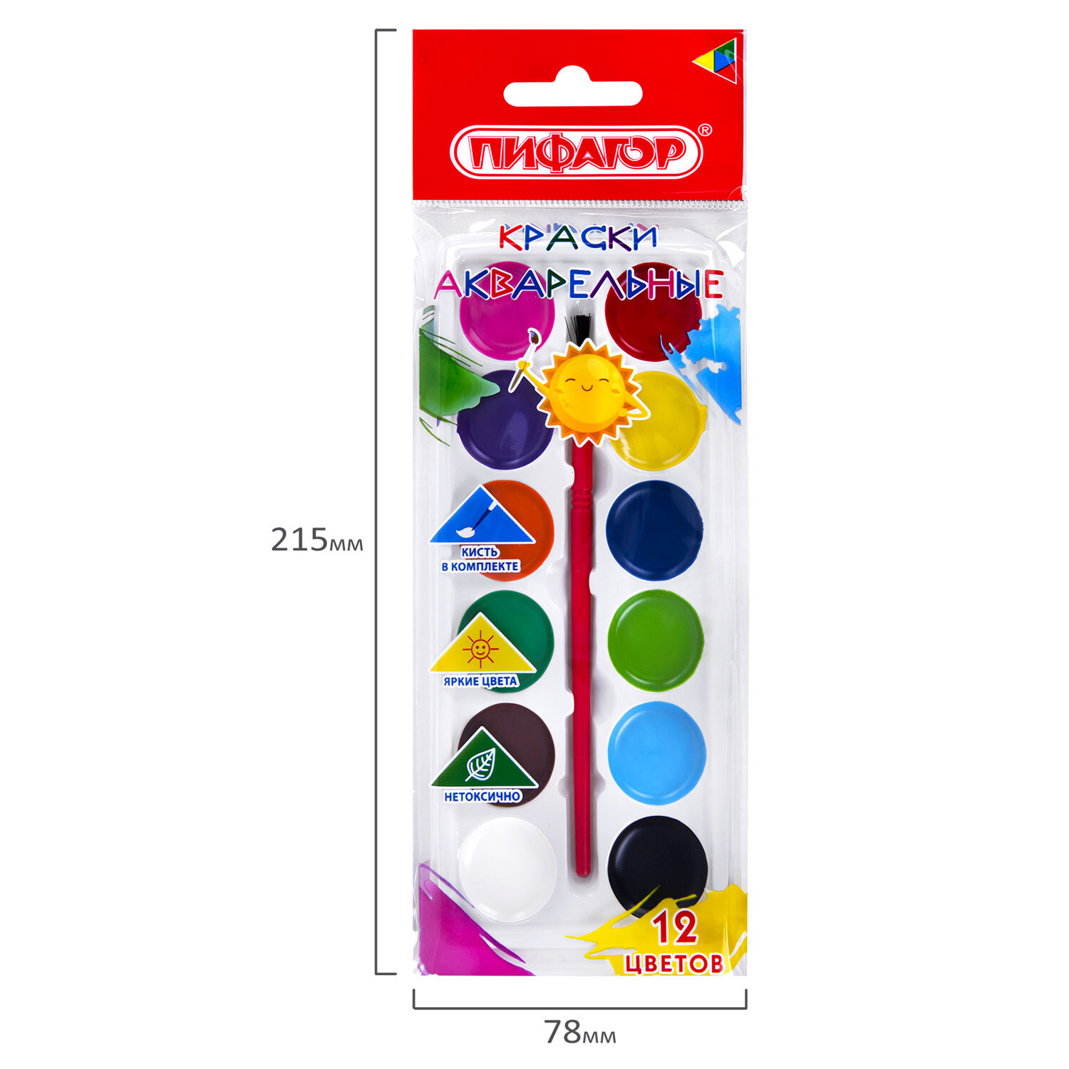 Краски акварельные ПИФАГОР "СОЛНЫШКО", 12 цветов с кистью, круглые кюветы, на коррексе Код товара: 192636 31,39 ₽ Купить Производитель:ПИФАГОР Акварельные краски ПИФАГОР "СОЛНЫШКО" незаменимы для юных художников, создающих свои первые изображения. Идеально подходят для дошкольников и учащихся младших классов. 12 ярких цветов отлично смешиваются между собой и позволяют создать множество оттенков. Краски быстро высыхают и не портятся со временем. Безопасны для детей, нетоксичны. Выпускаются на коррексе в дополнительном пакете, кюветы круглой формы и кисточка в комплекте. Упаковка обладает компактными размерами и легким весом.Производство: КитайКоличество цветов в наборе: 12 шт.Добавка в основу: нетС кистью: даОтделение для кисточки: даФорма кювет: круглаяСпецэффект: классическийСерия: СолнышкоУпаковка: коррекс в пакетеВес: 16 грРазмер упаковки: 0.7 × 16.3 × 7.9 смОбъём: 0.0001 м3Промежуточная упаковка: 24 штТранспортная упаковка: 288 штШтрих-код: 4606224485997 Файлы Сертификат-1.jpg Сертификат-2.jpg Сертификат-3.jpg Сертификат-4.jpg Сертификат-5.jpg Сертификат-6.jpg