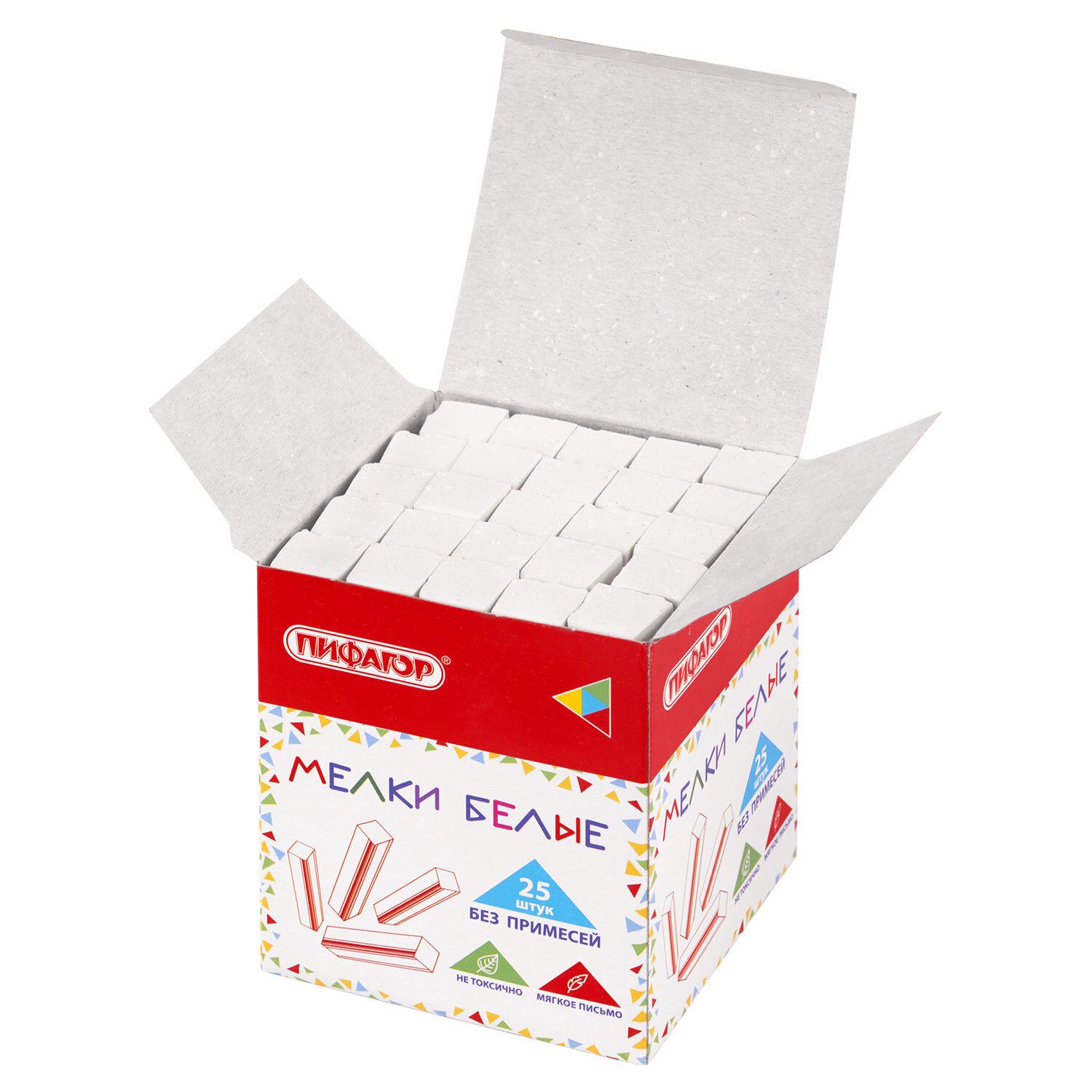 Мел белый БЕЗ ПРИМЕСЕЙ квадратный 25 штук, мягкое письмо, ПИФАГОР, картонная упаковка Код товара: 274122 77,19 ₽ Купить Производитель:ПИФАГОР Мел ПИФАГОР предназначен для письма и рисования на классных и аудиторных досках, а также на любых шероховатых поверхностях. Изготовлен из высококачественного природного сырья без примесей. Не содержит твердых включений и не портит поверхность досок. Обеспечивает мягкое письмо. Не оставляет царапин. Легко смывается водой.Производство: РоссияЦвет: белыйНазначение: для досокКоличество в упаковке: 25 шт.Количество цветов: 1Форма корпуса: квадратнаяСерия: Мягкое письмоДлина: 8 ммДиаметр: 1.2 ммТвердость: средней твердостиУпаковка: картонная коробкаВес: 348 грРазмер упаковки: 7 × 8.4 × 7 смОбъём: 0.0005 м3Промежуточная упаковка: 40 штТранспортная упаковка: 40 штШтрих-код: 4606224515359 Файлы Сертификат-1.jpg Сертификат-2.jpg Сертификат-3.jpg