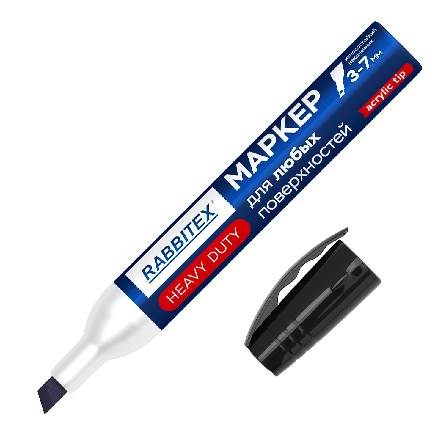 Маркер перманентный строительный для ЛЮБЫХ поверхностей металл, дерево, стекло, пластик, бетон HEAVY DUTY, ЧЕРНЫЙ 3-7 мм, RABBITEX Код товара: 152659 187,57 ₽ Купить Производитель:RABBITEX Маркер перманентный строительный RABBITEX HEAVY DUTY предназначен для стойкой маркировки на самых сложных и разнообразных поверхностях: металле, стекле, маслянистых, шероховатых, влажных материалах, дереве, керамике, камне, пластике, картоне, бетоне. Маркер строительный для ЛЮБЫХ поверхностей черного цвета обладает круглой формой корпуса, диаметр – 20 мм. Износостойкий скошенный наконечник из акрила позволяет делать линию толщиной 3-7 мм в зависимости от угла наклона. Корпус из алюминия гарантирует прочность и долговечность маркера. Особая спиртовая основа чернил обеспечивает стойкость к воздействию воды, ультрафиолета, низких и высоких температур. Маркер используется в производстве и строительстве, где требуется надежная и долговечная маркировка, в том числе на пыльных, грязных, маслянистых и шероховатых поверхностях. Изделие не перезаправляется. После использования плотно закрывайте колпачок для предотвращения высыхания наконечника и чернил. Цвет колпачка с клипом соответствует цвету чернил.Производство: ИндияНазначение: для любых поверхностей, для неровных поверхностей, для промышленной маркиковкиСерия: HEAVY DUTYЦвет чернил: черныйТип чернил: быстросохнущие, водостойкие, морозостойкие, нестираемые, светостойкиеКоличество в комплекте: 1 шт.Форма наконечника: скошенныйМинимальная толщина линии письма: 3 ммМаксимальная толщина линии письма: 7 ммНаконечник устойчив к повреждению и истиранию: даКоличество запасных сменных наконечников в комплекте: 0 шт.Форма корпуса: круглаяДиаметр корпуса: 20 ммМатериал корпуса: алюминийНаличие клипа: даОснова: спиртоваяУпаковка: картонная коробкаСрок годности: 60 месВес: 32 грРазмер упаковки: 1 × 14.4 × 1.2 смОбъём: 0.0001 м3Промежуточная упаковка: 6 штТранспортная упаковка: 432 штШтрих-код: 4606224515724 Сертификат-1.jpg Сертификат-2.jpg