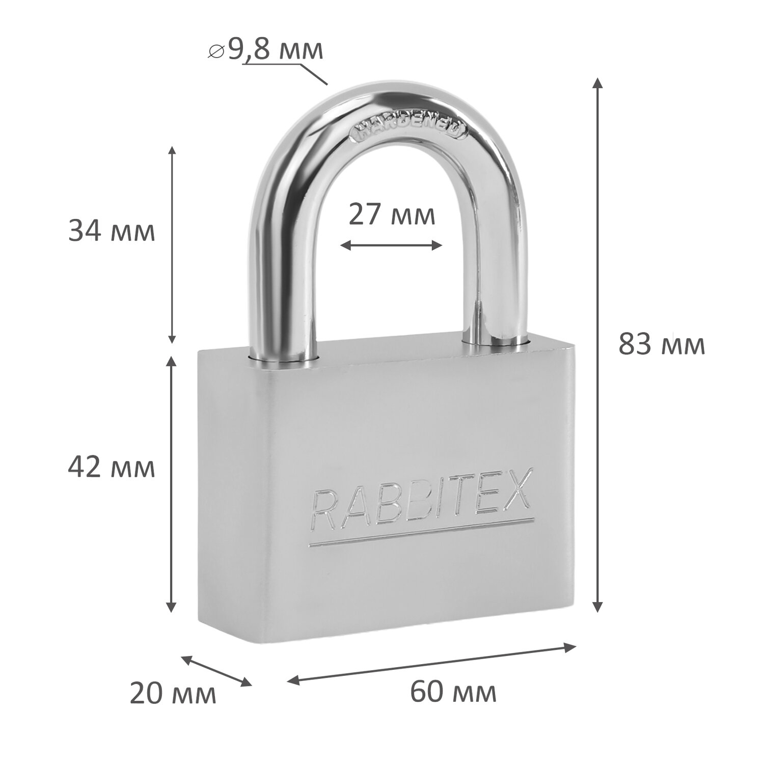Замок навесной стальной 60 мм "Никель", антикоррозионное покрытие, 4 ключа, RABBITEX (РАББИТЕКС) Код товара: 671310 340,06 ₽ Купить Производитель:RABBITEX Замок навесной RABBITEX с дисковым цилиндровым механизмом секретности предназначен для запирания дверей, гаражных ворот, складов и других помещений. Достаточно прост по конструкции и надёжен в повседневной эксплуатации. Замок навесной имеет стальной корпус с антикоррозийным покрытием и оснащен полукруглой закалённой стальной дужкой, что делает его прочным и увеличивает сопротивляемость к взлому. Тип механизма секретности – дисковый. Четыре дисковых ключа в комплекте. Замок запирается и открывается при помощи ключа. Размеры замка: ширина – 60 мм, высота корпуса – 42 мм, высота общая – 83 мм, толщина – 20 мм. Диаметр дужки: 9,8 мм. Внутреннее расстояние между дужками: 27 мм. Внутренняя высота дужки (в закрытом виде): 34 мм. Количество ключей: 4. Размер ключей: 52x22x2,9 мм. Упаковка: двойной блистер с европодвесом.Производство: КитайТип ключа: дисковойКоличество ключей в комплекте: 4 шт.Материал корпуса: стальОсобенности: всепогодныйДиаметр дужки: 9.8 ммШирина замка: 60 ммСерия: НикелированныйТип замка: навеснойВысота замка: 83 ммГлубина замка: 20 ммВес: 337 гТип упаковки: блистерРазмер упаковки: 2.6 × 15.9 × 11 смОбъём: 0.0005 м3Промежуточная упаковка: 6 штТранспортная упаковка: 48 штШтрих-код: 4606224460574 Файлы Сертификат-1.jpg Сертификат-2.jpg Сертификат-3.jpg Сертификат-4.jpg Сертификат-5.jpg Сертификат-6.jpg Сертификат-7.jpg Сертификат-8.jpg Сертификат-9.jpg Сертификат-10.jpg Сертификат-11.jpg Сертификат-12.jpg Сертификат-13.jpg Сертификат-14.jpg Сертификат-15.jpg Сертификат-16.jpg Сертификат-17.jpg Сертификат-18.jpg Сертификат-19.jpg Сертификат-20.jpg Сертификат-21.jpg Сертификат-22.jpg Сертификат-23.jpg Сертификат-24.jpg Сертификат-25.jpg Сертификат-26.jpg