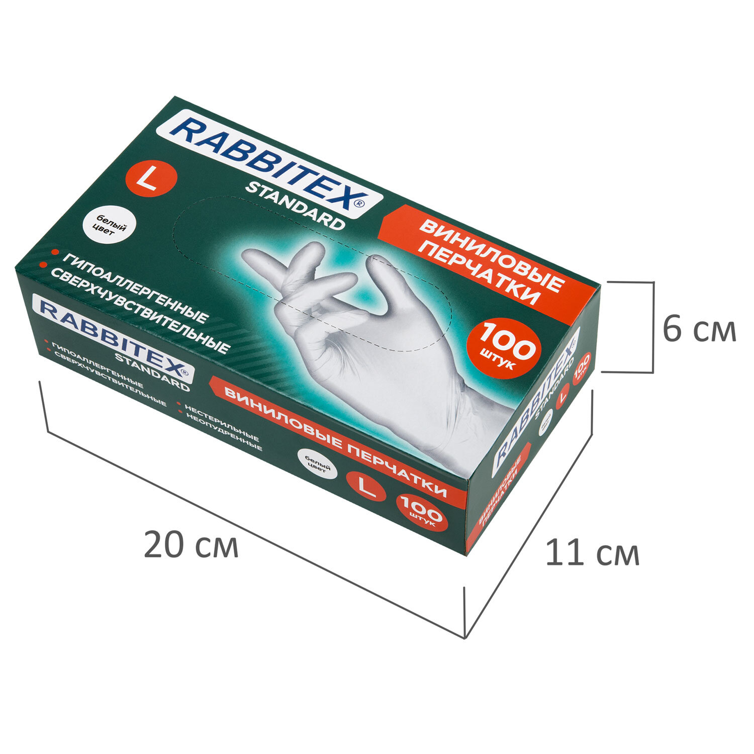 Перчатки виниловые универсальные 50 пар (100 шт.), размер L (большой), белые, RABBITEX (РАББИТЕКС) Standard Код товара: 702165 255,55 ₽ Купить Производитель:RABBITEX Универсальные виниловые перчатки RABBITEX незаменимы при проведении различных хозяйственно-бытовых работ. Могут использоваться в клининговой, строительной сферах, при работе в саду, при оказании косметических услуг, в пищевой промышленности. Универсальные виниловые перчатки RABBITEX отличаются повышенной прочностью, хорошо растягиваются, сохраняют тактильную чувствительность рук. Помогают защитить руки при проведении различных хозяйственно-бытовых работ: мытье посуды, стирке, уборке, работе в саду, ремонте, покраске. Подойдут для использования в салонах красоты, парикмахерских и заведениях общепита. Не предназначены для защиты от опасных химикатов. Комфортны в использовании, не вызывают аллергических реакций на коже. Закатанный край манжеты защищает от проникновения капель воды под перчатку. Подходят для обеих рук. Поставляются в картонном диспенсере с перфорацией для удобного извлечения.Производство: КитайМатериал основы: винилРазмер: LКоличество в комплекте: 50 парВнутреннее напыление: нетОдноразовые: даСерия: StandardТип манжеты: закатанный крайЦвет: белыйУпаковка: картонный диспенсерВес: 470 грРазмер упаковки: 6.4 × 20.2 × 10.8 смОбъём: 0.0016 м3Промежуточная упаковка: 10 штТранспортная упаковка: 10 штШтрих-код: 4606224521763 Файлы Сертификат-1.jpg Сертификат-2.jpg Сертификат-3.jpg