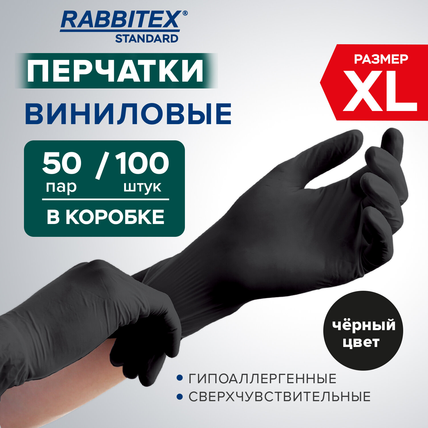 Перчатки виниловые универсальные 50 пар (100 шт), размер XL (очень большой), черные, RABBITEX (РАББИТЕКС) Standard Код товара: 702170 222,98 ₽ Купить Производитель:RABBITEX Универсальные виниловые перчатки RABBITEX незаменимы при проведении различных хозяйственно-бытовых работ. Могут использоваться в клининговой, строительной сферах, при работе в саду, при оказании косметических услуг, в пищевой промышленности. Универсальные виниловые перчатки RABBITEX отличаются повышенной прочностью, хорошо растягиваются, сохраняют тактильную чувствительность рук. Помогают защитить руки при проведении различных хозяйственно-бытовых работ: мытье посуды, стирке, уборке, работе в саду, ремонте, покраске. Подойдут для использования в салонах красоты, парикмахерских и заведениях общепита. Не предназначены для защиты от опасных химикатов. Комфортны в использовании, не вызывают аллергических реакций на коже. Закатанный край манжеты защищает от проникновения капель воды под перчатку. Подходят для обеих рук. Поставляются в картонном диспенсере с перфорацией для удобного извлечения.Производство: КитайРазмер: XLМатериал основы: винилКоличество в комплекте: 50 парВнутреннее напыление: нетОдноразовые: даСерия: StandardТип манжеты: закатанный крайЦвет: черныйУпаковка: картонный диспенсерВес: 500 грРазмер упаковки: 6 × 20 × 11 смОбъём: 0.0015 м3Промежуточная упаковка: 10 штТранспортная упаковка: 10 штШтрих-код: 4606224521817 Файлы