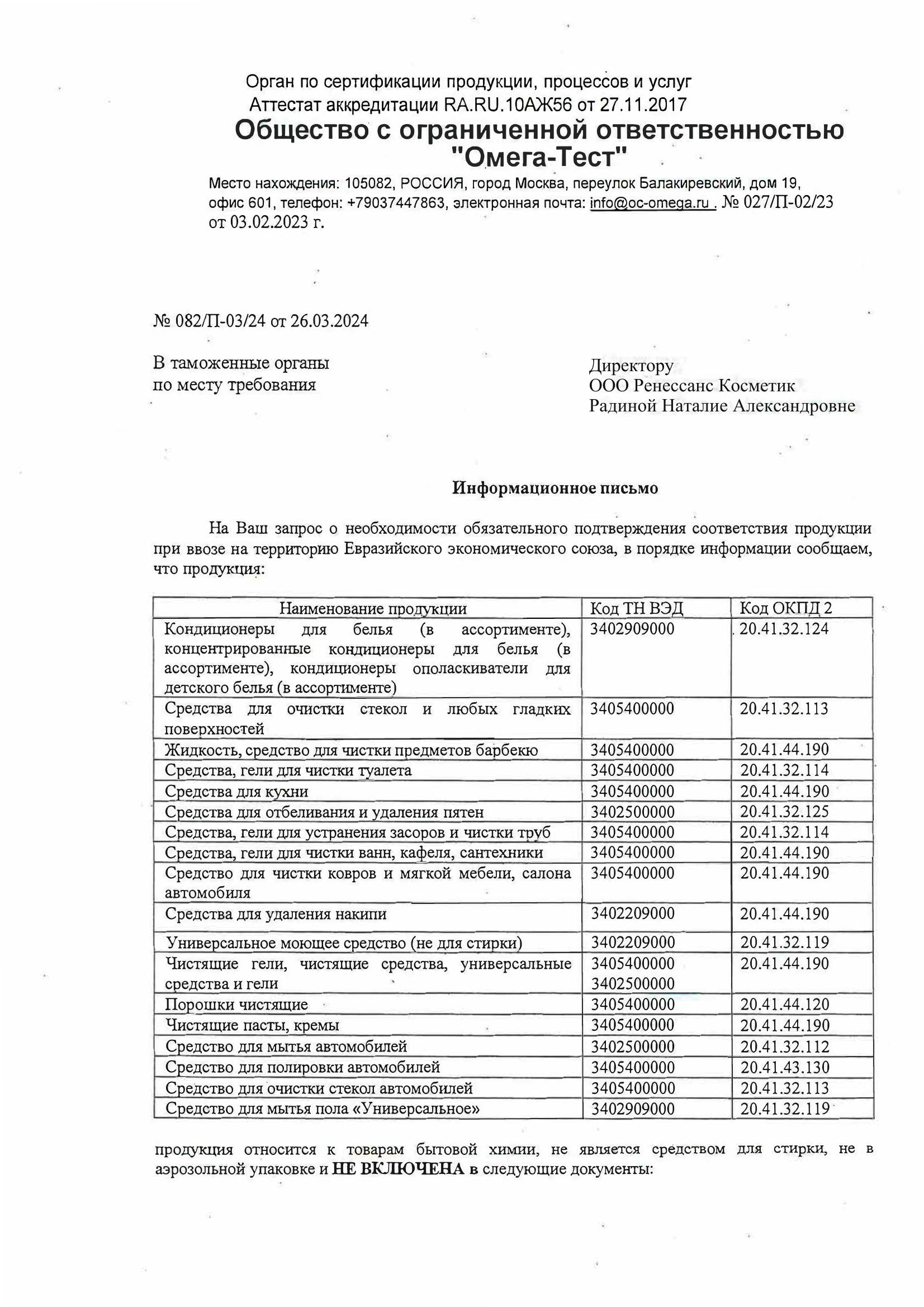 Средство для прочистки канализационных труб 100 г, ВЫГОДНАЯ УБОРКА, РЕНЕССАНС КОСМЕТИК, МИНПРОМТОРГ Код товара: 702129 41,81 ₽ Купить Производитель:Ренессанс косметик Средство для прочистки канализационных труб "Антизасор" эффективно устраняет неприятные запахи и засоры. Легок в применении, подходит как для профилактики, так и для непосредственного устранения засоров. Состав: хлорид натрия (30% и более), гидроксид натрия (30% и более). Способ применения: осторожно высыпать все содержимое пакета в сливное отверстие. Влить небольшими порциями один стакан холодной воды. Через 1-2 часа осторожно, избегая разбрызгивания, промыть водосток большим количеством проточной воды. при необходимости процедуру повторить. Для профилактики засоров используйте средство 1 раз в месяц. Меры предосторожности: важно использовать резиновые перчатки, чтобы избежать контакта средства с кожей и предотвратить раздражение или ожоги. Также следует избегать попадания средства в глаза и на слизистые оболочки. При попадании на кожу или в глаза, необходимо немедленно промыть пораженное место большим количеством воды. Не рекомендуется вдыхать пары средства и хранить его в недоступном для детей месте, вдали от пищевых продуктов. Условия хранения: температурный режим не ограничен. Хранить в сухом месте!Производство: РоссияФорма выпуска: гранулыОбъем/вес: 100 мл/гСерия: АнтизасорМатериал труб: универсальныйЭффект от использования: устраняет засоры, устраняет неприятный запахЭффективен в холодной воде: даТовар относится к сегменту ЭКОНОМ: даУпаковка: Пластиковый пакетСрок годности: 24 месВес: 95 грРазмер упаковки: 3 × 10.1 × 8.9 смОбъём: 0.0003 м3Промежуточная упаковка: 20 штТранспортная упаковка: 20 штШтрих-код: 4680022431196 Файлы Приложение-1.pdf Приложение-2.pdf Сертификат-1.jpg Сертификат-2.jpg Сертификат-3.jpg