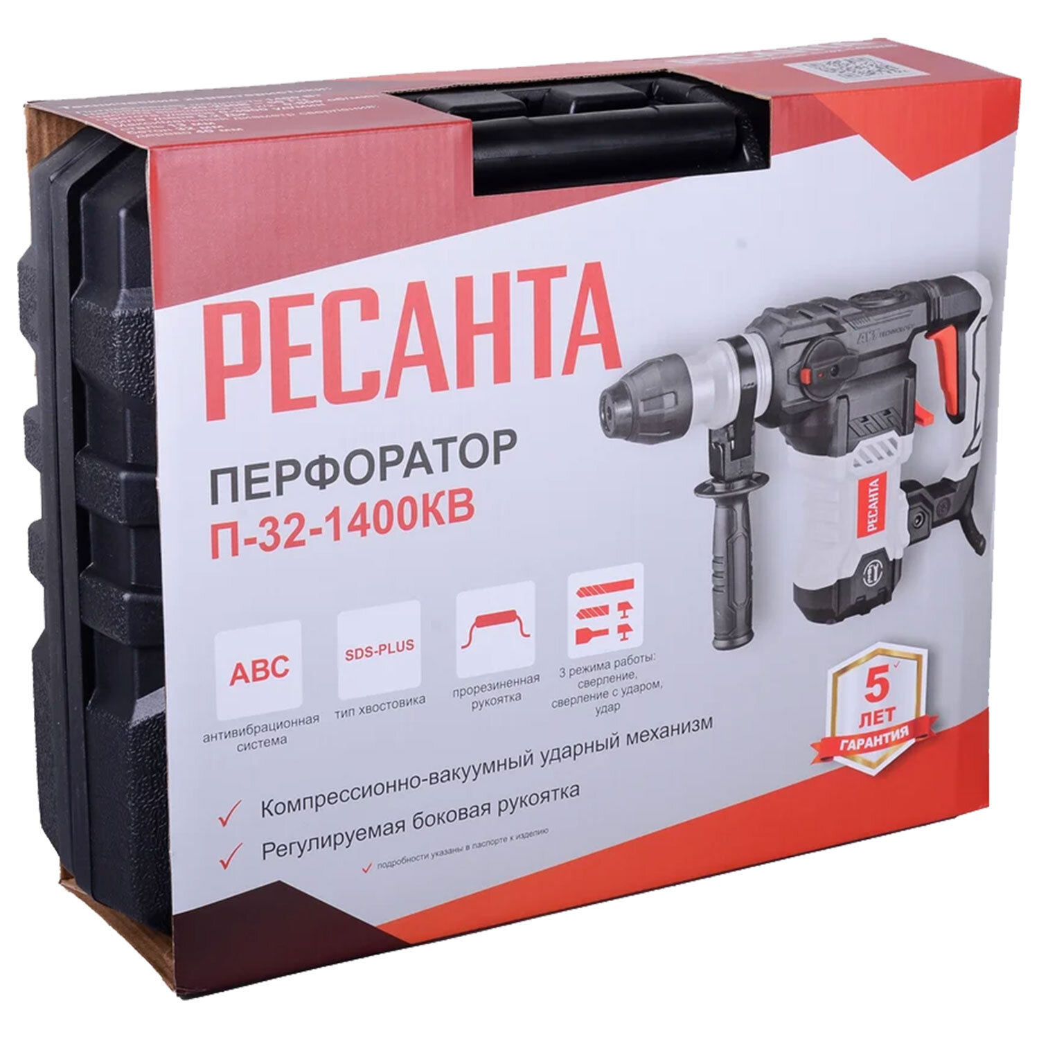 Перфоратор сетевой 1400 Вт, 800 об/мин, 3900 уд/мин, патрон SDS PLUS, РЕСАНТА П-32-1400КВ Код товара: 671628 8 526,16 ₽ Купить Производитель:РЕСАНТА Сетевой перфоратор Ресанта П-32-1400КВ (1400 Вт) с патроном SDS-PLUS — мощный инструмент для строительства и ремонта. Сверлит бетон, кирпич, камень. Энергия удара 5,2 Дж, 3 режима работы, антивибрационная система. Перфоратор сетевой Ресанта П-32-1400КВ (75/3/6) — профессиональный инструмент для сложных строительных задач: бурения отверстий большого диаметра, штробления, демонтажа конструкций. Подходит для работы с бетоном, кирпичом, камнем, деревом, металлом и керамикой. Ключевые характеристики: мощность: 1400 Вт; энергия удара: 5,2 Дж; частота вращения: 0–800 об/мин; частота ударов: 0–3900 уд/мин; патрон: SDS-PLUS; максимальный диаметр сверления: - бетон — 32 мм; - сталь — 13 мм; - дерево — 40 мм; режимы работы: сверление, сверление с ударом, долбление (отбойный молоток); дополнительные функции: реверс, антивибрационная система, предохранительная муфта, блокировка включения; длина кабеля: 2 м; вес: 7,65 кг. Комплектация: перфоратор; боковая рукоятка с резиновым покрытием; ограничитель глубины сверления; кейс для хранения и транспортировки; смазка ударного механизма; бур, долото; ключ для заглушки; инструкция. Преимущества: высокая мощность (1400 Вт) и энергия удара (5,2 Дж) — работа с твёрдыми материалами; 3 режима работы — универсальность для разных задач; антивибрационная система — комфорт при длительной работе; предохранительная муфта — защита от перегрузок и травм при заклинивании; реверс — лёгкое извлечение оснастки; защита от пыли — долгий срок службы механизма; удобная боковая рукоятка — надёжный хват и контроль инструмента; кейс в комплекте — безопасное хранение и переноска. Вся информация на сайте о товарах носит справочный характер и не является публичной офертой в соответствии с пунктом 2 статьи 437 ГК РФ. Производитель оставляет за собой право изменять характеристики товара, его внешний вид и комплектность без предварительного уведомления продавца.Производство: КитайТип патрона: SDS+Мощность: 1400 ВтЭнергия удара: 5.2 ДжКоличество ударов в минуту: 3900 уд/минСкорость вращения: 800 об/минКоличество режимов работы: 3Тип расположения двигателя: вертикальныйМаксимальный диаметр сверления (бетон): 32 ммМаксимальный диаметр сверления (дерево): 40 ммМаксимальный диаметр сверления (металл): 13 ммТип упаковки: кейсДлина: 470 ммШирина: 440 ммГлубина: 300 ммВес изделия нетто: 7.65 кгВес: 5,6 кгРазмер упаковки: 8 × 44 × 47 смОбъём: 0.028 м3Промежуточная упаковка: 2 штТранспортная упаковка: 2 штШтрих-код: 4606059038283 Файлы