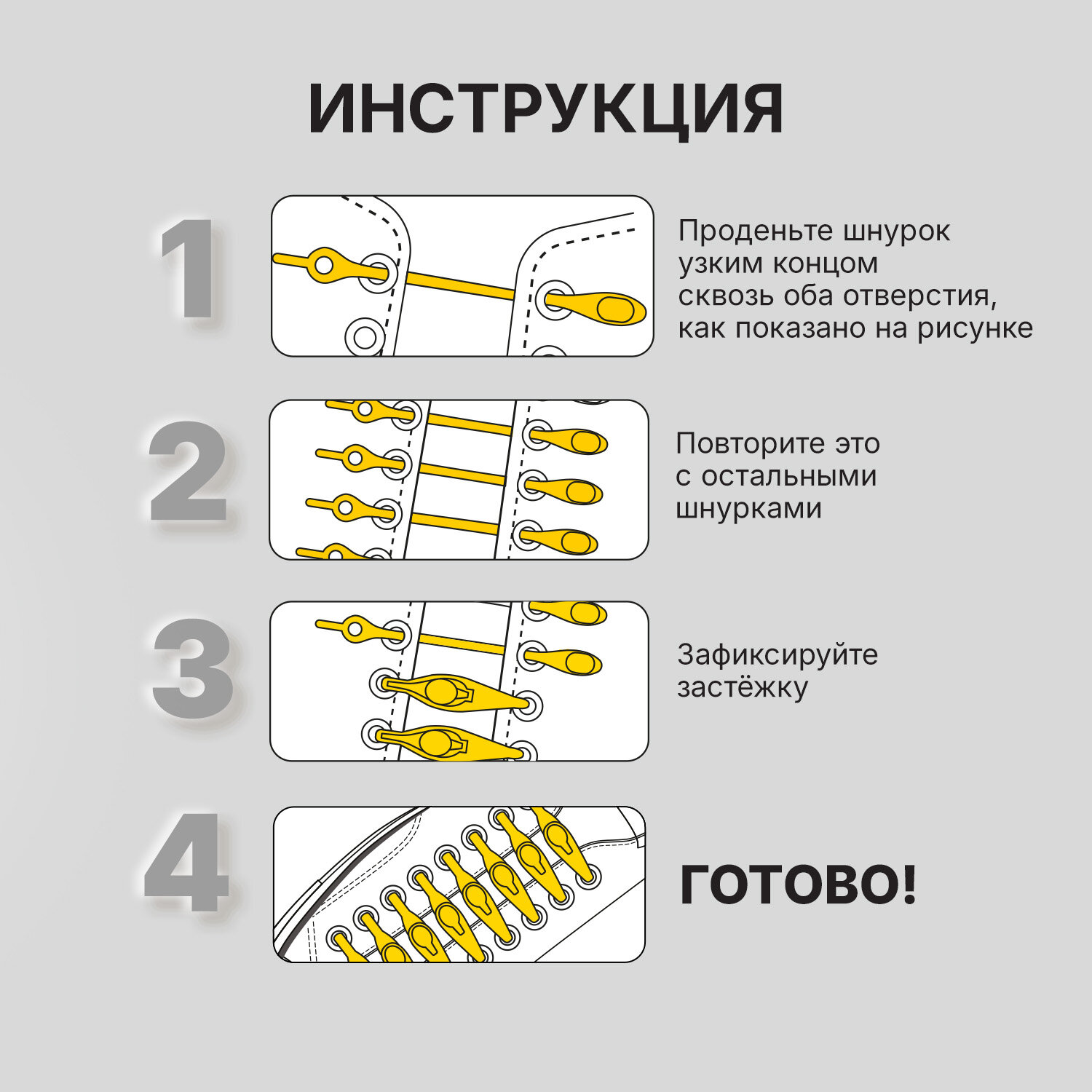 Шнурки силиконовые БЕЛЫЕ 14 шт., диаметр 4 мм, SHEGRA (ШЕГРА) Код товара: 701718 183,28 ₽ Купить Производитель:SHEGRA Силиконовые шнурки SHEGRA отлично подойдут для любой обуви, обеспечат надежную фиксацию и максимальное удобство. Шнурки хорошо тянутся и имеют диаметр 4 мм, что подходит для большинства видов обуви, в комплекте 14 шт. Шнурки выполнены из силикона, который обладает высокой прочностью на разрыв и сохраняет гибкость при отрицательных температурах. Отлично подходят как для взрослых так и для детей, не развязываются и предотвращают падения. Стильный белый цвет и лаконичный дизайн делают их универсальным аксессуаром для любой обуви. ИНСТРУКЦИЯ: 1. Вставьте кончик шнурка в отверстие с внешней стороны. 2. Повторите это с остальными шнурками. 3. Вставьте противоположные кончики шнурков в отверстия напротив.Производство: КитайТип товара: шнурки силиконовые для обувиФорма шнурка: плоскийДлина шнурка: 11.5 смШирина / Диаметр шнурка: 4 ммЦвет шнурков: белыйЭластичные: даМатериал шнурков: силиконМатериал фиксатора: нет фиксатораЦвет фиксатора: нетУпаковка: OPP пакет с европодвесом и прозрачным окномВес: 27 грРазмер упаковки: 1 × 12.4 × 10.4 смОбъём: 0.0002 м3Промежуточная упаковка: 12 штТранспортная упаковка: 192 штШтрих-код: 4606224512754 Сертификат-1.jpg Сертификат-2.jpg