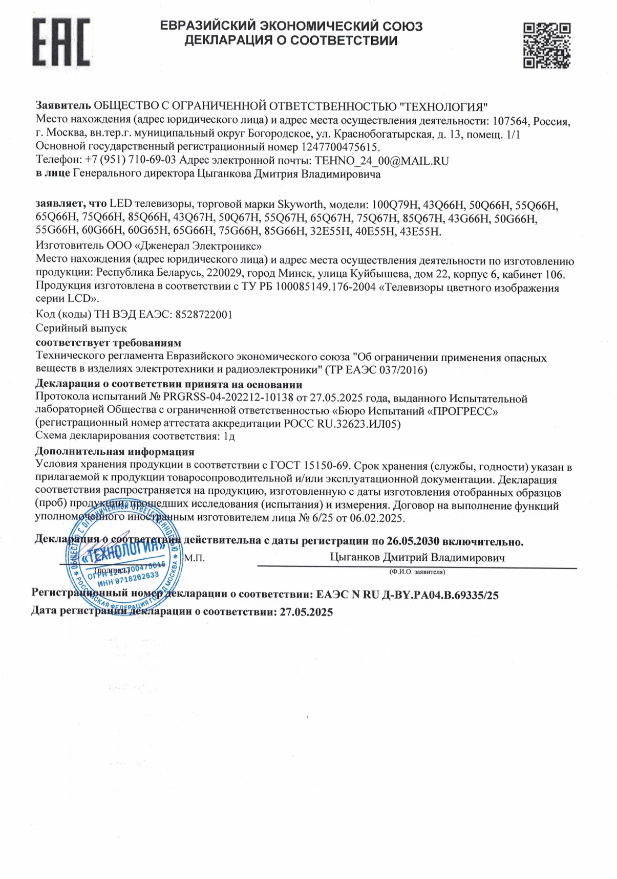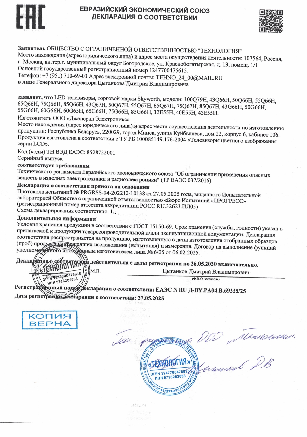 Особое внимание уделено здоровью: Low Blue Light, Flicker Free, датчик освещённости и режим Filmmaker Mode (сохраняющий авторский замысел режиссёра) обеспечивают комфорт при любом освещении и длительном просмотре. Геймеры оценят игровой режим с 120 Гц HSR, минимизирующий задержку.