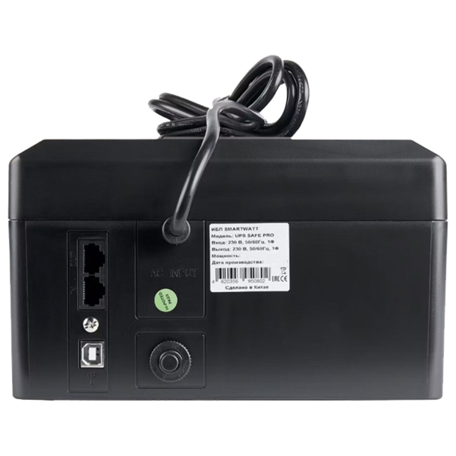 Источник бесперебойного питания SMARTWATT UPS SAFE PRO 650, 650 ВА (390 Вт), 8 розеток Код товара: 355137 5 297,95 ₽ Купить Производитель:SMARTWATT Линейно-интерактивные ИБП SMARTWATT UPS SAFE PRO для офисного и мультимедийного оборудования позволяет резервировать до 8 устройств одновременно. Встроенный стабилизатор защищает от перепадов напряжения в электросети. Компактные размеры, LED-индикация и возможность размещения на стене делают источники бесперебойного питания SMARTWATT UPS SAFE PRO одним из самых удобных решений для офисного пространства. Каждая модель этой серии оснащена 8 евророзетками и USB-портом для подключения к ПК. Преимущества - Аппроксимированный синус, - 4 розетки Schuko для резервирования, - 4 розетки Schuko для стабилизации, - Возможность настенной установки, - Широкий модельный ряд, - Запуск при восстановлении питания, - Автоопределение частоты, - Заряд АКБ в выключенном состоянии, - LED-индикация. Вся информация на сайте о товарах носит справочный характер и не является публичной офертой в соответствии с пунктом 2 статьи 437 ГК РФ. Производитель оставляет за собой право изменять характеристики товара, его внешний вид и комплектность без предварительного уведомления продавца.Производство: КитайТип выходных разъемов питания: евророзетка (CEE 7/4)Максимальная выходная мощность: 650 ВАМаксимальная выходная мощность: 390 ВтВходное напряжение: 140-300 ВВремя работы от батарей при полной нагрузке: 0 минКоличество розеток для защиты от всплесков напряжения: 4 шт.Количество розеток для батарейного резервного питания: 4 шт.Макс. время переключения на батареи: 6 мсФункции: защита от перегрузки, защита телефонной линии (RJ-11)Индикатор состояния входного напряжения: даСреднее время зарядки при полном разряде батареи: 0 чЦвет корпуса: черныйВысота: 117 ммШирина: 195 ммГлубина: 285 ммВес: 4 кгСерия: UPS SAFE PROРазмер упаковки: 11.7 × 19.5 × 28.5 смОбъём: 0.0065 м3Промежуточная упаковка: 1 штТранспортная упаковка: 1 штШтрих-код: 4620356950796 Файлы Приложение-1.pdf