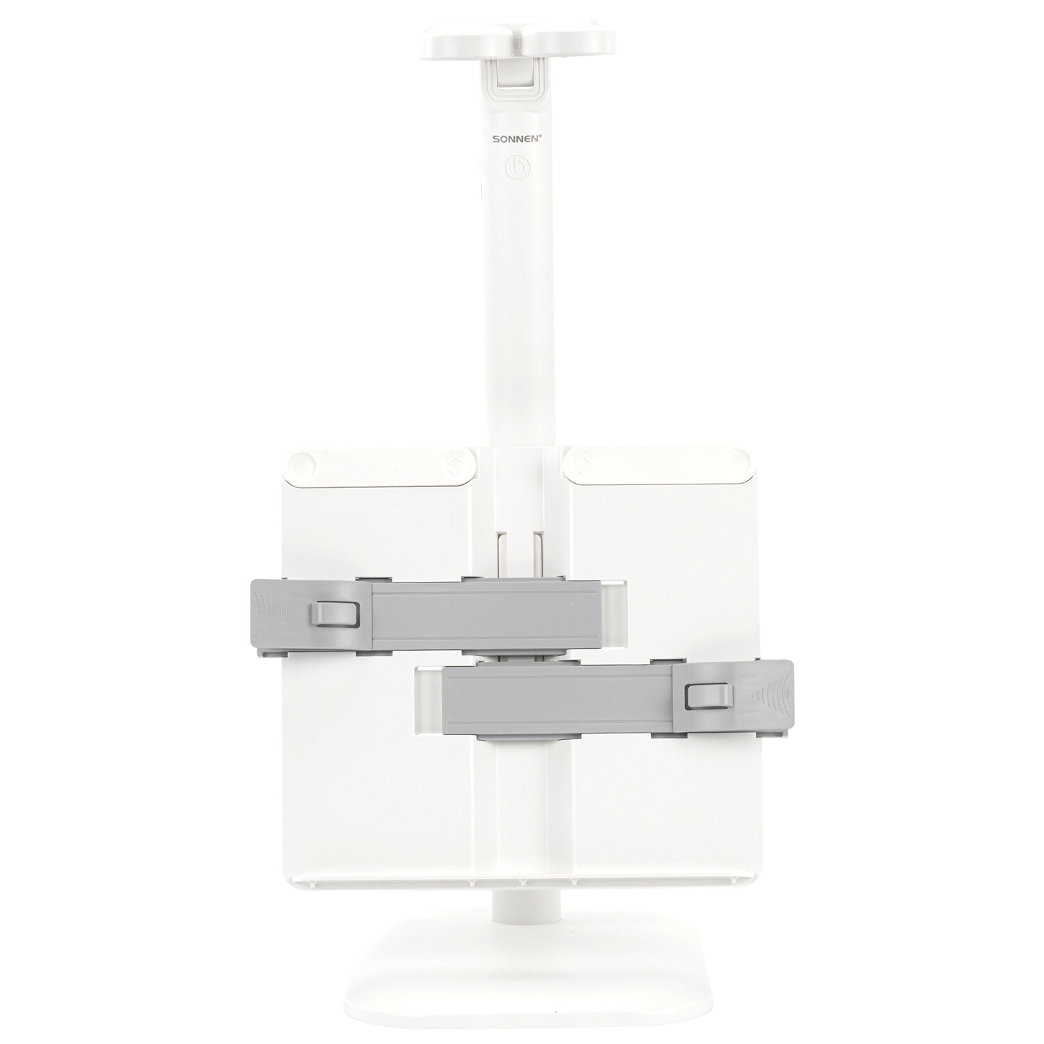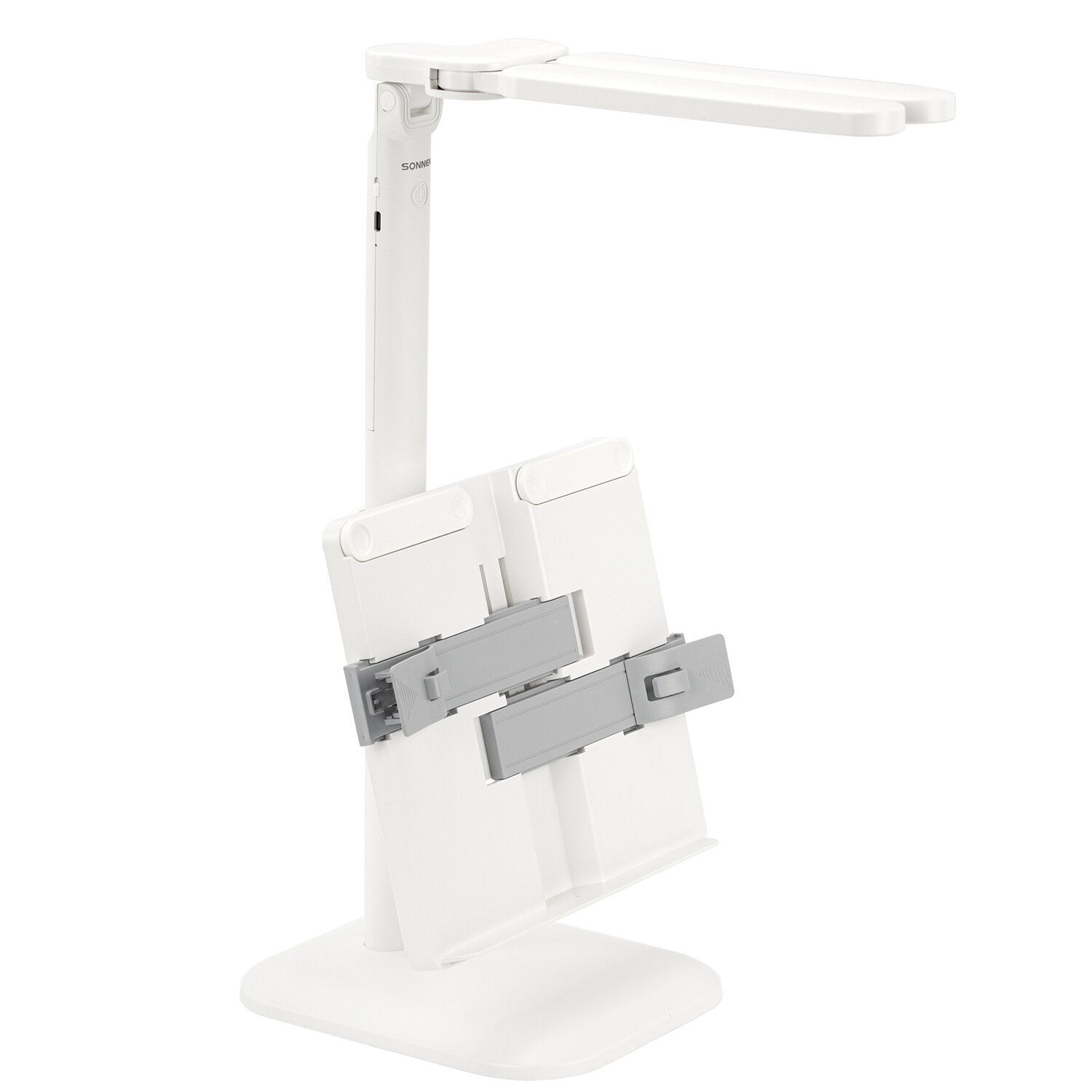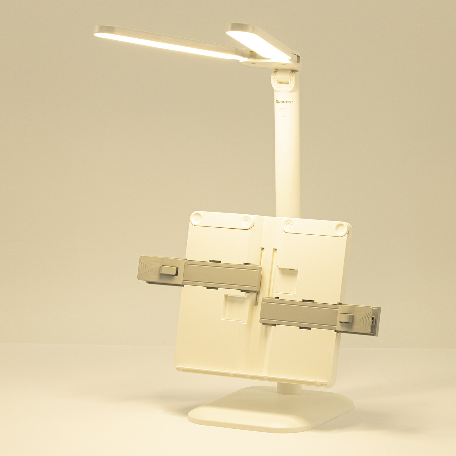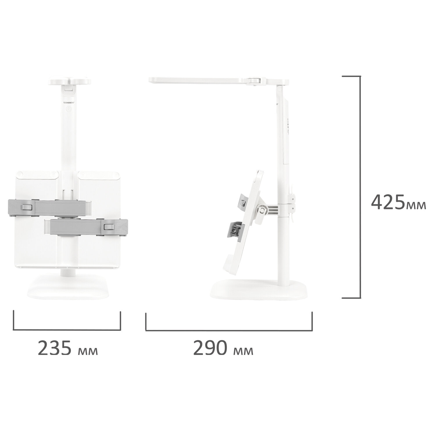 Настольная лампа / светильник беспроводная SONNEN PT-202, подставка для книг, USB, LED, 5 Вт, 3 режима Код товара: 238780 1 038,45 ₽ Купить Производитель:SONNEN Настольная лампа-светильник SONNEN PT-202 предназначена для освещения рабочего места в офисе или дома. Конструкция светильника обеспечивает произвольную регулировку направления света. Многофункциональный светодиодный светильник 5 Вт – идеальное решение для офиса и дома. Светильник оснащен 60 яркими диодами, что обеспечивает равномерное освещение и бережную нагрузку на глаза при длительной работе. Три режима цветовой температуры (тёплый, нейтральный, холодный свет) и бесступенчатая регулировка яркости позволяют настроить свет под любую задачу и время суток. Интегрированная подставка для книг позволит удобно расположить печатные издания перед собой. Встроенный аккумулятор обеспечит бесперебойную работу светильника.Производство: КитайТип лампы: светодиоднаяТип крепления: подставкаМощность: 5 ВтЦоколь: нетНазначение: универсальныйСерия: PT-20Цветность света: нейтральный белый - 3500-4500 К, теплый белый - 2700-3400 К, холодный белый - от 6100 и болееСветовой поток: 450 ЛюменКол-во режимов свечения: 3Источник света: 60 LEDИсточник питания: сеть, аккумуляторРасположение кнопки выключателя: на корпусеСенсорный выключатель: даПроизвольная регулировка направления подсветки: даОтсутствие мерцания и шумов: даСкладная конструкция: даВысота: 53 смДлина шнура: 1.2 мМатериал корпуса: пластикЦвет корпуса: белыйВес: 791 грРазмер упаковки: 8.2 × 28.4 × 22.2 смОбъём: 0.006 м3Промежуточная упаковка: 24 штТранспортная упаковка: 24 штШтрих-код: 4606224465968 Сертификат-1.jpg Сертификат-2.jpg