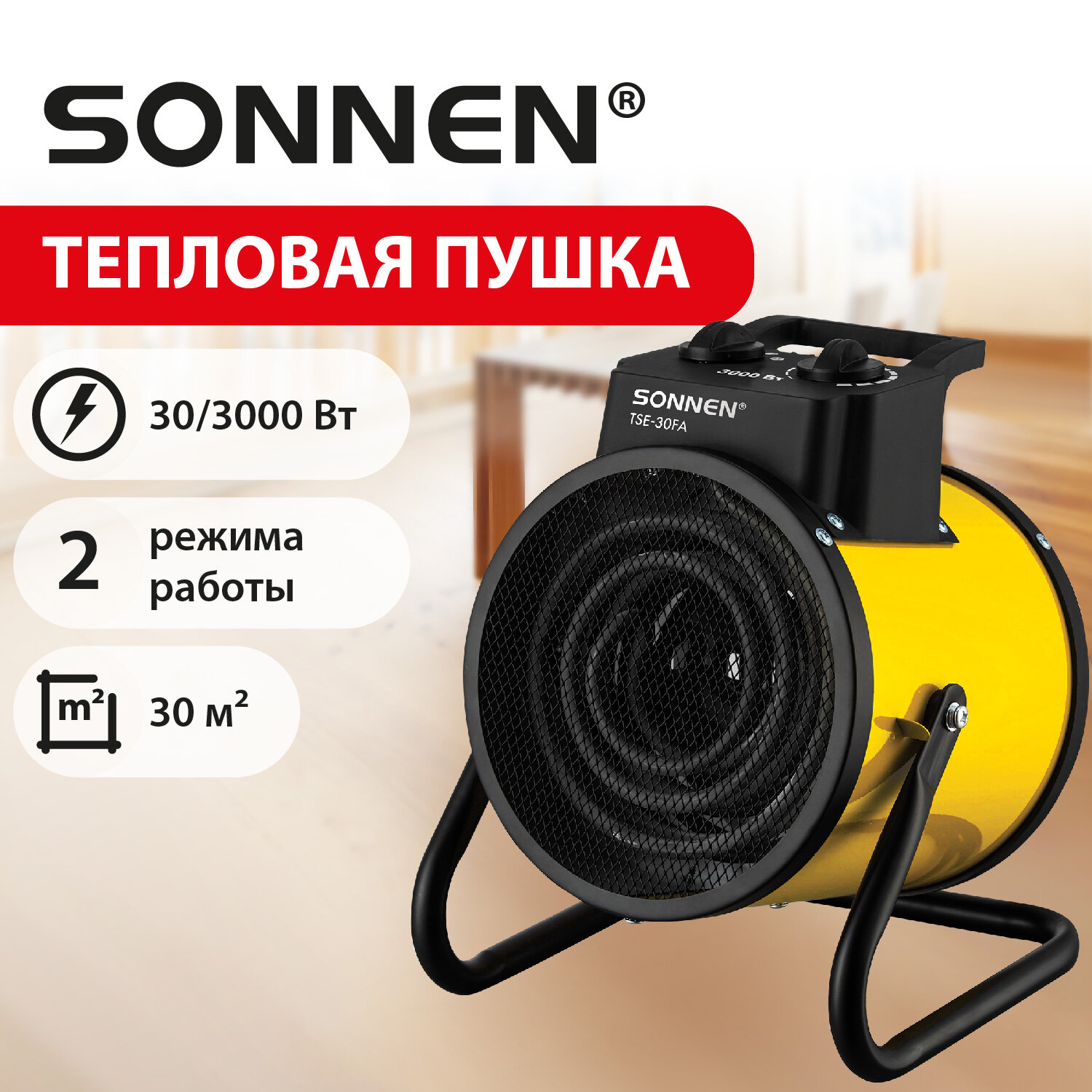 Тепловая пушка электрическая SONNEN TSE-30FA, 3000 Вт, ТЭН/спиральный нагревательный элемент, 2 режима Код товара: 456208 3 363,56 ₽ Купить Производитель:SONNEN Тепловая пушка SONNEN TSE-30FA идеально подойдет для поддержания комфортной температуры воздуха в жилых и нежилых помещениях площадью до 30 м2. Тепловая пушка оснащена спиральным нагревательным элементом мощностью 3000 Вт. Предназначена для быстрого обогрева помещения площадью до 30 м2. Оснащена функцией защиты от перегрева. Два режима работы тепловой пушки и встроенный механический термостат помогут подобрать оптимальную температуру воздуха.Производство: КитайТип: электрическаяМощность: 3000 ВтТермостат (терморегулятор): даВентиляция без нагрева: даРекомендованная площадь обогрева: 30 м2Регулировка мощности: даСерия: TSEНапряжение: 220 ВЧастота сети: 50 ГцПроизводительность теплого воздуха: 260 м3/чЗащита от перегрева: даНаличие ручки-держателя: даЭлектрический провод в комплекте: даДлина шнура: 1.35 мФорма: круглаяВысота: 315 ммШирина: 190 ммГлубина: 225 ммЦвет: желтыйВес (без упаковки): 2.4 кгВес: 2,64 кгРазмер упаковки: 19.4 × 31.9 × 23.5 смОбъём: 0.0145 м3Промежуточная упаковка: 1 штТранспортная упаковка: 1 штШтрих-код: 4606224486680 Файлы Приложение-1.pdf Сертификат-1.jpg Сертификат-2.jpg Сертификат-3.jpg Сертификат-4.jpg Сертификат-5.jpg