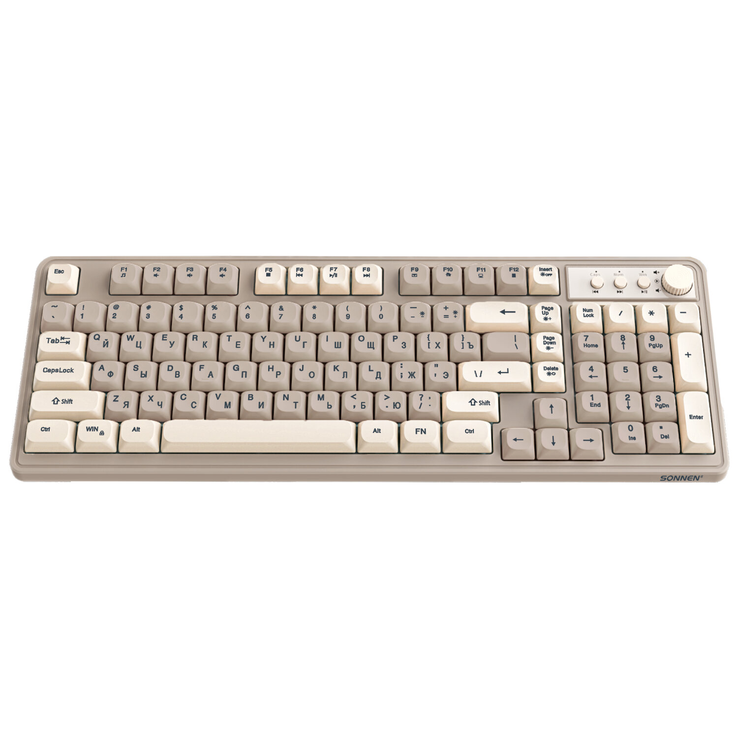 Клавиатура проводная USB, 102+98 клавиш, LED-подсветка, SONNEN K620, слоновая кость/серая Код товара: 513950 1 323,81 ₽ Купить Производитель:SONNEN Клавиатура SONNEN K620 создаст отличные условия для работы и развлечений. Благодаря мембранному механизму клавиатура работает практически бесшумно, поэтому не создаст неудобств для сидящих рядом с вами в офисе сотрудников. Имеет 2 полных комплекта клавиш: 102+98 дополнительных, позволяющих создать индивидуальный дизайн клавиатуры. Один из комплектов выполнен в цвете слоновой кости, другой - в сером цвете. Корпус сделан из ударопрочного ABS-пластика. Клавиатура снабжена LED-подсветкой (с тремя уровнями яркости). В комплекте также идет пуллер. Клавиатура также оснащена мультимедийной панелью с энкодером. С помощью F клавиш можно использовать дополнительные мультимедийные функции, которые можно включать, используя функциональные клавиши клавиатуры (F1-F12). Размер клавиатуры – 153x409x32. Подключение через USB-разъем. Длина кабеля – 1,35 м. Вес – 0,6 кг.Производство: КитайИнтерфейсы подключения: USBТип клавиатуры: мембраннаяВид клавиатуры: классическаяОбщее количество клавиш: 200Полноразмерныe клавиши: "BackSpace", "Enter", "пробел"Подсветка клавиш: даТонкая: даДлина кабеля: 1.35 мМатериал корпуса: пластикВысота: 409 ммШирина: 153 ммГлубина: 32 ммЦвет: слоновая костьВес: 600 гСерия: K620Размер упаковки: 5.3 × 17.2 × 41.5 смОбъём: 0.0039 м3Промежуточная упаковка: 10 штТранспортная упаковка: 10 штШтрих-код: 4606224458069