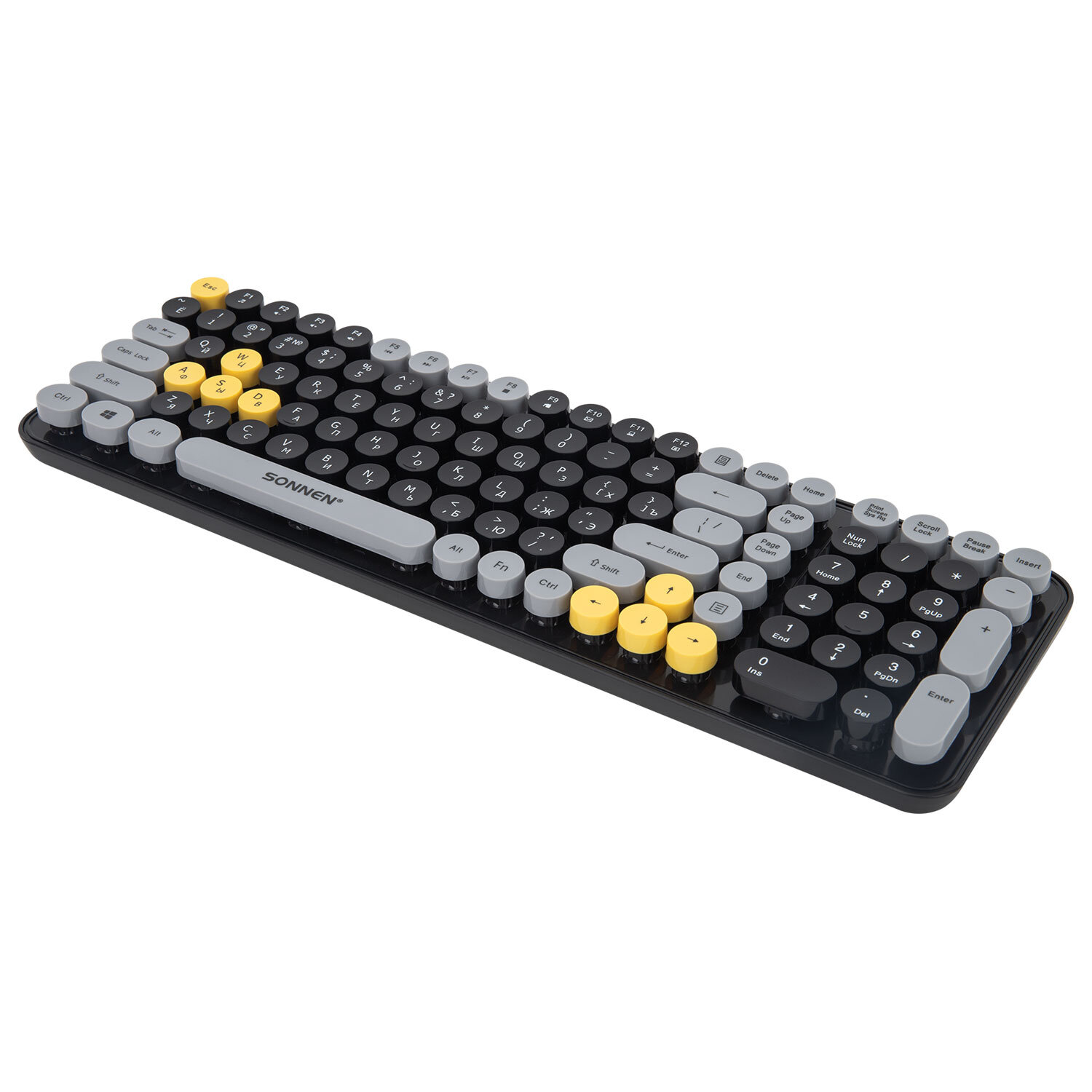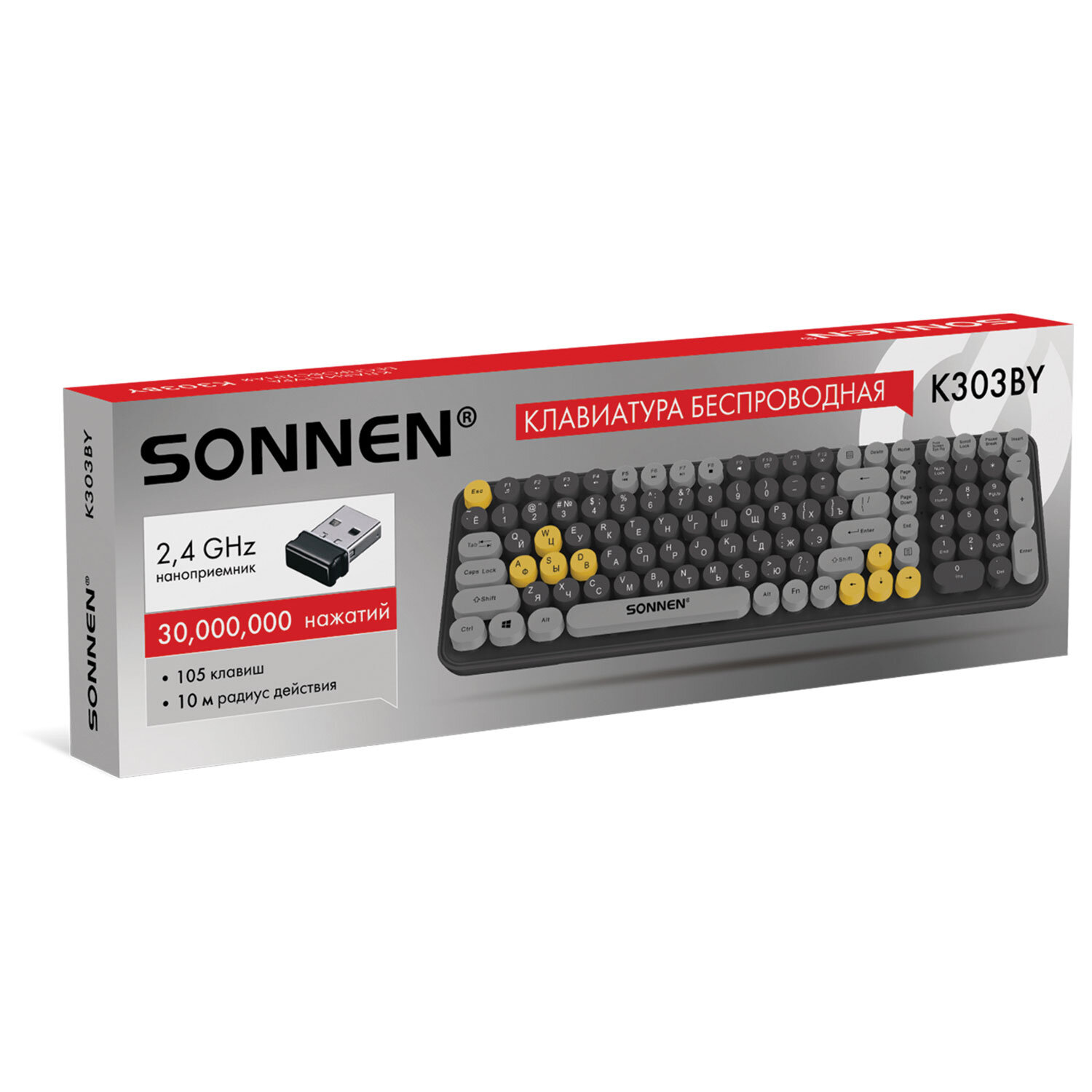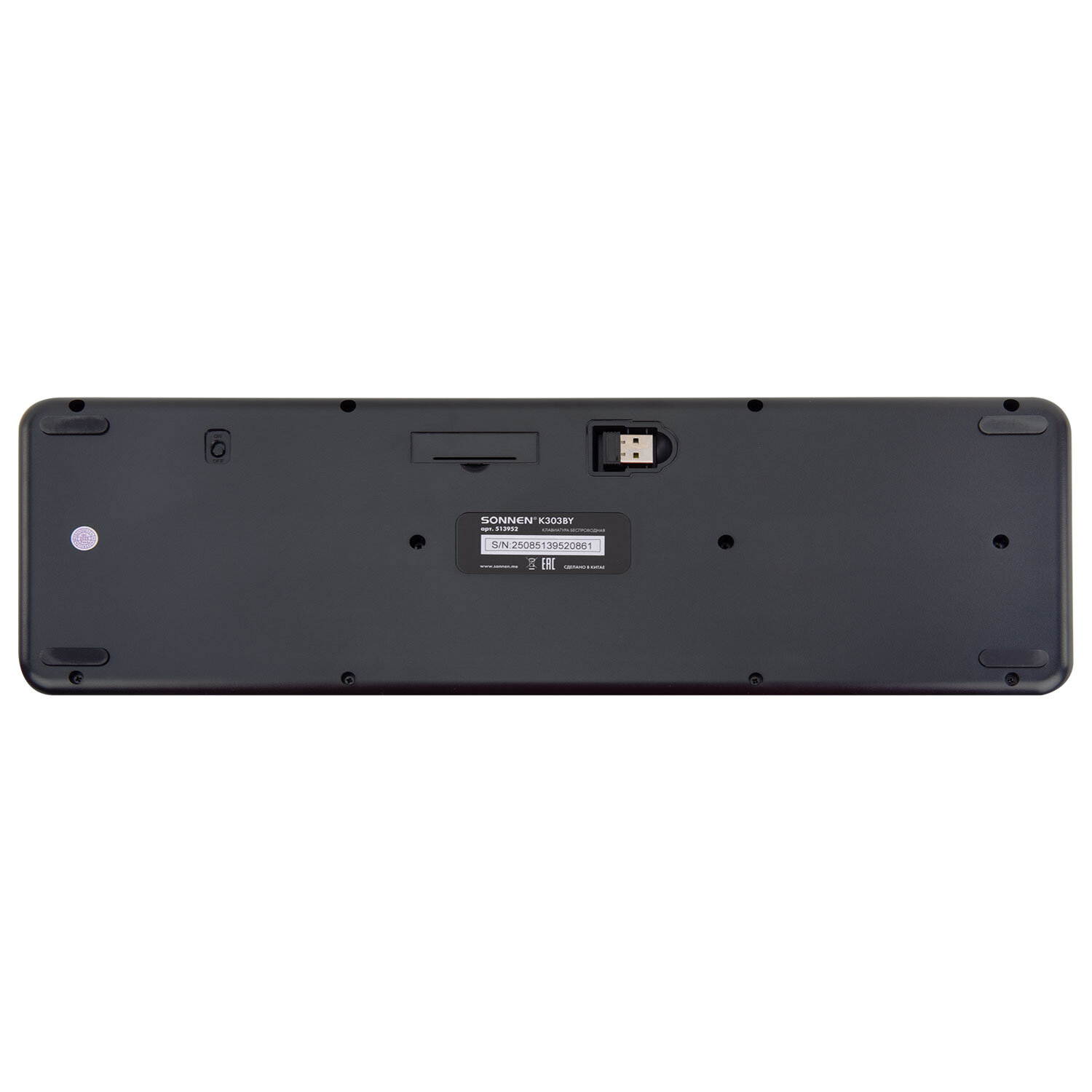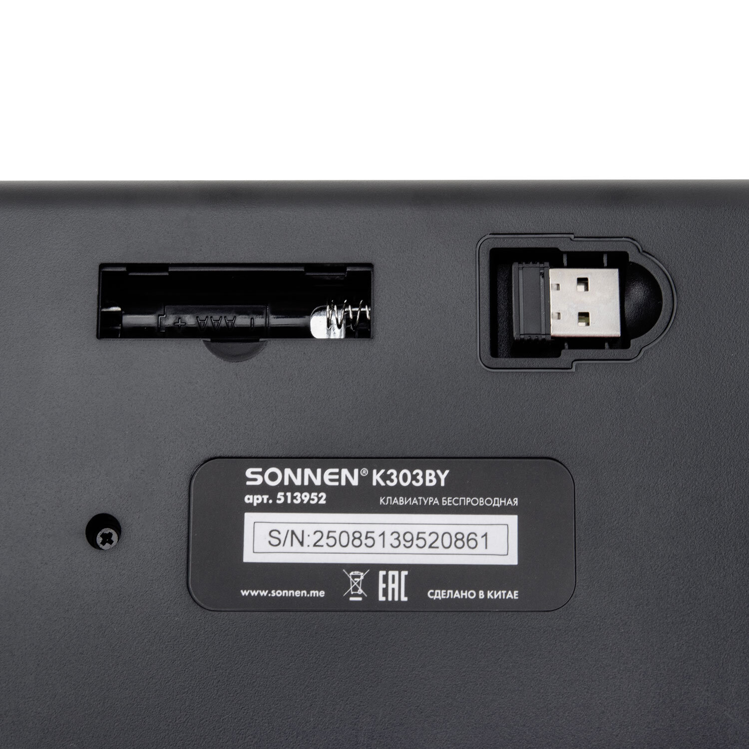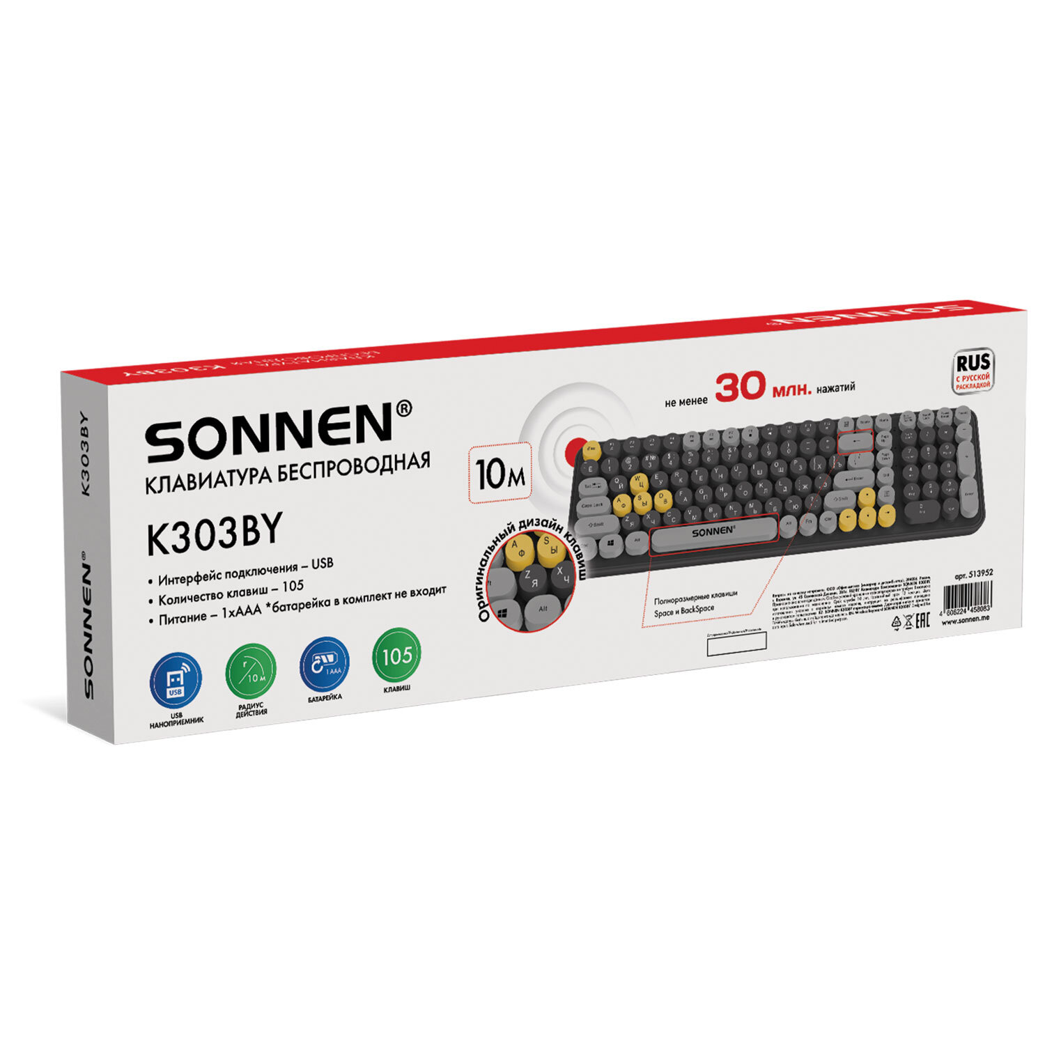 Клавиатура беспроводная бесшумная USB, 105 клавиш, SONNEN K303BY, черная / серая / желтая Код товара: 513952 999,35 ₽ Купить Производитель:SONNEN Беспроводная мультимедийная клавиатура SONNEN K303BY отличается современным эргономичным дизайном. Для начала работы всего лишь необходимо установить наноресивер в свободный USB-порт компьютера или ноутбука. Клавиатура оснащена классическим набором из 105 клавиш с полноразмерными "BackSpace" и "Пробел". Клавиатура отличается оригинальным дизайном клавиш: как в цветовой гамме, так и по форме. Питание обеспечивается элементом питания типа AАA (в комплект не входит). Радиус действия – 10 м. Цвет – черный / серый / желтый. Вес – 665 г. Размер – 35х130х402 мм. АДАПТЕР НАХОДИТСЯ В СПЕЦИАЛЬНОМ ОТСЕКЕ НА ДНЕ КЛАВИАТУРЫ!Производство: КитайТип клавиатуры: мембраннаяВид клавиатуры: беспроводнаяНазначение: для ПКИнтерфейс: USBРадиус действия: 10 мОбщее количество клавиш: 105Полноразмерныe клавиши: "BackSpace", "пробел"Тонкая: даПитание клавиатуры: 1 батарея АААДлина: 402 ммШирина: 130 ммВысота: 35 ммЦвет: черный / серый / желтыйСерия: K303Вес: 665 гРазмер упаковки: 4.3 × 42.3 × 13.7 смОбъём: 0.0029 м3Промежуточная упаковка: 20 штТранспортная упаковка: 20 штШтрих-код: 4606224458083 Файлы Сертификат-1.jpg Сертификат-2.jpg