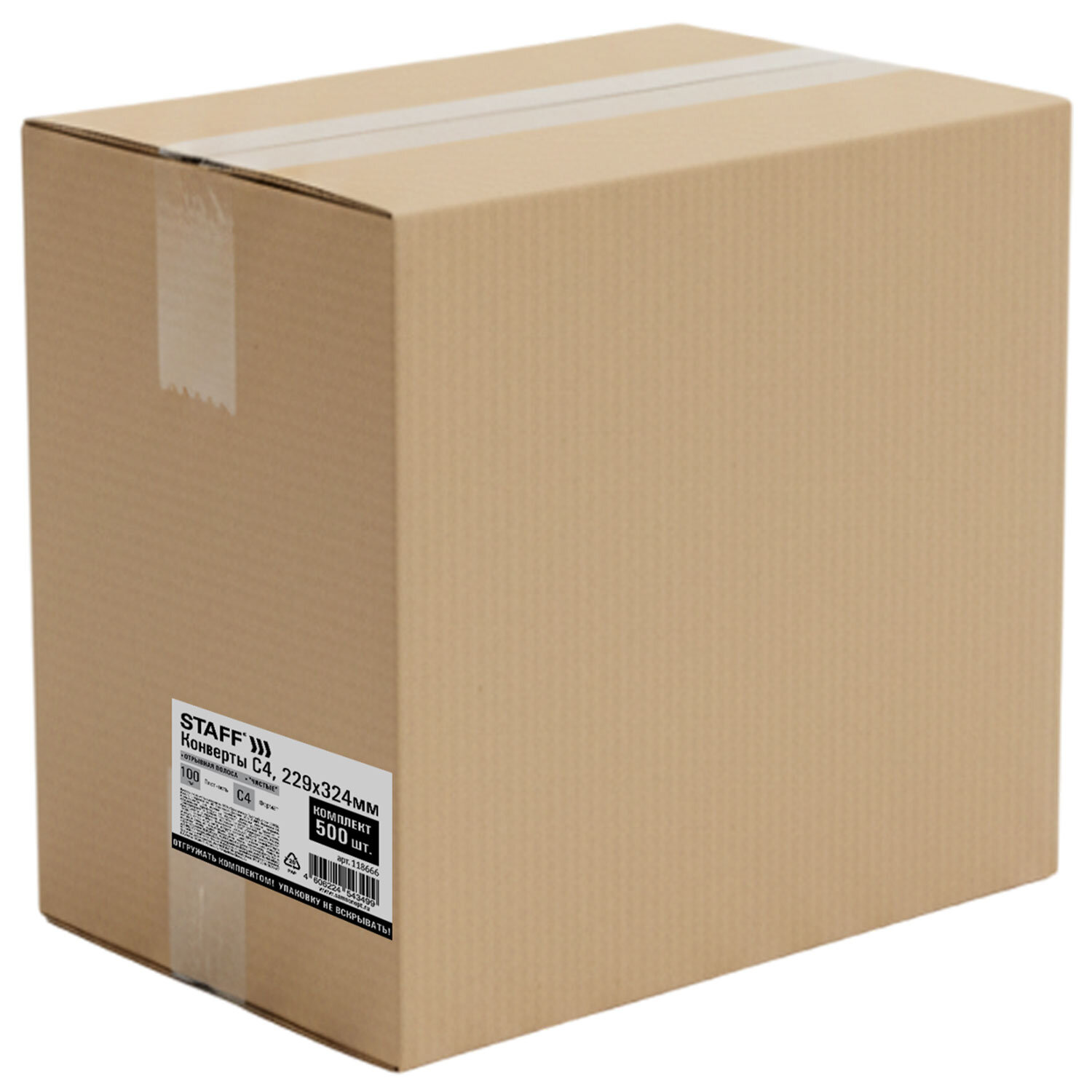 Конверты С4 (229х324 мм), отрывная лента, 100 г/м2, КОМПЛЕКТ 500 шт., STAFF Код товара: 118666 3 798,77 ₽ Купить Производитель:STAFF Почтовый конверт STAFF предназначен для рассылки документов, журналов и другой корреспонденции. В конверт формата C4 можно вложить документ формата А4. Плотность бумаги 100 г/м2 позволяет размещать тяжелую корреспонденцию и скрыть содержимое от посторонних глаз. Отрывная полоса типа STRIP обеспечивает надежное запечатывание конверта и сохранность личного письма или важного документа.Производство: РоссияФормат конверта: С4Формат клапана: прямойСпособ заклеивания: полоса STRIPСерия: Формат С4 STRIPФормат вложения без сложения: А4Окно: нетЦвет: белыйПлотность бумаги: 100 г/м2Количество в комплекте: 500 шт.Упаковка: гофрокоробВес: 7,8 кгРазмер упаковки: 23.5 × 31 × 33.5 смОбъём: 0.0244 м3Промежуточная упаковка: 1 штТранспортная упаковка: 1 штШтрих-код: 4606224543499 Файлы Приложение-1.pdf Сертификат-1.jpg Сертификат-2.jpg Сертификат-3.jpg Сертификат-4.jpg Сертификат-5.jpg Сертификат-6.jpg Сертификат-7.jpg Сертификат-8.jpg Сертификат-9.jpg Сертификат-10.jpg Сертификат-11.jpg Сертификат-12.jpg Сертификат-13.jpg Сертификат-14.jpg Сертификат-15.jpg Сертификат-16.jpg Сертификат-17.jpg Сертификат-18.jpg Сертификат-19.jpg Сертификат-20.jpg Сертификат-21.jpg Сертификат-22.jpg Сертификат-23.jpg Сертификат-24.jpg Сертификат-25.jpg Сертификат-26.jpg