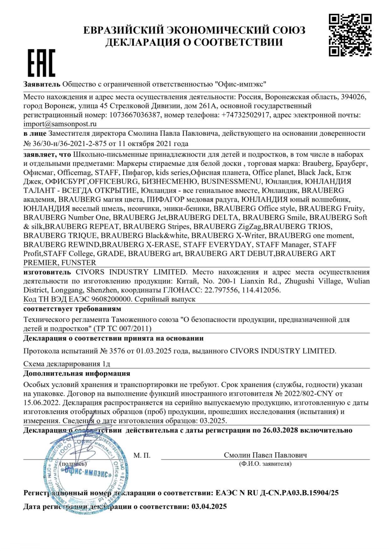 Маркеры стираемые для белой доски НАБОР 4 ЦВЕТА, STAFF "BASIC" WBM-200, 1-3 мм Код товара: 152639 93,36 ₽ Купить Производитель:STAFF Набор маркеров STAFF "BASIC" WBM-200 – это ваш ключ к красочным и структурированным презентациям. Четыре классических цвета (черный, синий, красный, зеленый) помогут выделить главное, систематизировать информацию и визуализировать ее. Набор из 4 маркеров предназначен для письма на всех типах магнитно-маркерных досок. Каждый маркер имеет круглый пластиковый корпус. Круглый наконечник каждого маркера обеспечивает толщину линии 1–3 мм, что гарантирует хорошую видимость текста и рисунков. Чернила на спиртовой основе отличаются высокой насыщенностью, мгновенно высыхают и легко стираются сухой губкой, не оставляя следов. Колпачок с клипом надежно фиксирует маркер и позволяет удобно хранить и переносить его. Цвет колпачка и чернил совпадает. Это товар эконом-сегмента, поэтому он отличается привлекательной ценой. Товар обладает базовым набором характеристик и простой упаковкой, при этом полностью соответствует основным требованиям потребителей.Производство: КитайЦвет: ассортиСерия: "BASIC" WBM-200Толщина линии письма: 1, 1,5, 2, 2,2, 2,5, 3Наконечник: круглыйКоличество в комплекте: 4 шт.Основа чернил: спиртоваяУстойчив к засыханию: даЧернила стираются сухой губкой: даНе протекает при перепаде давления: даМатериал корпуса: пластикТовар относится к сегменту ЭКОНОМ: даСрок годности: 48 месВес: 53 грРазмер упаковки: 2.5 × 14.2 × 7.7 смОбъём: 0.0003 м3Промежуточная упаковка: 12 штТранспортная упаковка: 288 штШтрих-код: 4606224505251 Файлы Сертификат-1.jpg Сертификат-2.jpg Сертификат-3.jpg